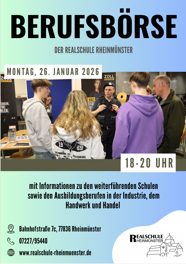 Am letzten Schultag vor den Weihnachtsferien versammelte sich die Schulgemeinschaft der Realschule Rheinmünster zur traditionellen Weihnachtsfeier in der festlich geschmückten Aula. Eröffnet wurde die Veranstaltung vom Schulorchester, das gemeinsam mit der Klasse 6b...