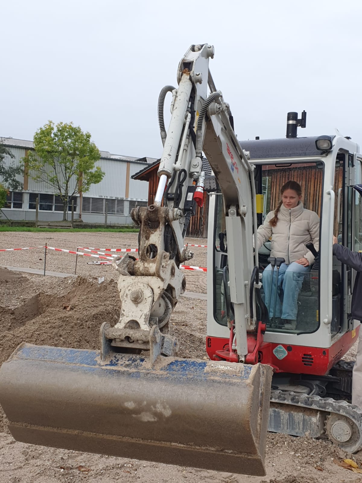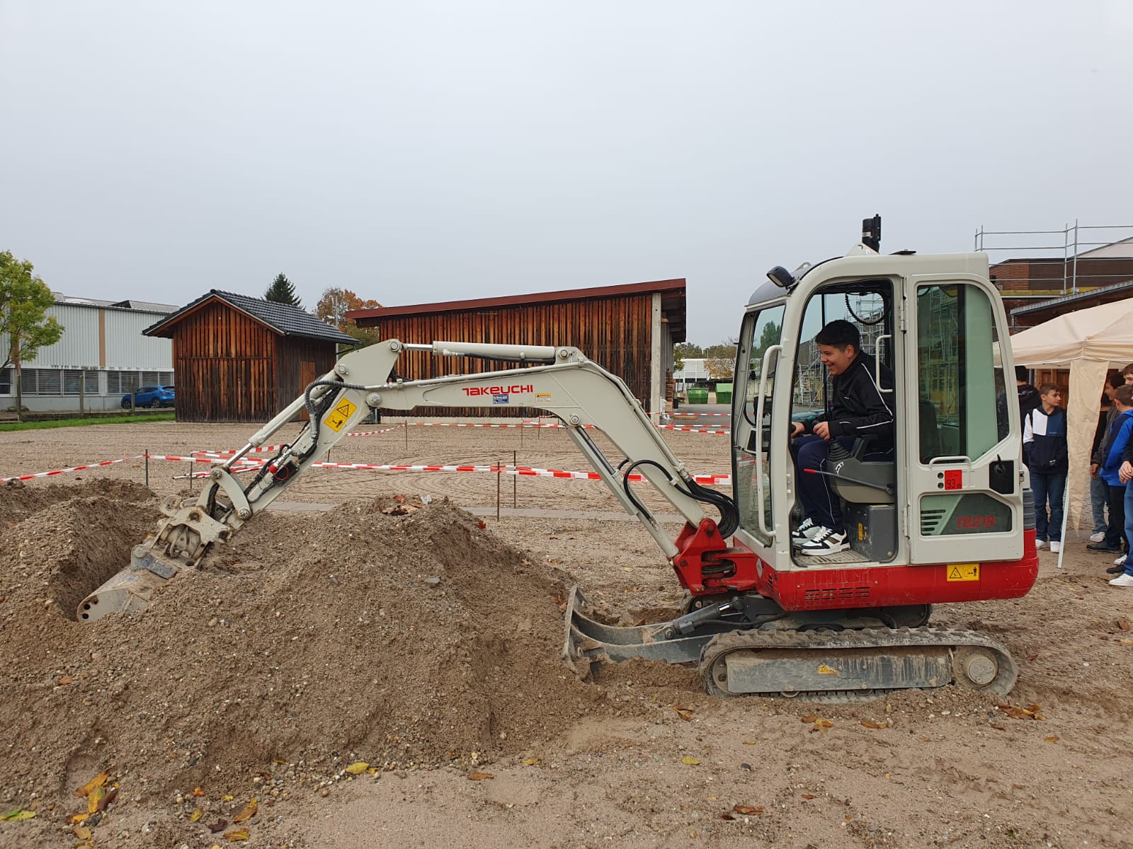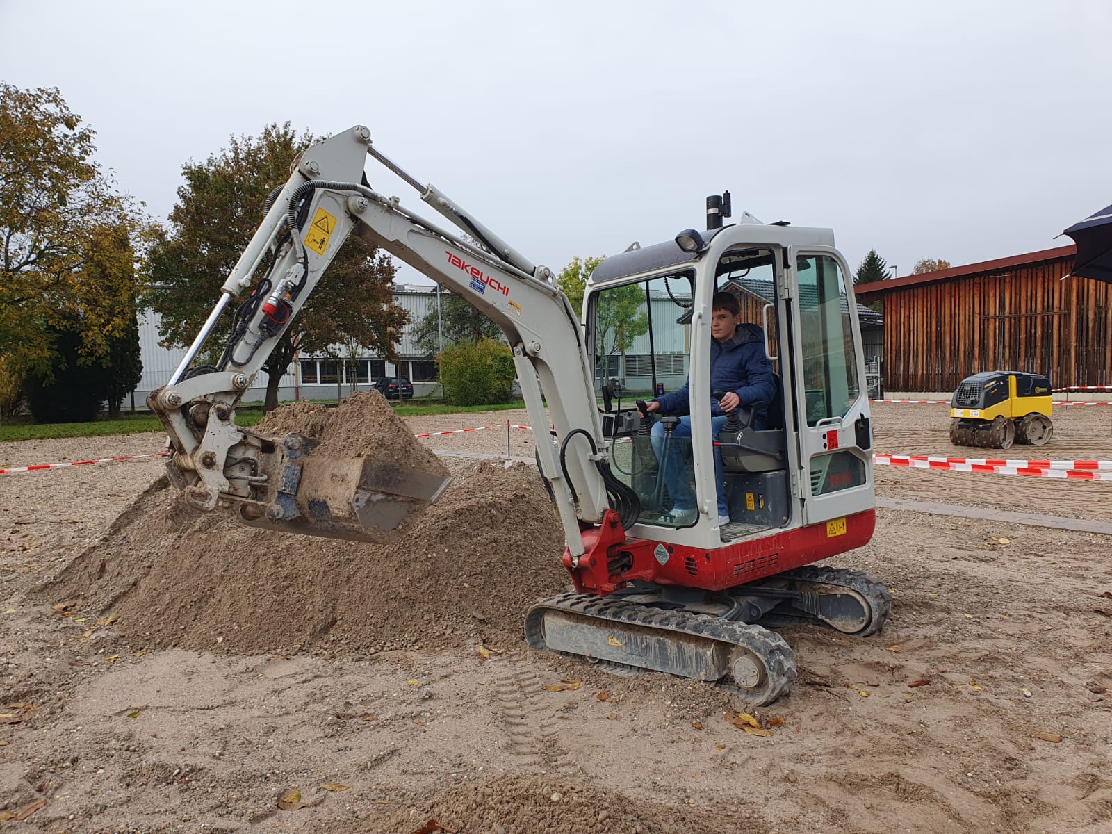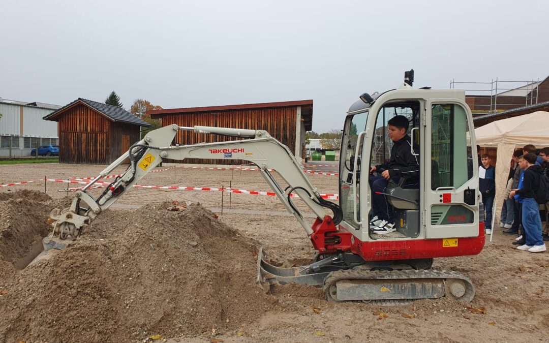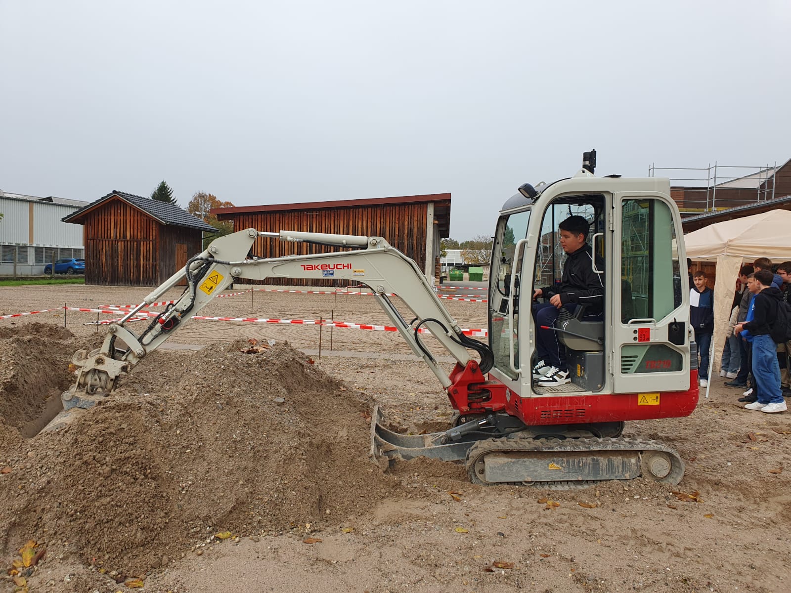Unsere achten Klassen durften am 26.10.2023 hier im Komzet Bau Bühl einen Einblick in die vielfältigen Berufe der Bauwirtschaft gewinnen. An diesem abwechslungsreichen Vormittag standen Stationen zu „Beton und Mauern“, „Fliesenlegen“, „baggern und verdichten“, „Wärme-, Kälte-, Schall- und Brandschutz“ und „Zimmerei“ auf dem Programm, bei denen die Schülerinnen und Schüler der Klassen 8a, 8b und 8c stets selbst Hand anlegen durften.