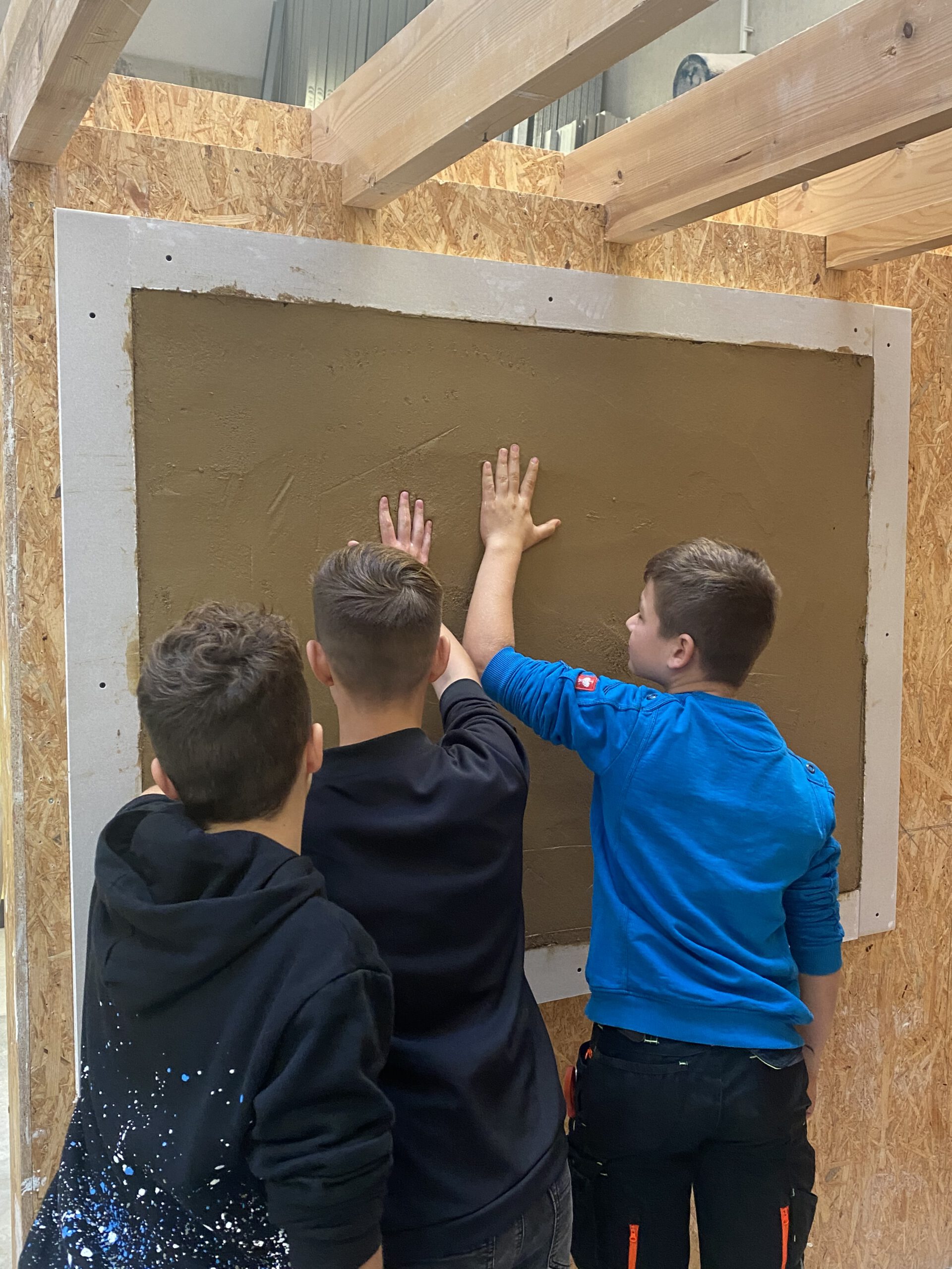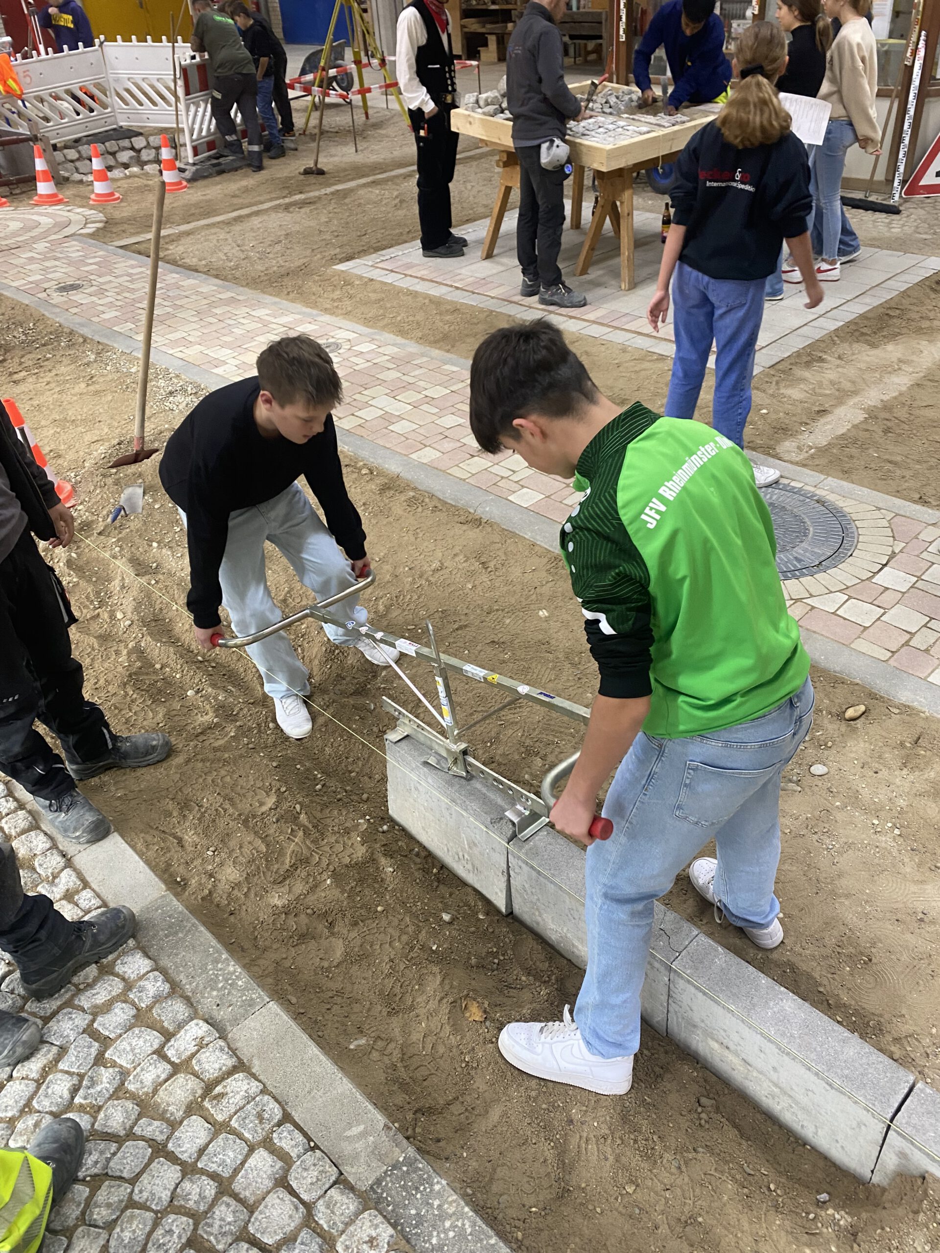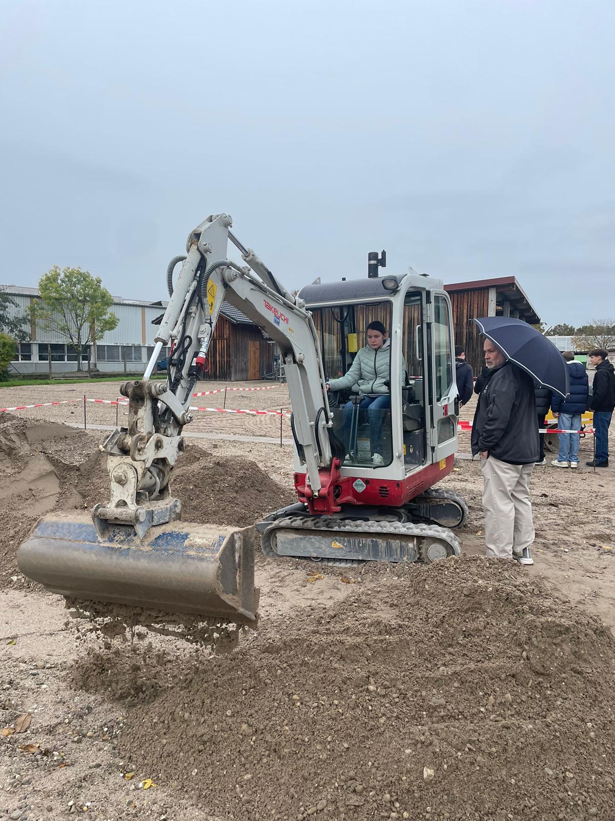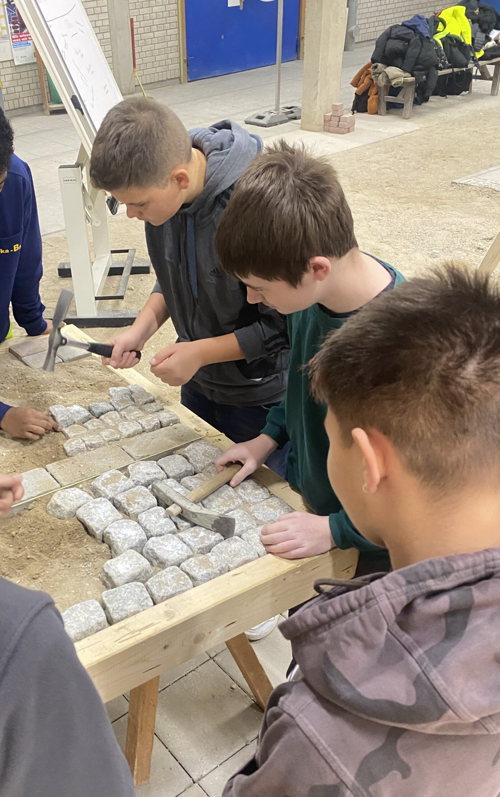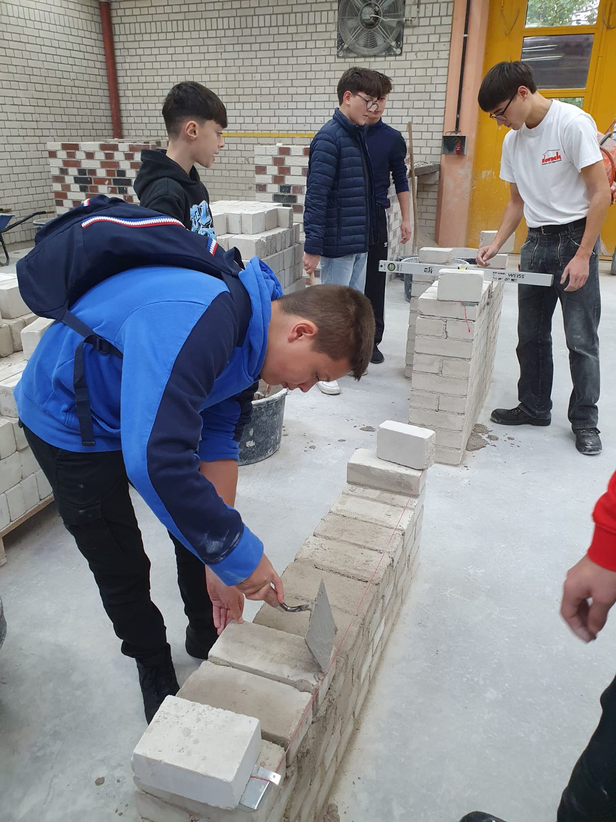 Unsere achten Klassen durften am 26.10.2023 hier im Komzet Bau Bühl einen Einblick in die vielfältigen Berufe der Bauwirtschaft gewinnen. An diesem abwechslungsreichen Vormittag standen Stationen zu „Beton und Mauern“, „Fliesenlegen“, „baggern und verdichten“, „Wärme-, Kälte-, Schall- und Brandschutz“ und „Zimmerei“ auf dem Programm, bei denen die Schülerinnen und Schüler der Klassen 8a, 8b und 8c stets selbst Hand anlegen durften.