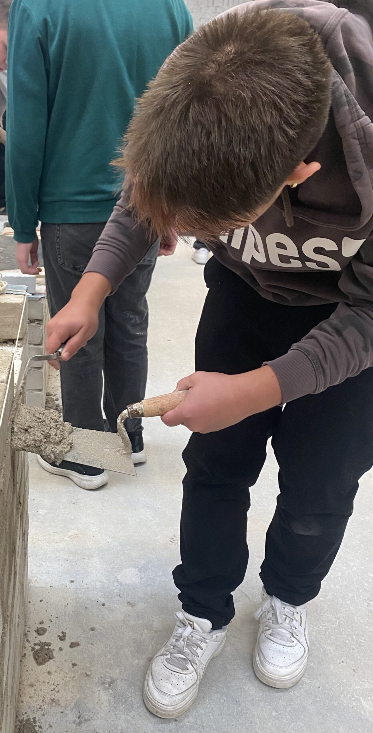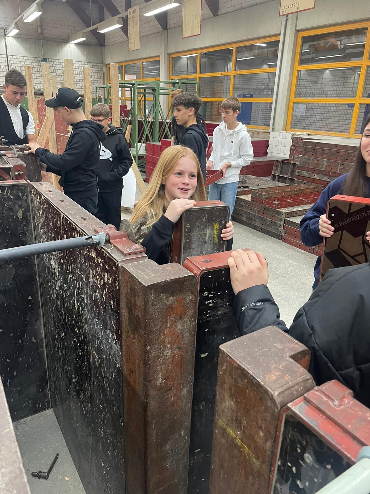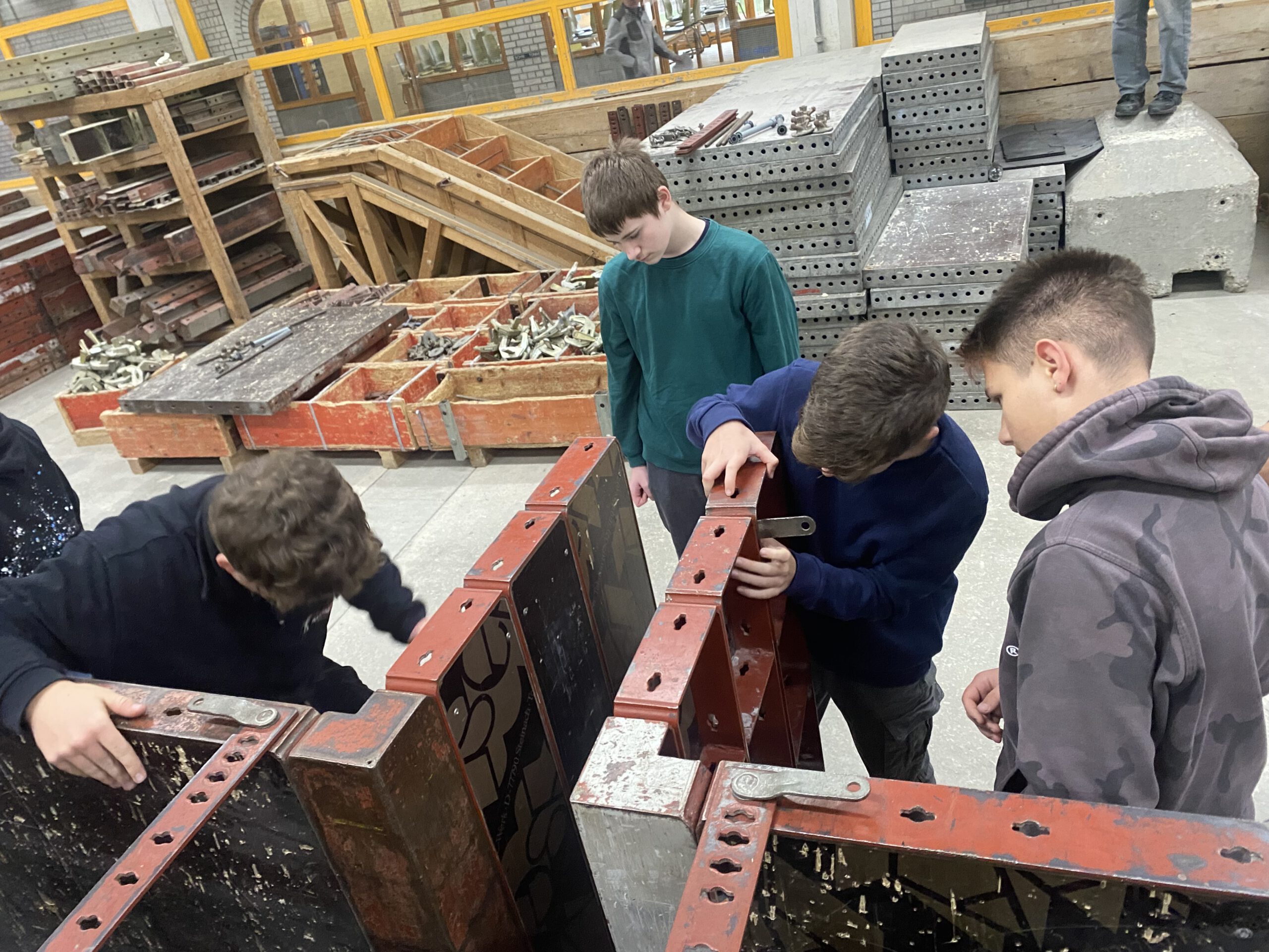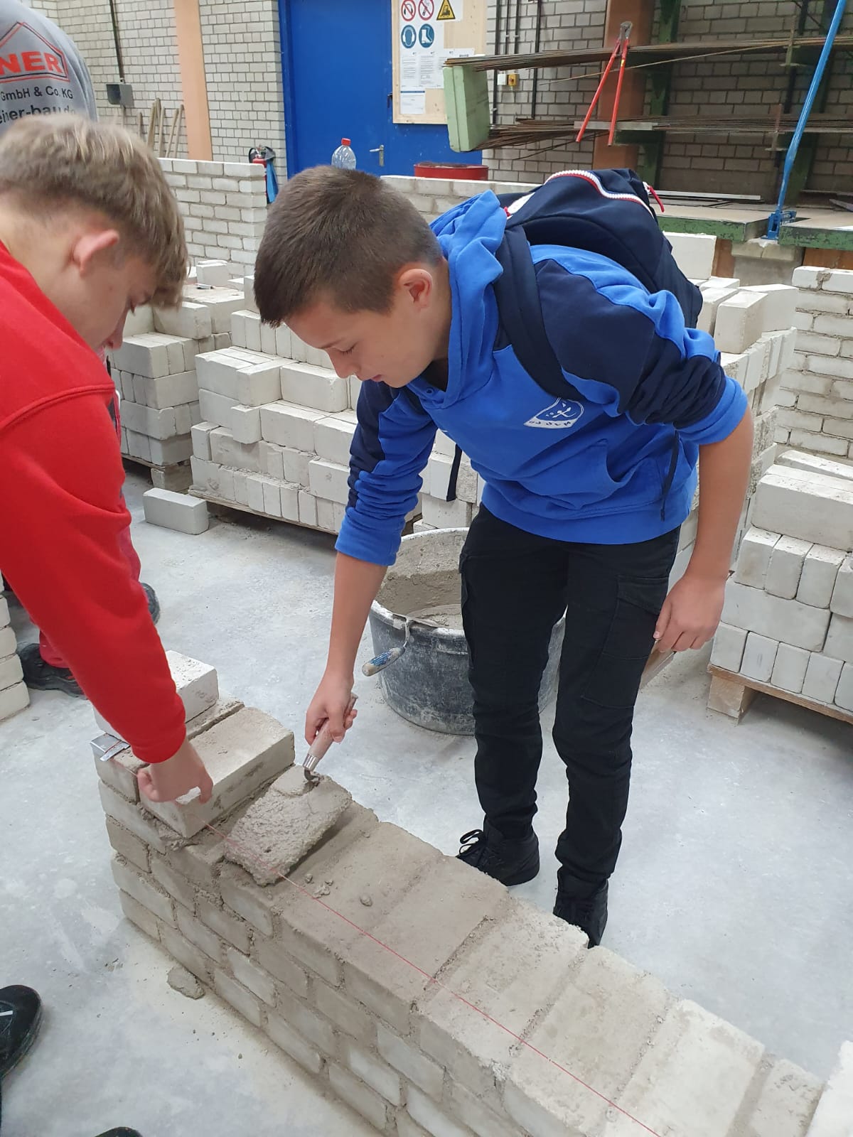Unsere achten Klassen durften am 26.10.2023 hier im Komzet Bau Bühl einen Einblick in die vielfältigen Berufe der Bauwirtschaft gewinnen. An diesem abwechslungsreichen Vormittag standen Stationen zu „Beton und Mauern“, „Fliesenlegen“, „baggern und verdichten“, „Wärme-, Kälte-, Schall- und Brandschutz“ und „Zimmerei“ auf dem Programm, bei denen die Schülerinnen und Schüler der Klassen 8a, 8b und 8c stets selbst Hand anlegen durften.