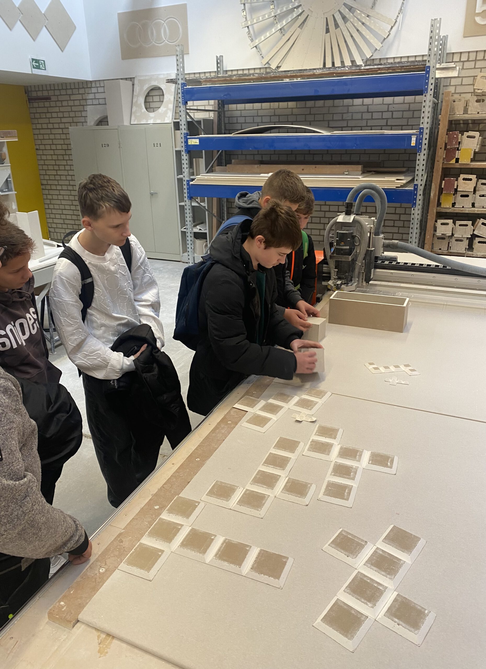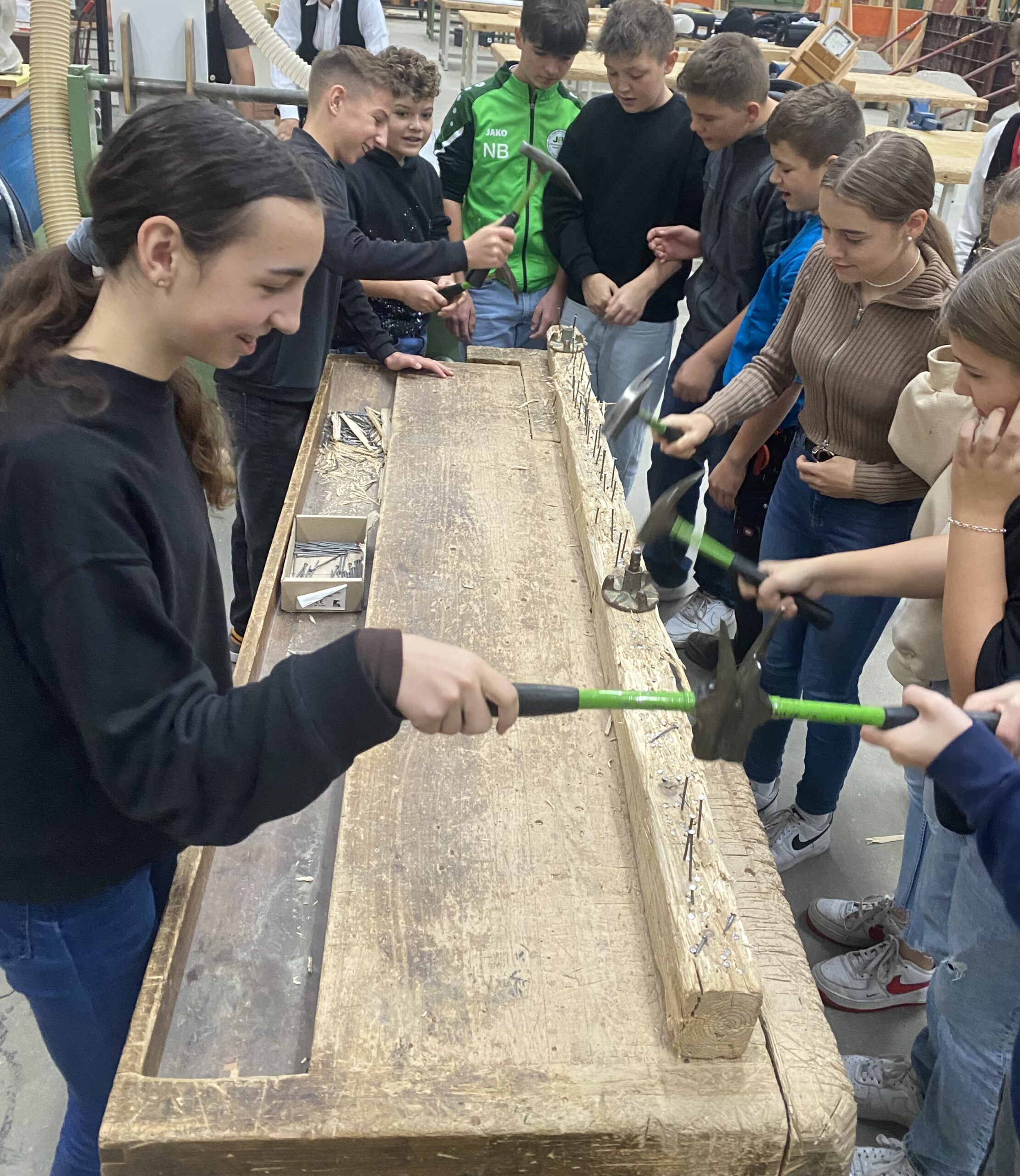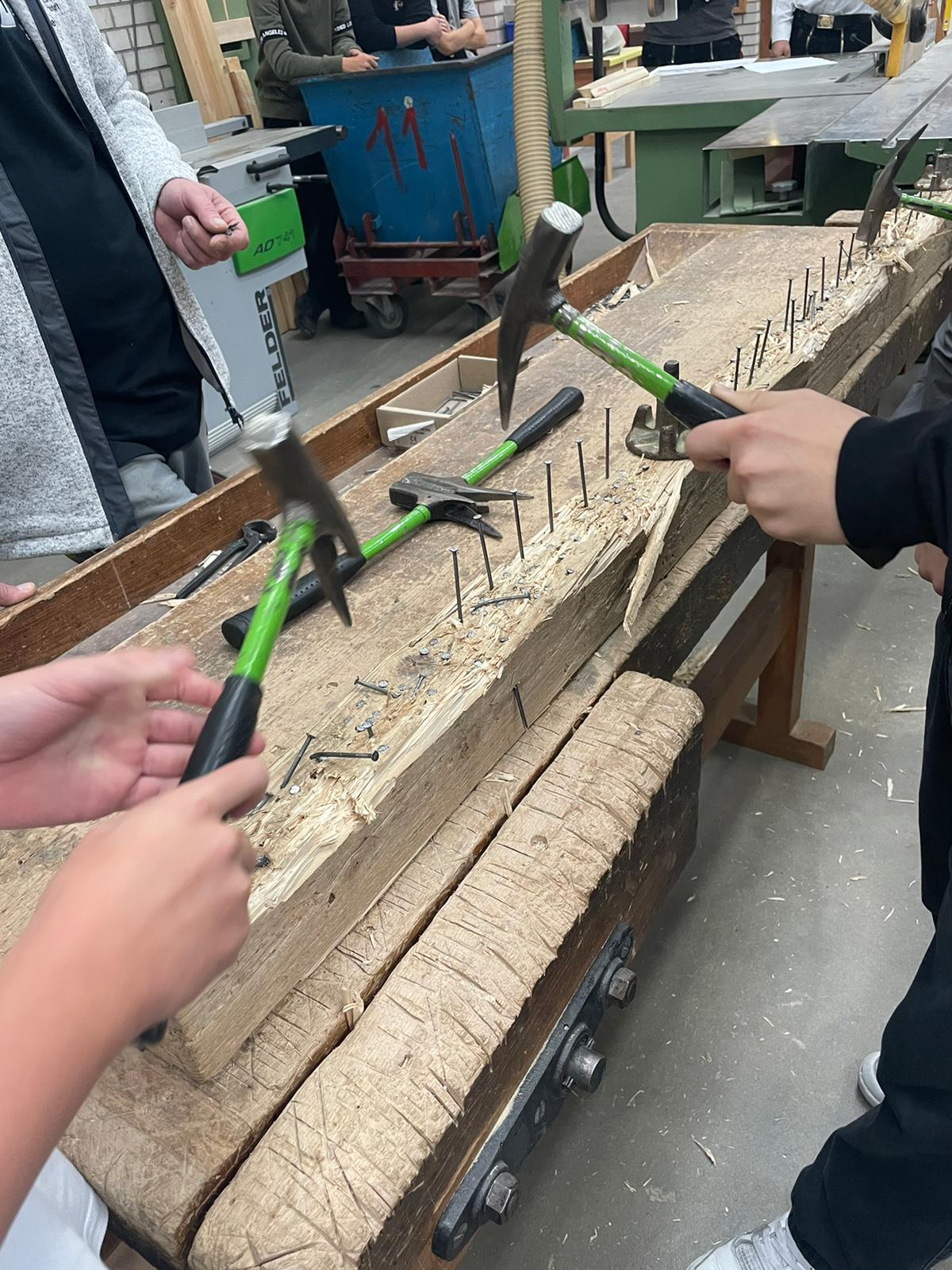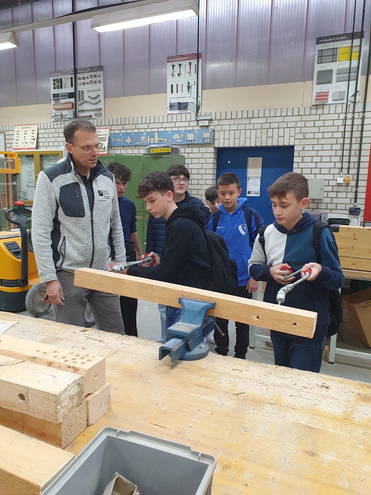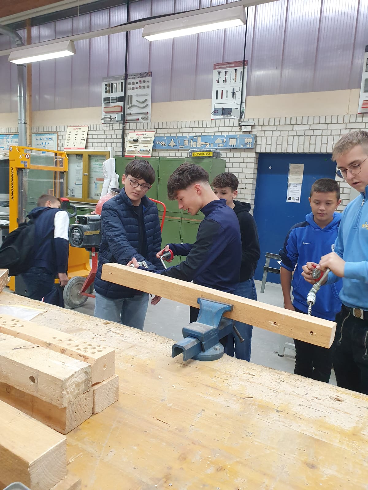 Unsere achten Klassen durften am 26.10.2023 hier im Komzet Bau Bühl einen Einblick in die vielfältigen Berufe der Bauwirtschaft gewinnen. An diesem abwechslungsreichen Vormittag standen Stationen zu „Beton und Mauern“, „Fliesenlegen“, „baggern und verdichten“, „Wärme-, Kälte-, Schall- und Brandschutz“ und „Zimmerei“ auf dem Programm, bei denen die Schülerinnen und Schüler der Klassen 8a, 8b und 8c stets selbst Hand anlegen durften.