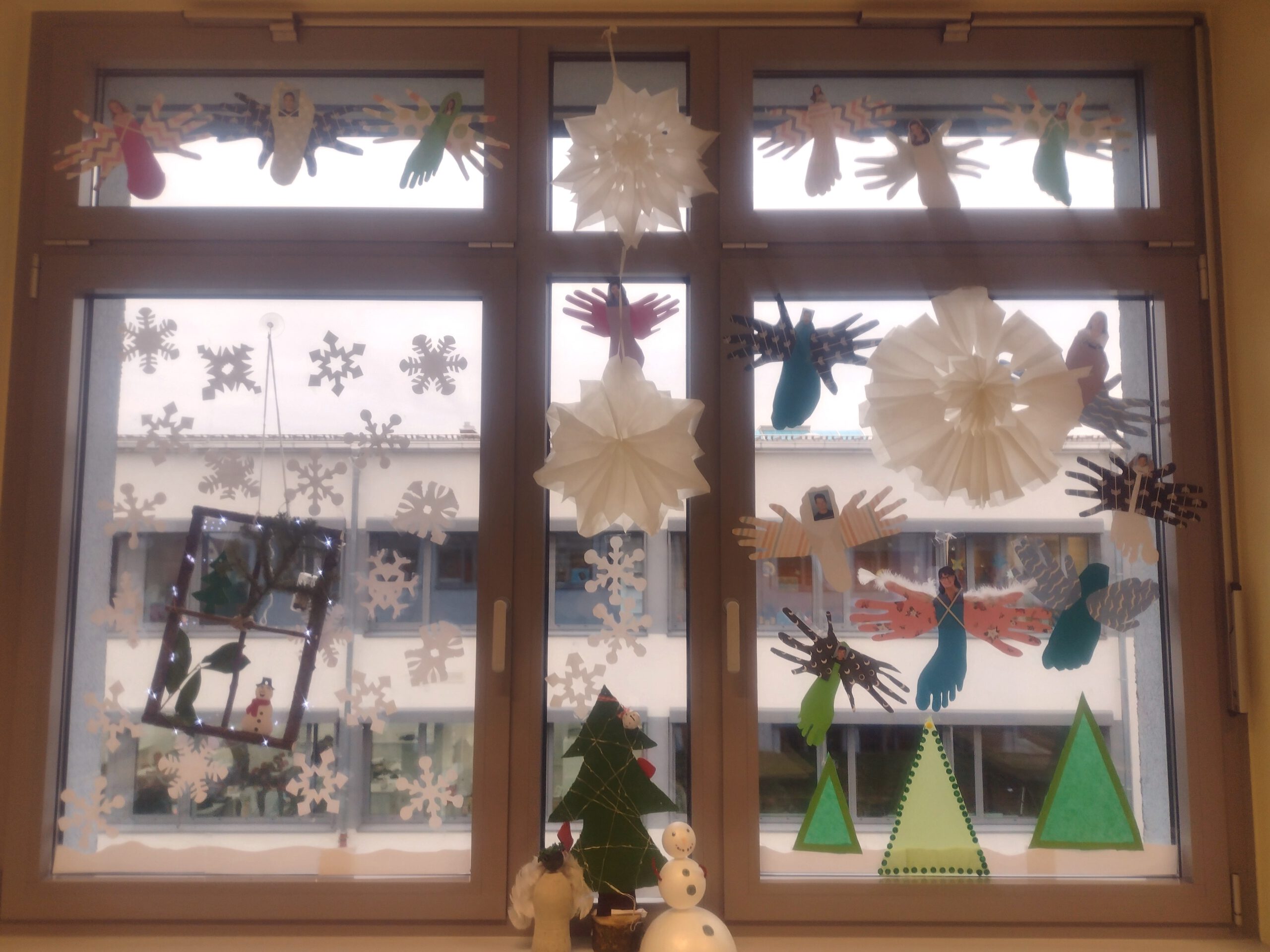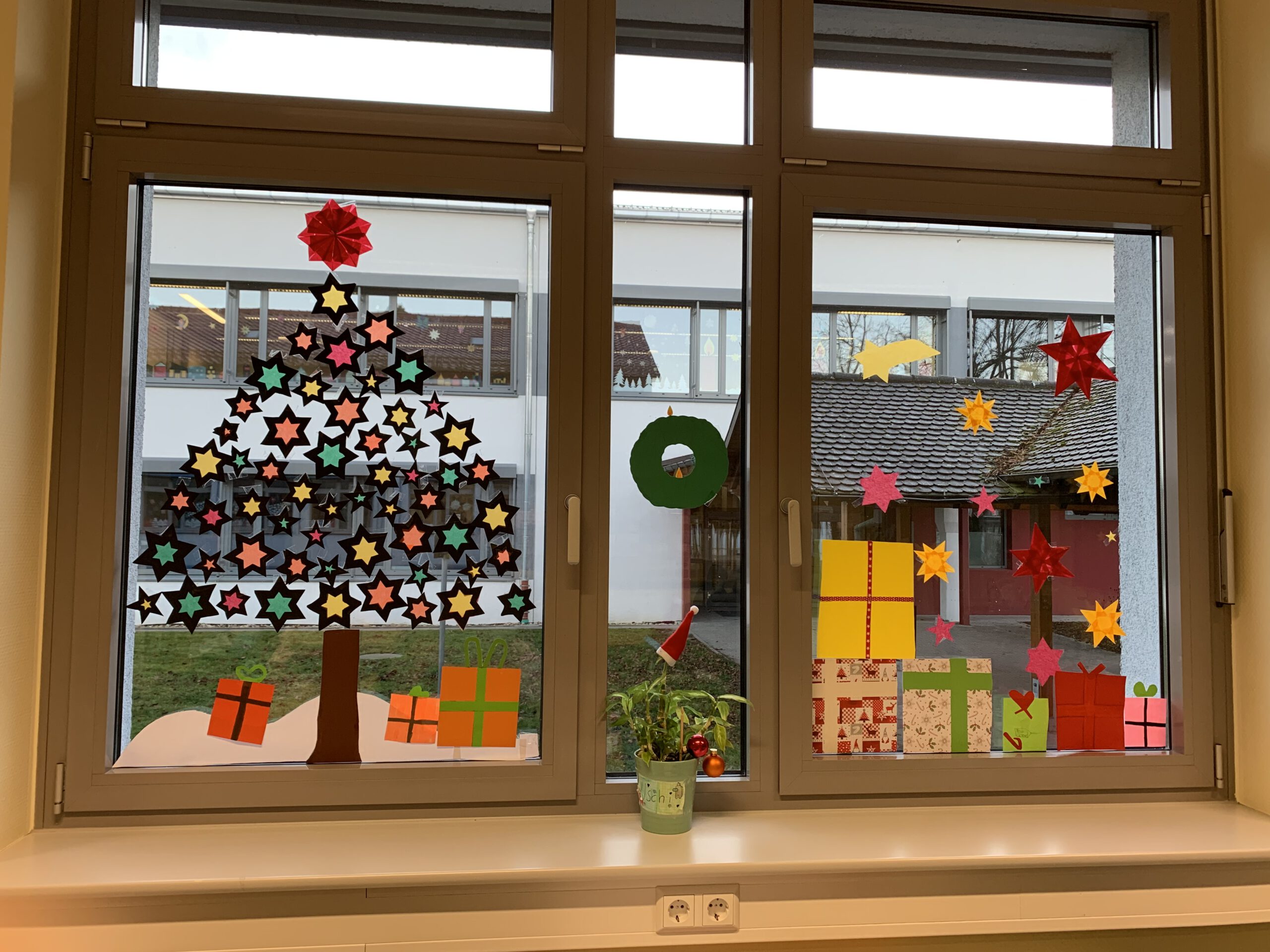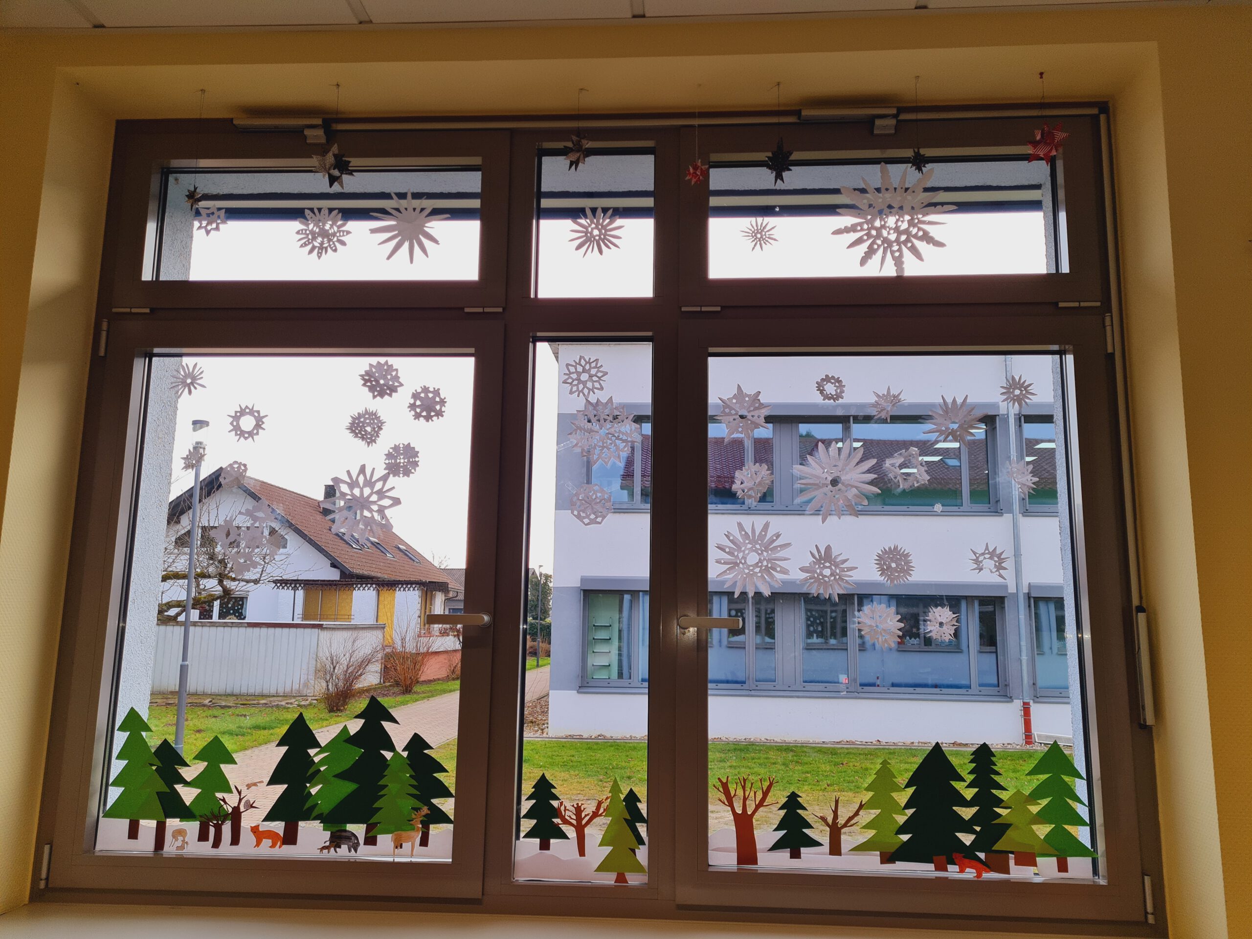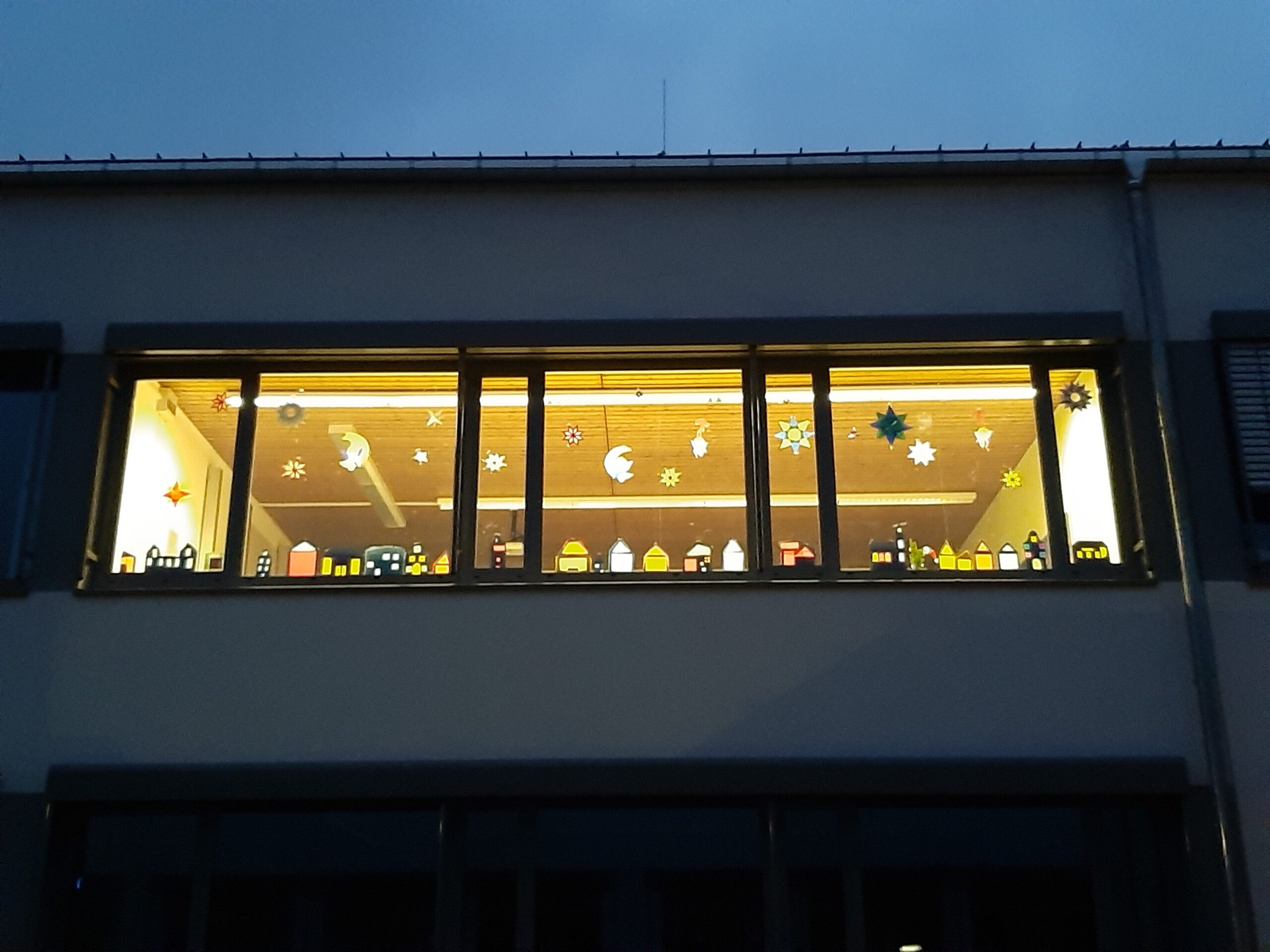 Mit ihrer „Winterlandschaft mit Christbaum“ landete die Klasse 5a mit Klassenlehrerin Dorothee Weiler ganz oben auf dem Siegertreppchen. Den zweiten Platz belegte die Klasse 8b mit Klassenlehrer Benjamin Koch, die mit einem riesigen Weihnachtsmann mit Geschenke-Schlitten überzeugte. Der dritte Platz ging an die Klasse 6b mit Klassenlehrerin Simone Fuß, welche nach und nach vier Adventskerzen an ihren Fenstern erstrahlen ließ und ein Sterntalermotiv in einem Winterwald gestaltet hatte.