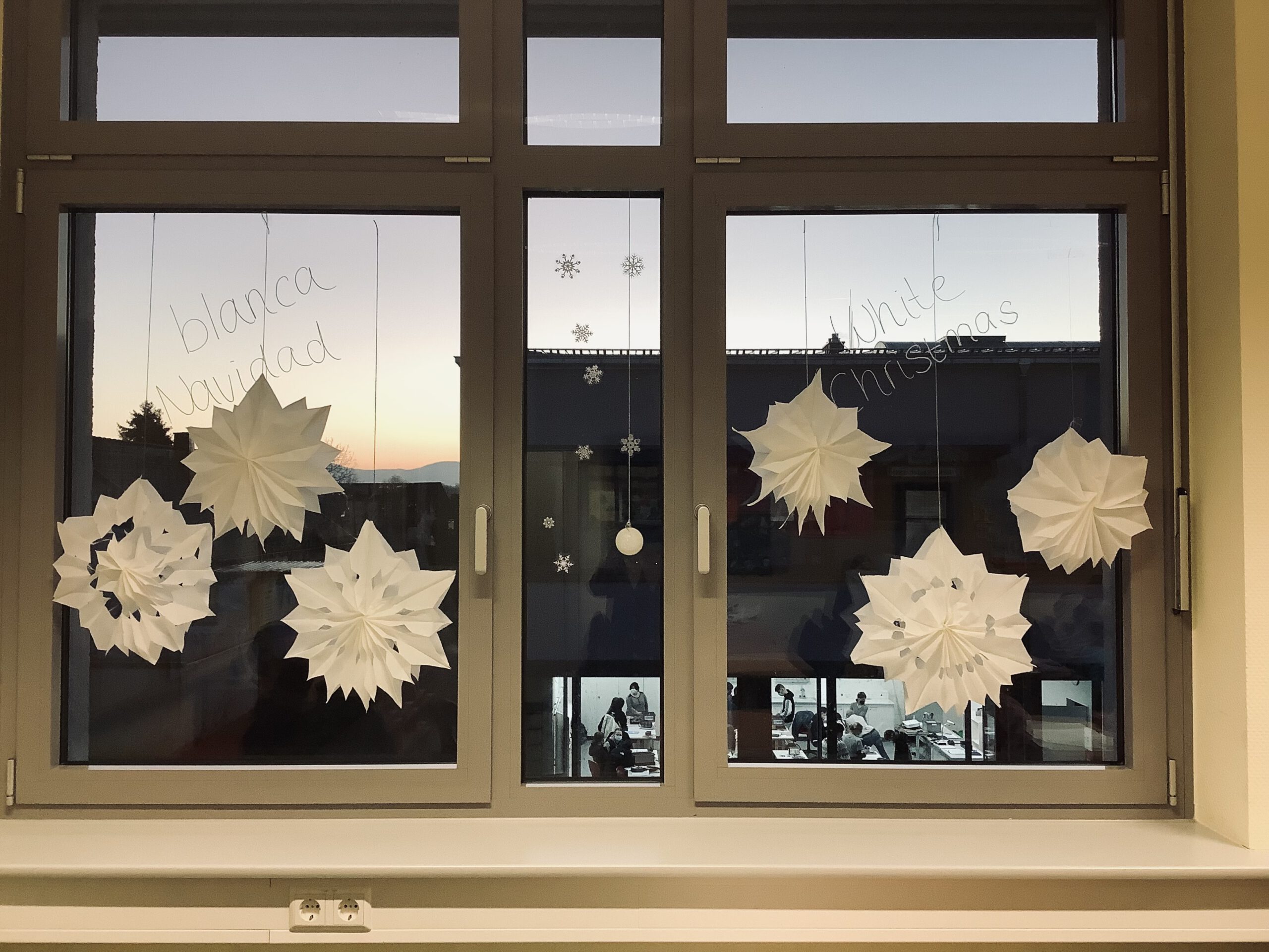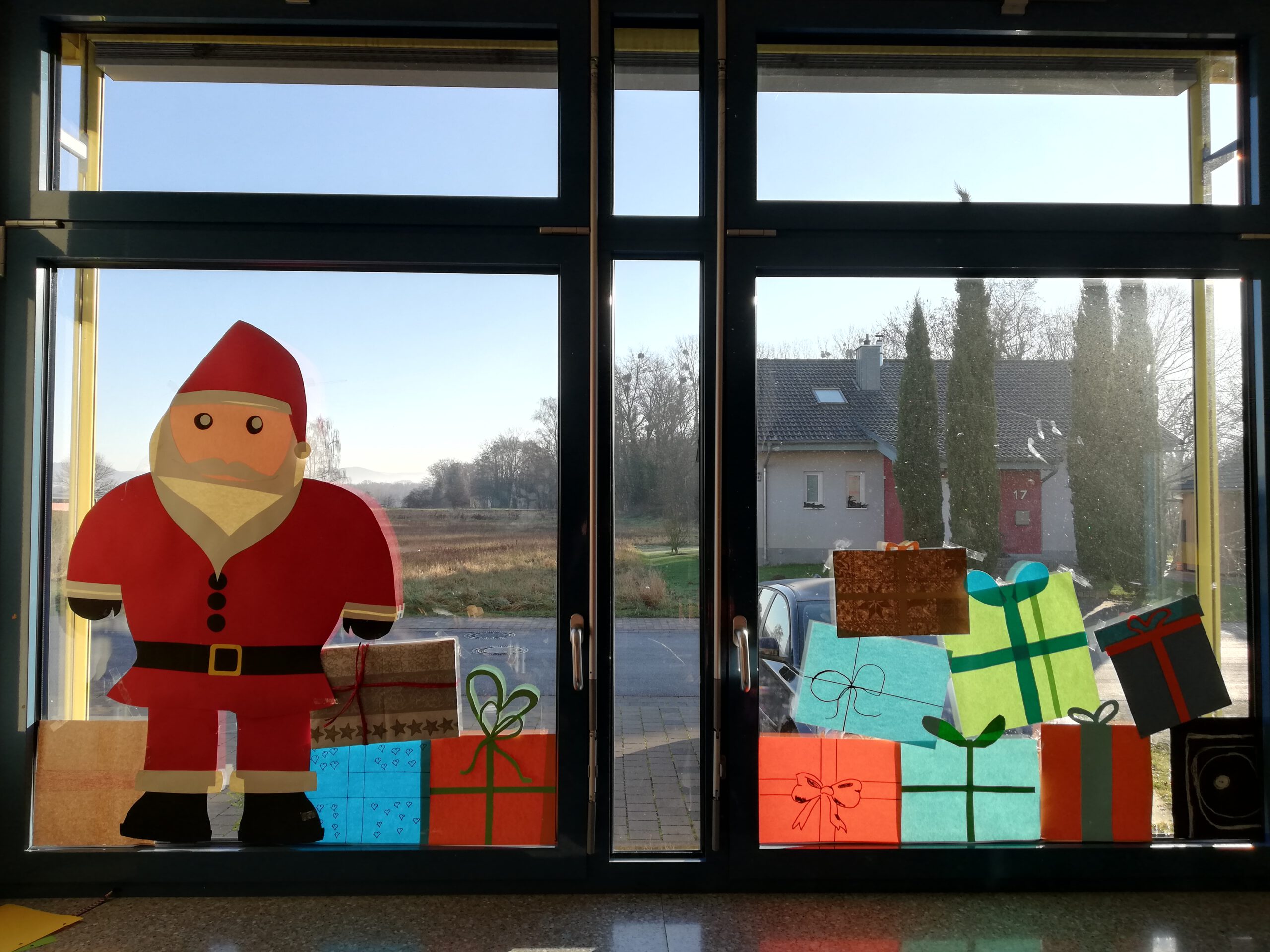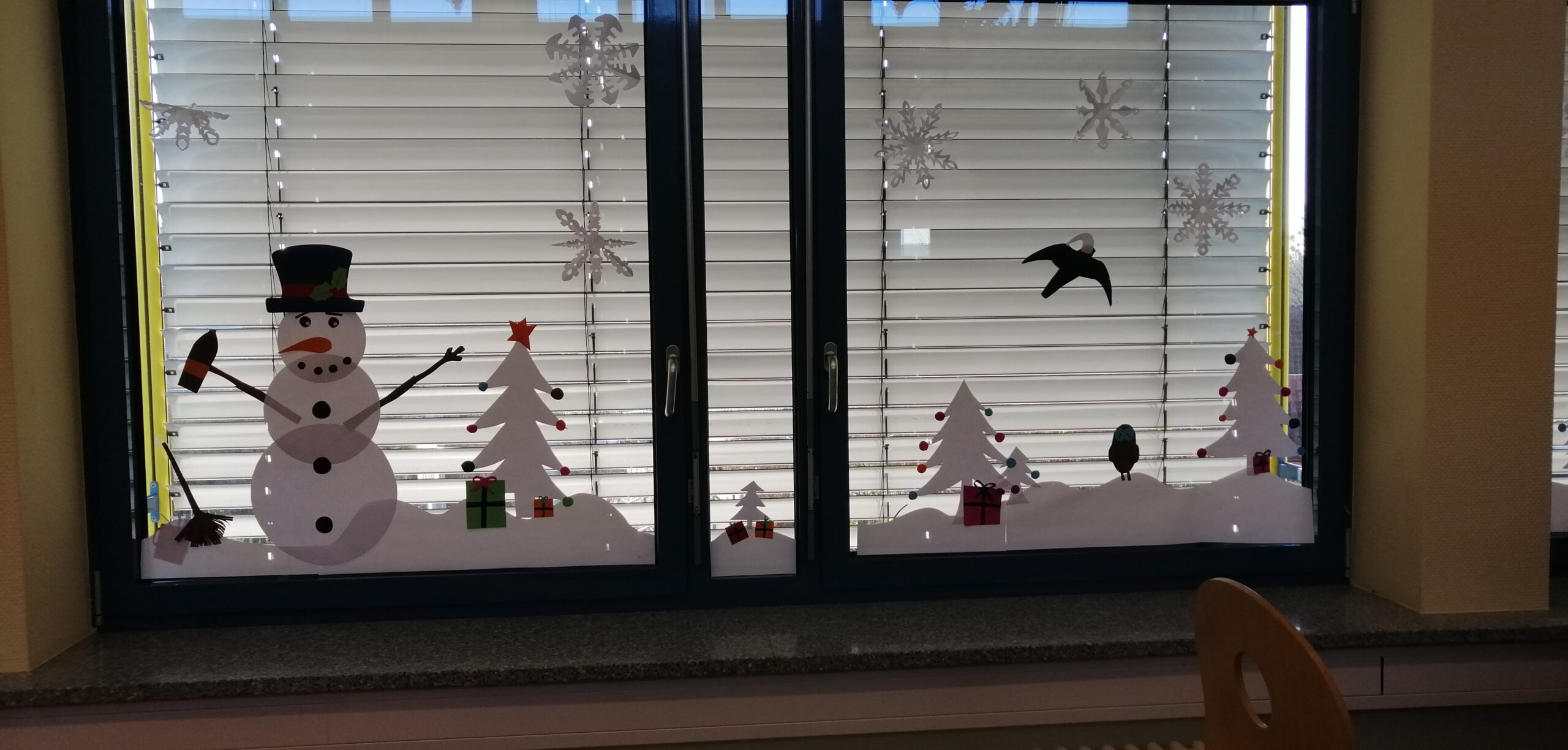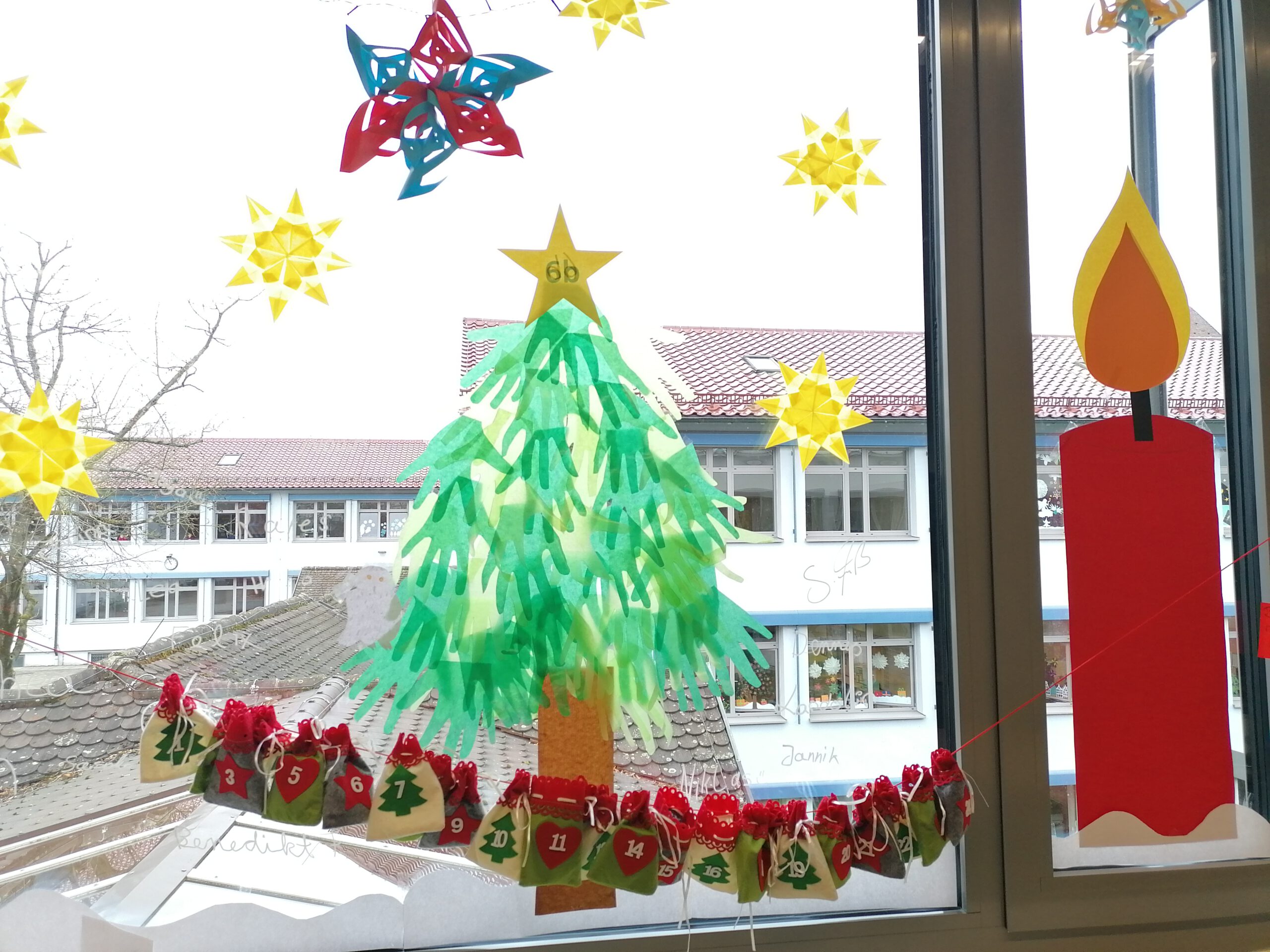 Mit ihrer „Winterlandschaft mit Christbaum“ landete die Klasse 5a mit Klassenlehrerin Dorothee Weiler ganz oben auf dem Siegertreppchen. Den zweiten Platz belegte die Klasse 8b mit Klassenlehrer Benjamin Koch, die mit einem riesigen Weihnachtsmann mit Geschenke-Schlitten überzeugte. Der dritte Platz ging an die Klasse 6b mit Klassenlehrerin Simone Fuß, welche nach und nach vier Adventskerzen an ihren Fenstern erstrahlen ließ und ein Sterntalermotiv in einem Winterwald gestaltet hatte.