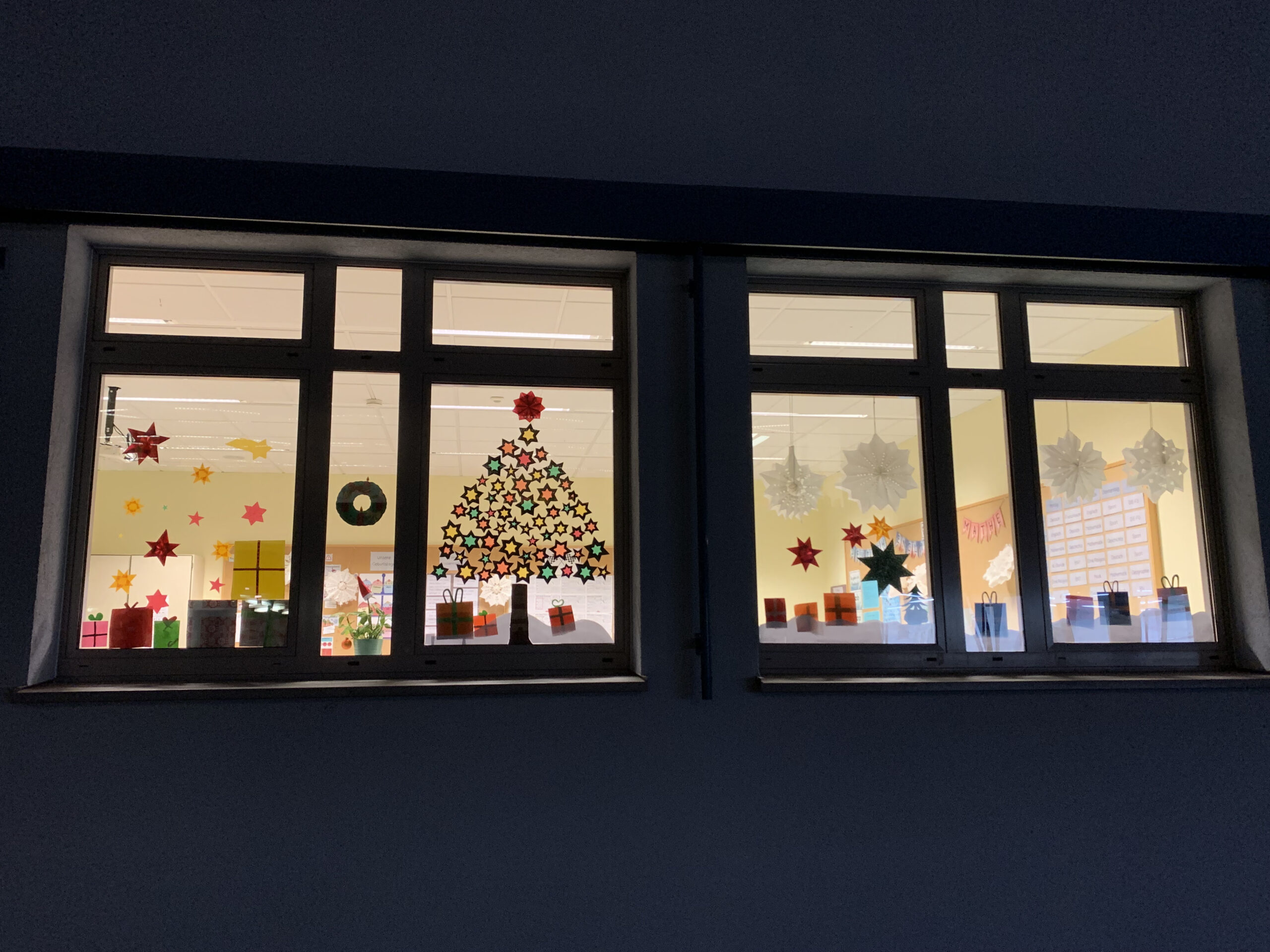 Wenn wir schon in diesem Jahr wieder auf Weihnachtfeiern und Weihnachtsmärkte verzichten müssen, dann wollen wir wenigstens an unserer Schule für ein Extra an feierlicher Weihnachtsstimmung sorgen. So dachte die SMV der Realschule Rheinmünster mit ihren Verbindungslehrern Michaela Bohn-Vogel und Thomas Wertal. Zusammen mit den Klassensprechern aller Klassen rief das Gremium deshalb zum Wettbewerb um das schönste Adventsfenster der Schwarzacher Realschule auf. Pünktlich zum ersten Advent sollten die Klassen ein erstes Fenster in ihrem Klassenzimmer weihnachtlich dekoriert haben – weitere Fenster des Raumes durften bis zum 14. Dezember folgen. Die Aktion wurde in der Schülerschaft begeistert aufgenommen: Mit viel Freude, Kreativität und Hingabe gestalteten die Schülerinnen und Schüler nach und nach viele schöne, bunte, lichterfüllte Fenster und konnten so selbst zum Entstehen vorweihnachtlicher Stimmung an ihrer Schule beitragen.
