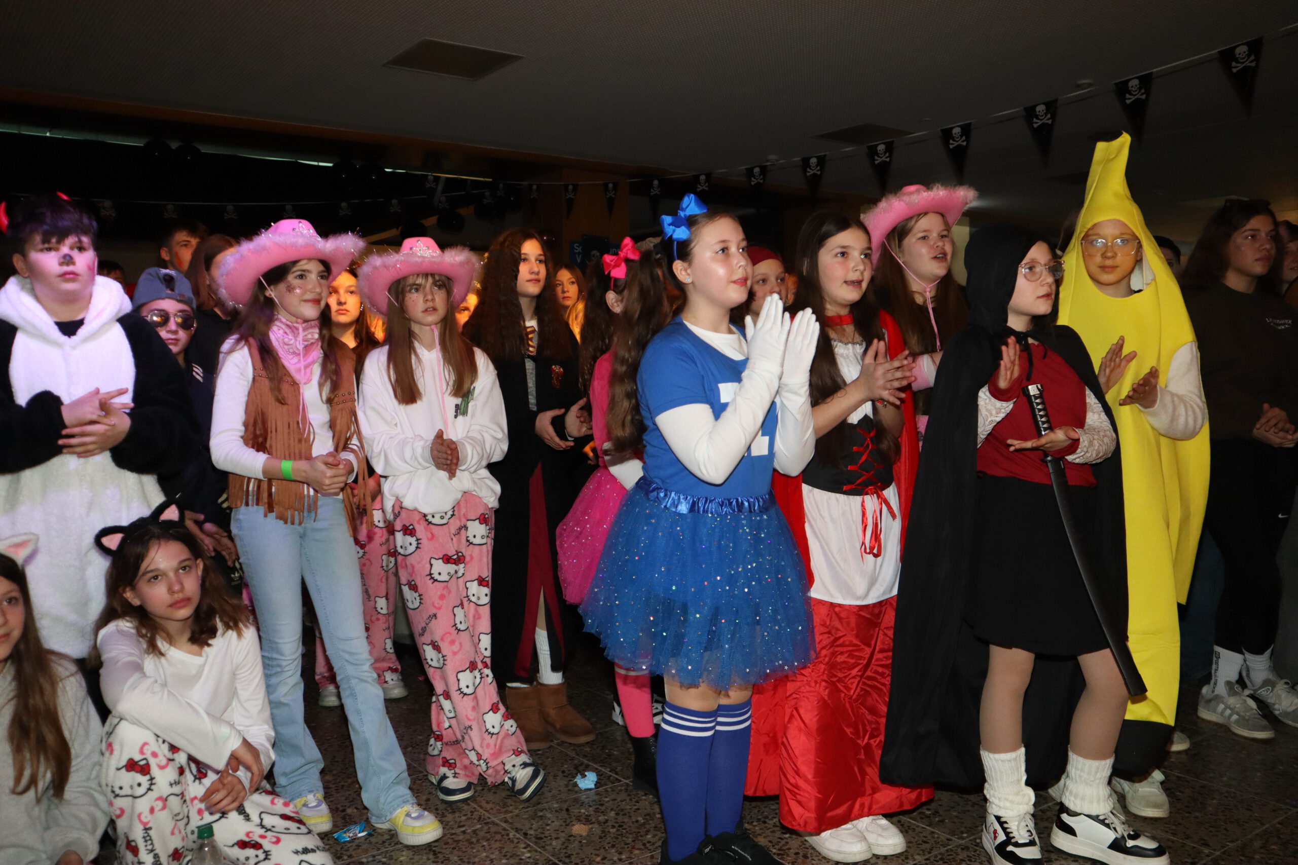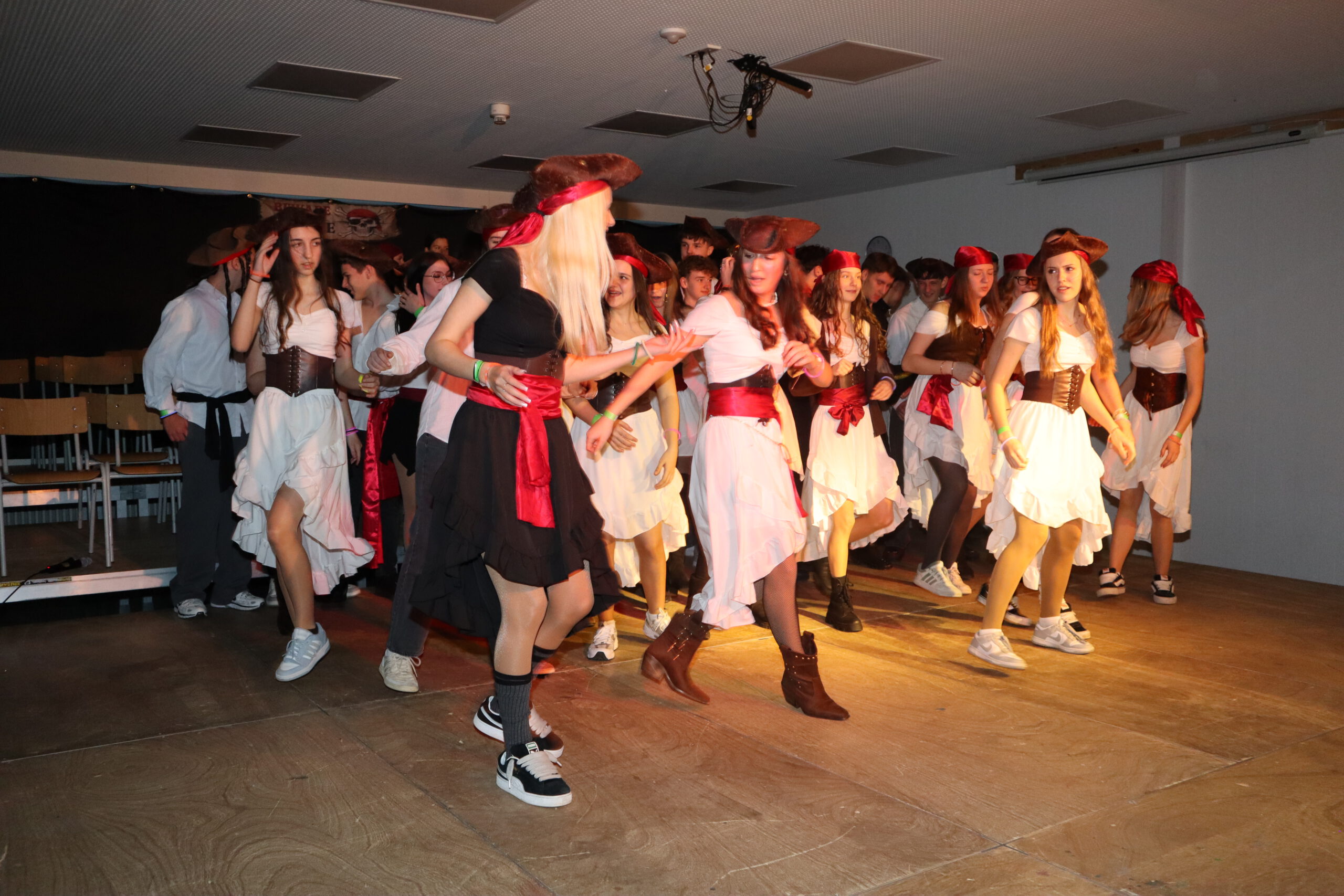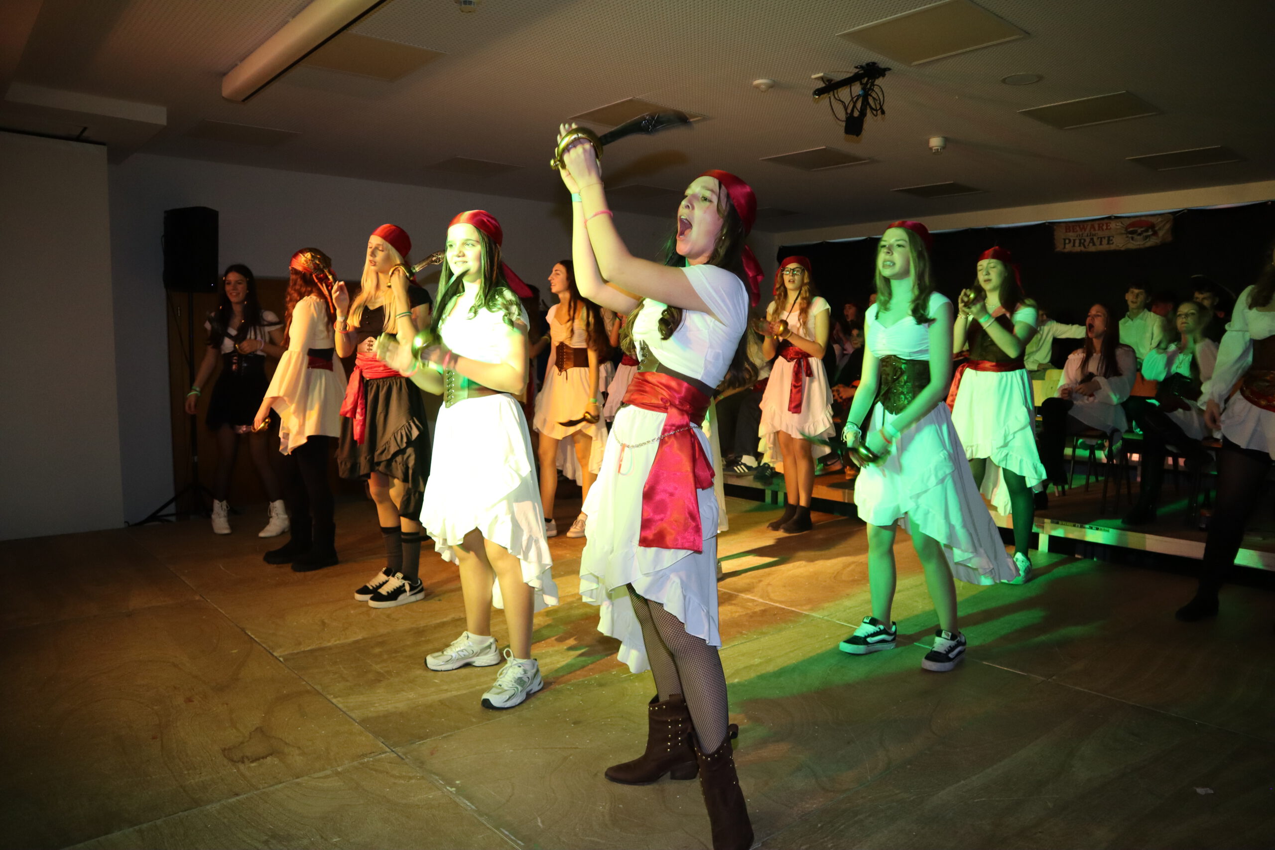 Unter dem diesjährigen Motto „Piraten der Karibik“ verwandelte sich die Aula der Realschule am Schmutzigen Donnerstag in ein fröhlich-buntes Freibeuterlager. Schon beim Auftakt wurde klar: Diese Feier würde Kurs auf beste Stimmung nehmen. Die organisierenden Zehntklässler marschierten stilecht als Piraten verkleidet ein und nahmen ihre Plätze auf der Bühne ein – der Startschuss für einen mitreißenden Vormittag.