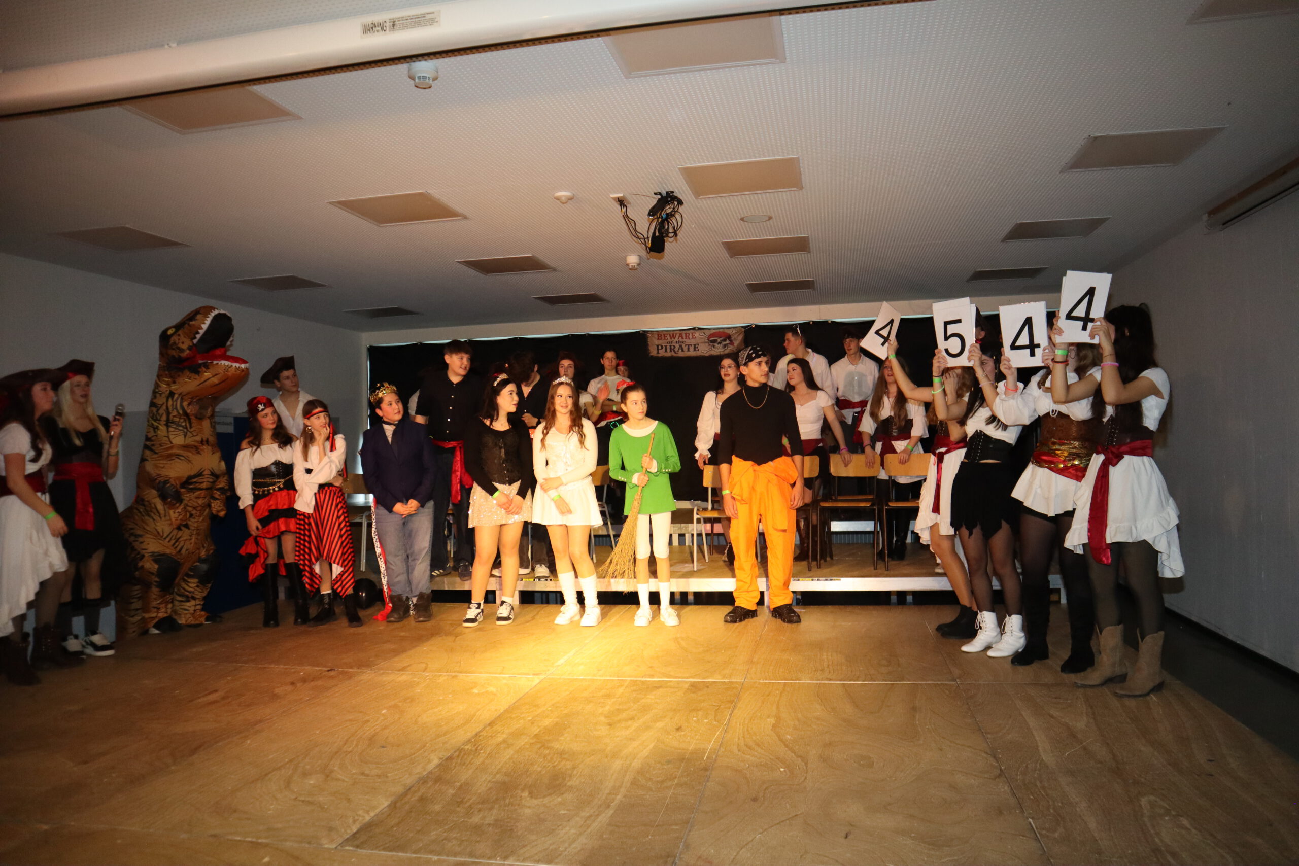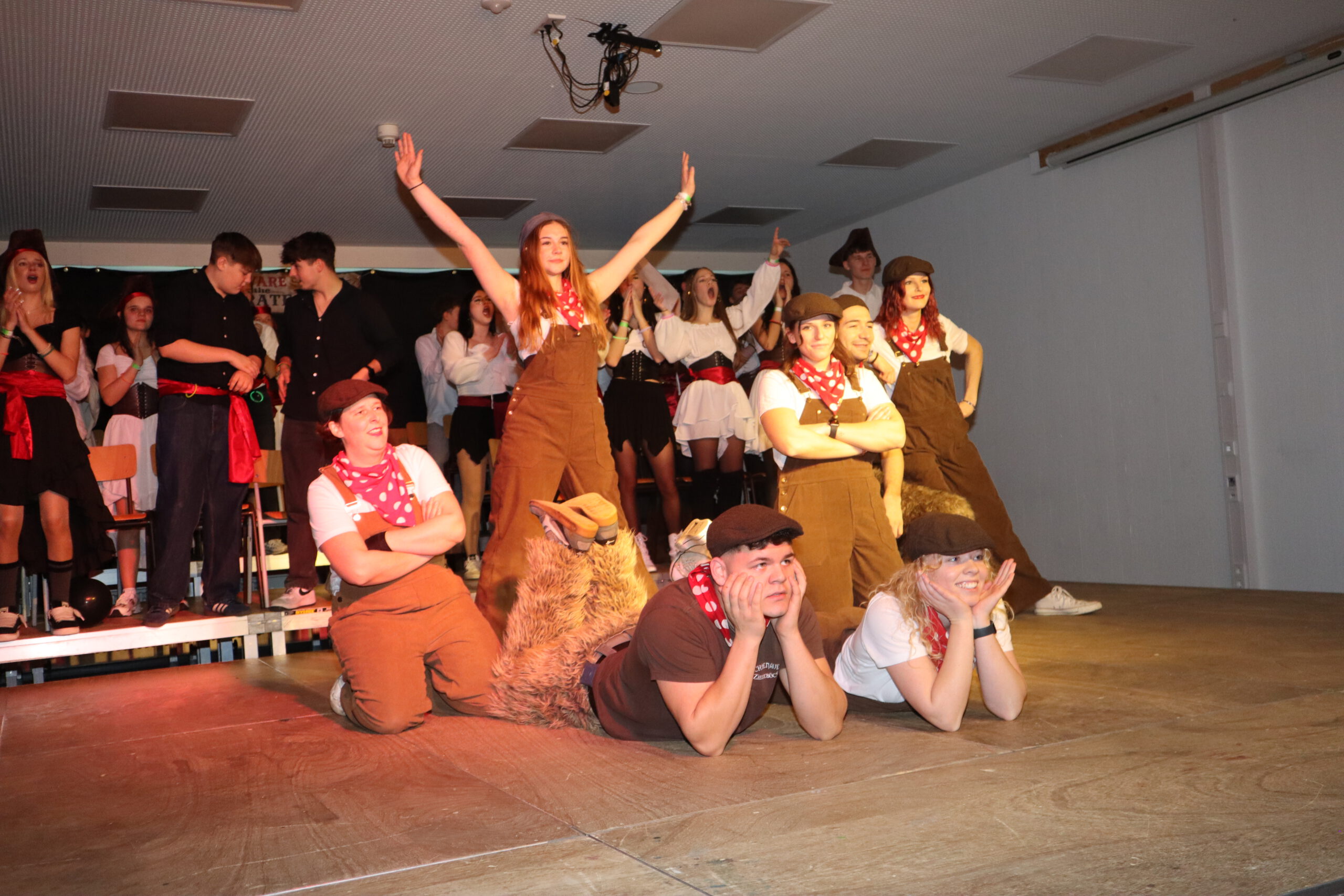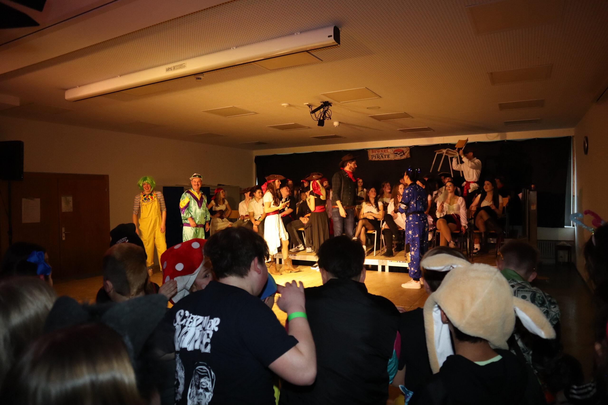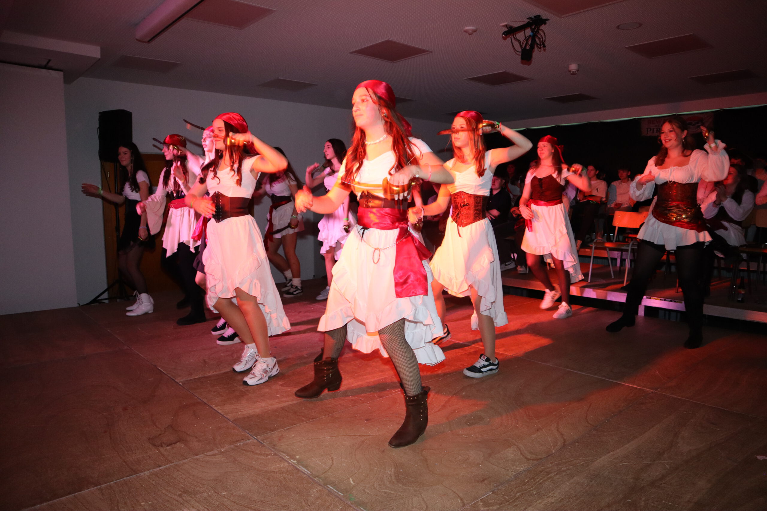 Unter dem diesjährigen Motto „Piraten der Karibik“ verwandelte sich die Aula der Realschule am Schmutzigen Donnerstag in ein fröhlich-buntes Freibeuterlager. Schon beim Auftakt wurde klar: Diese Feier würde Kurs auf beste Stimmung nehmen. Die organisierenden Zehntklässler marschierten stilecht als Piraten verkleidet ein und nahmen ihre Plätze auf der Bühne ein – der Startschuss für einen mitreißenden Vormittag.