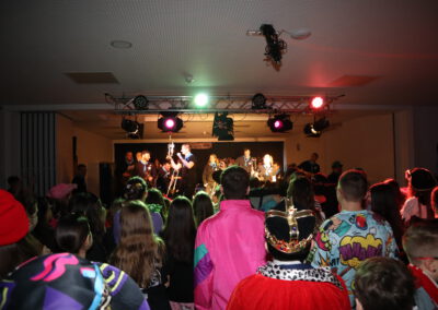 Im Anschluss sorgte die Guggemusik der Schwarzacher Stroßekracher für ordentlich Rhythmus, bevor die Prämierung des schönsten Kostüms anstand. Die Entscheidung fiel schwer: Zur Auswahl standen beispielsweise Prinzessinnen, Bibi Blocksberg und ein Häftlingskostüm – am Ende waren die Stimmen für den Häftling am lautesten.