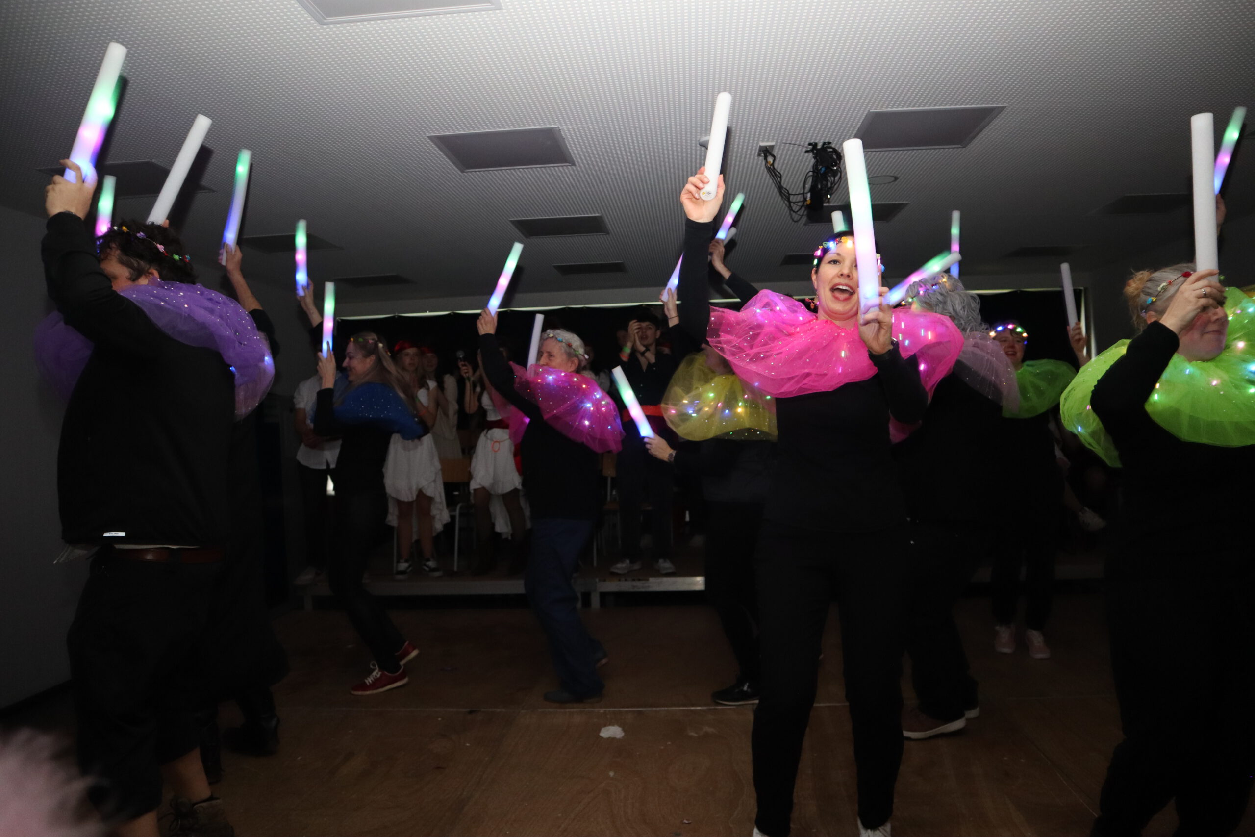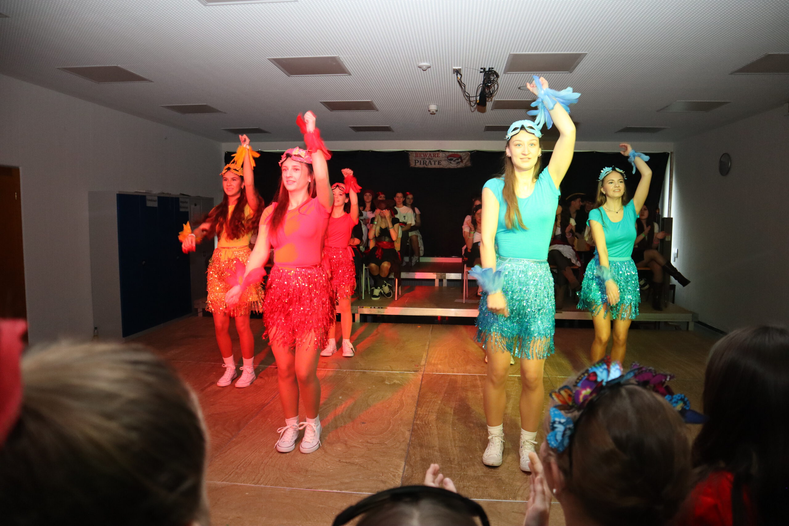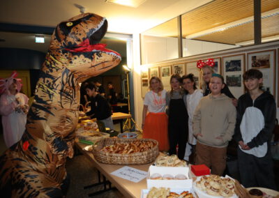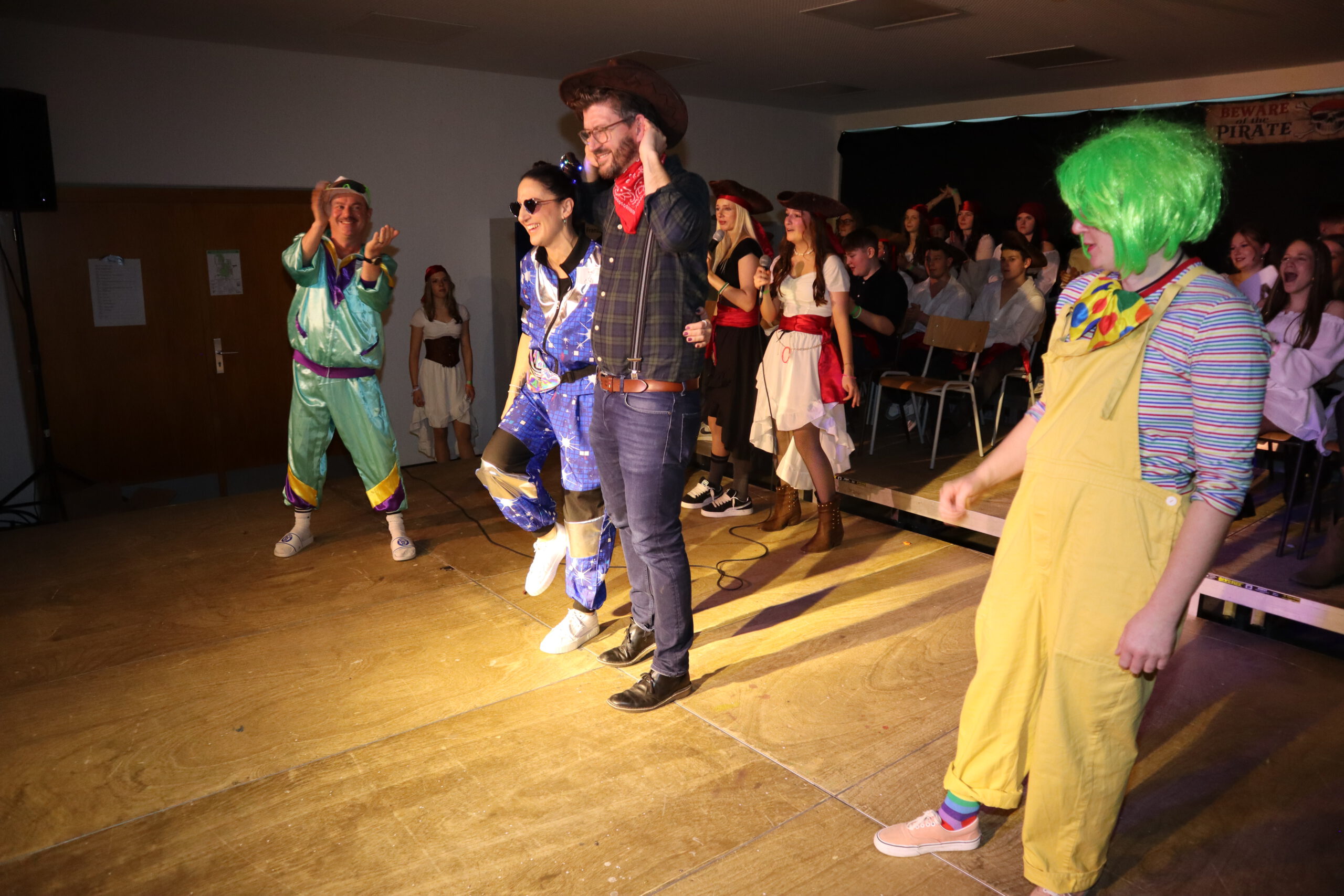 Zum krönenden Abschluss brachten die Lehrer mit einem gemeinsamen Tanz in leuchtenden Kostümen die Aula zum Beben – der Party-Hit Wackelkontakt sorgte auch 2026 für Ausgelassenheit. Den ganzen Morgen über war zudem die Fotobox mit karibischem Hintergrund ein Publikumsmagnet und sorgte für viele unvergessliche Schnappschüsse.