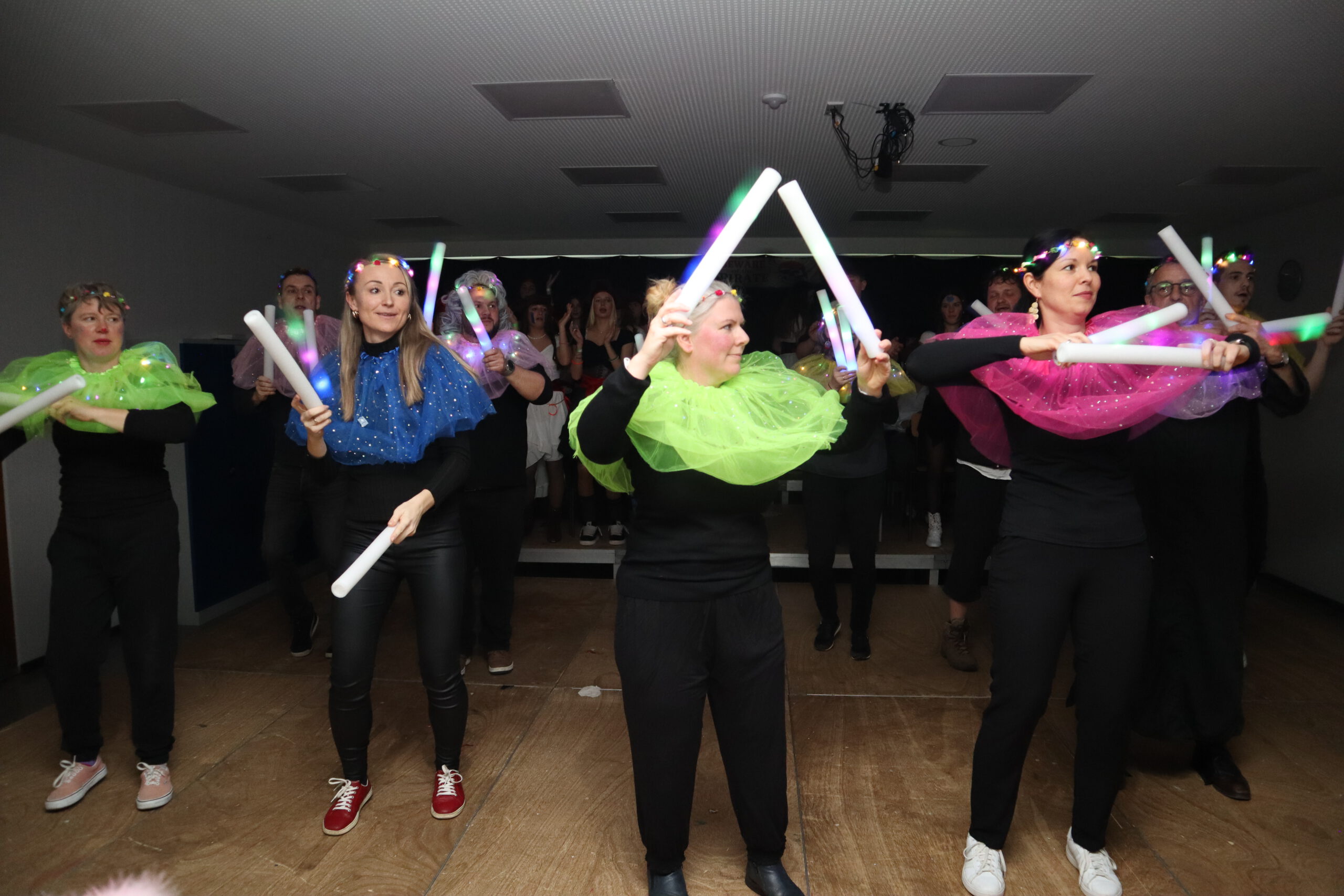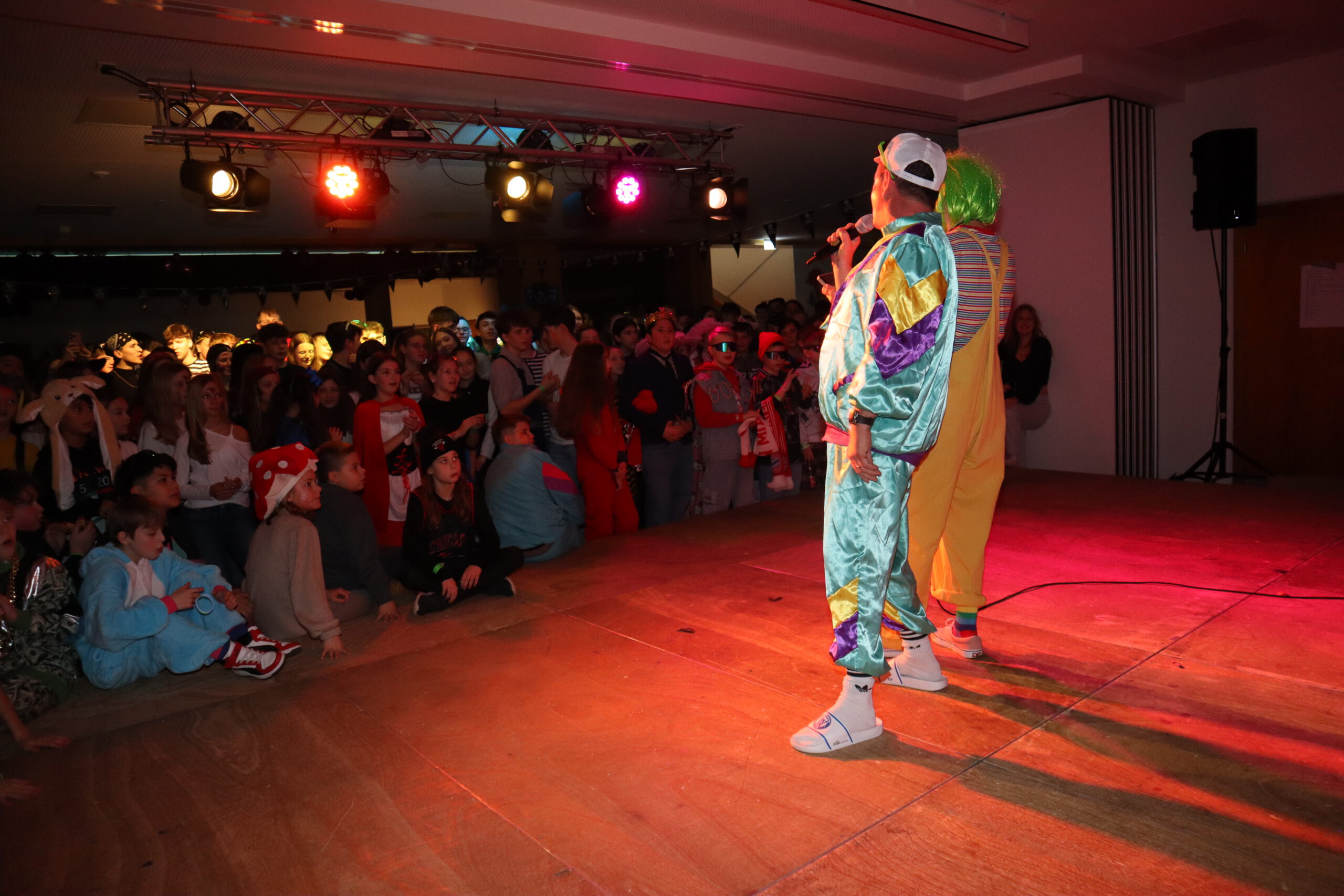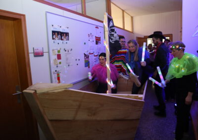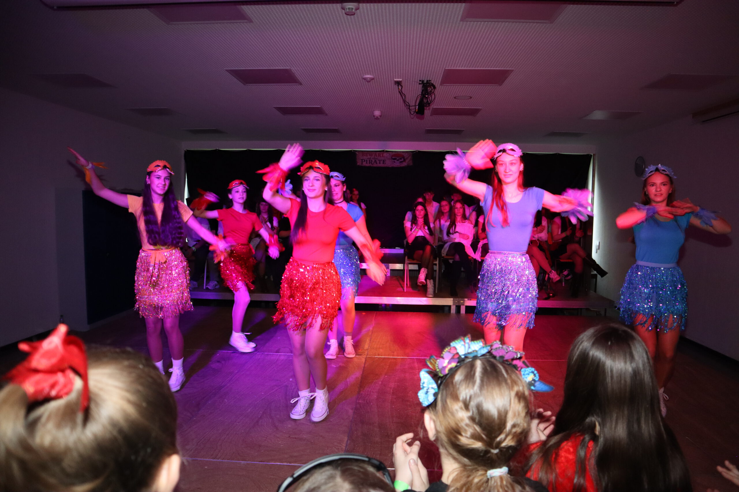 Zum krönenden Abschluss brachten die Lehrer mit einem gemeinsamen Tanz in leuchtenden Kostümen die Aula zum Beben – der Party-Hit Wackelkontakt sorgte auch 2026 für Ausgelassenheit. Den ganzen Morgen über war zudem die Fotobox mit karibischem Hintergrund ein Publikumsmagnet und sorgte für viele unvergessliche Schnappschüsse.