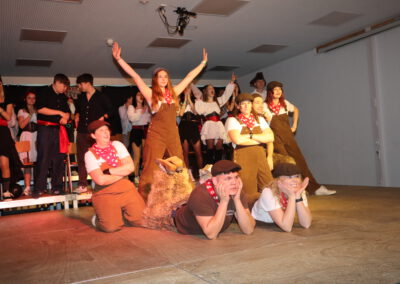 Charmant und souverän führten Mathea Klöpfer (10b) und Maja Decker (10b) durch das Programm. Gleich zu Beginn rissen sie die in der Aula versammelte Schülerschaft mit: Beim Mitmachtanz zu Cotton Eye Joe wurde geklatscht, gehüpft und ausgelassen mitgetanzt. Die Stimmung war sofort auf Sturmfahrt!