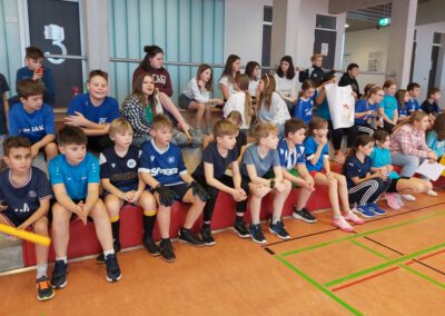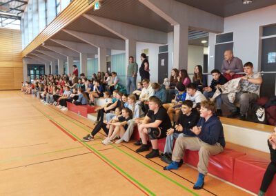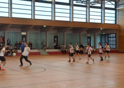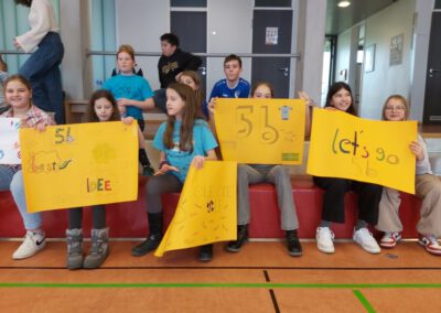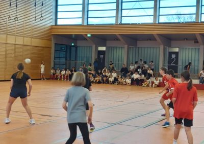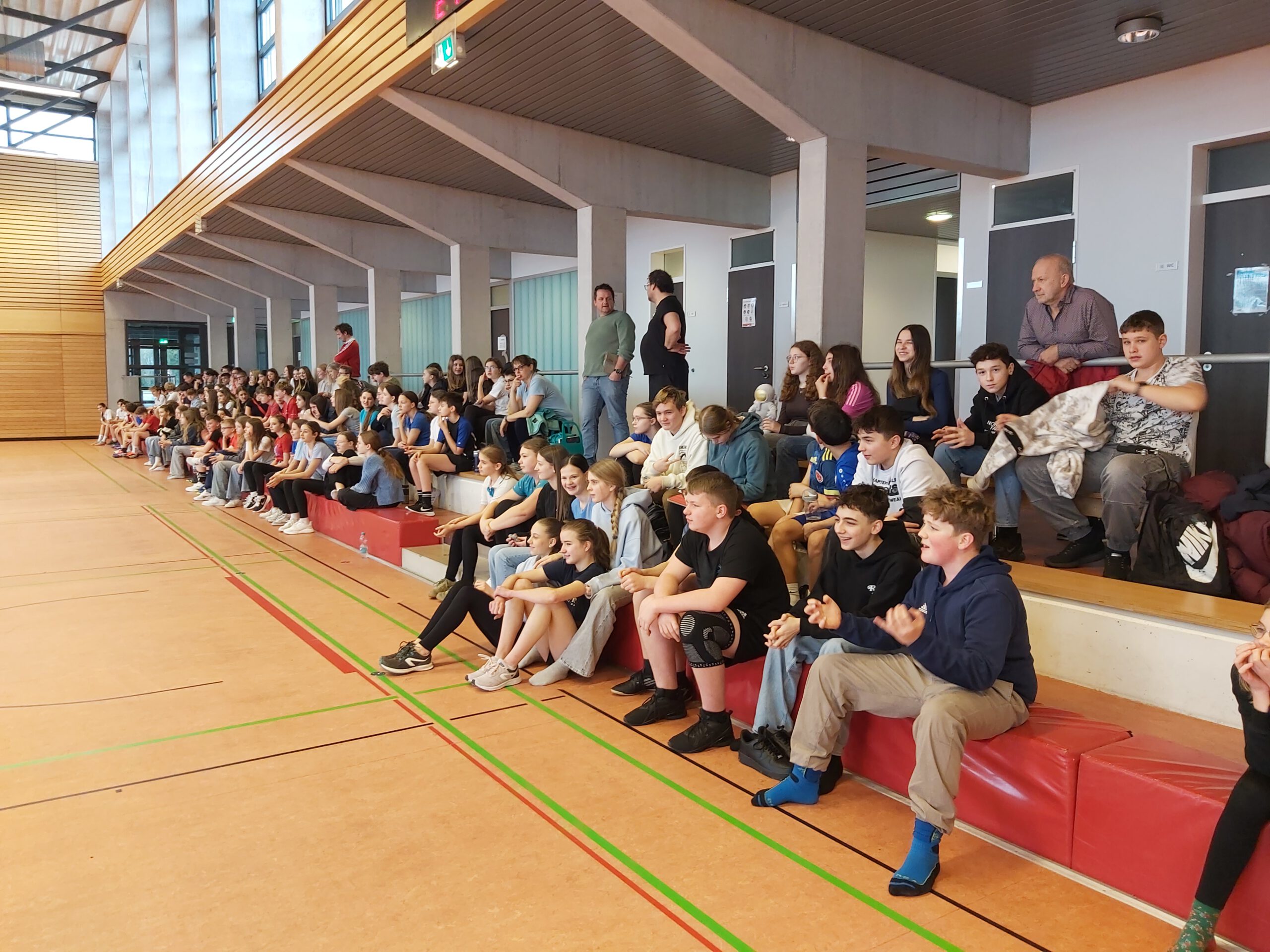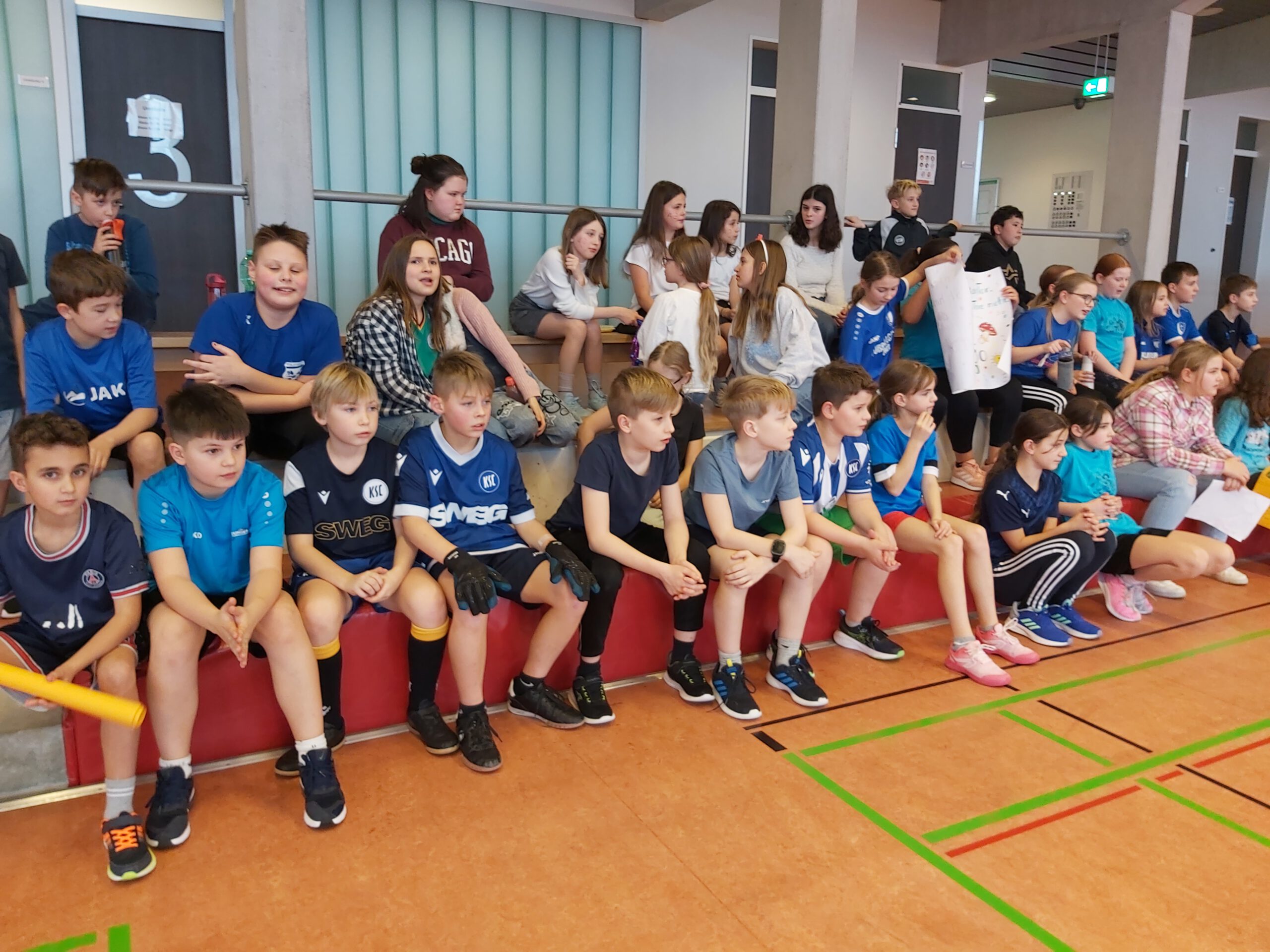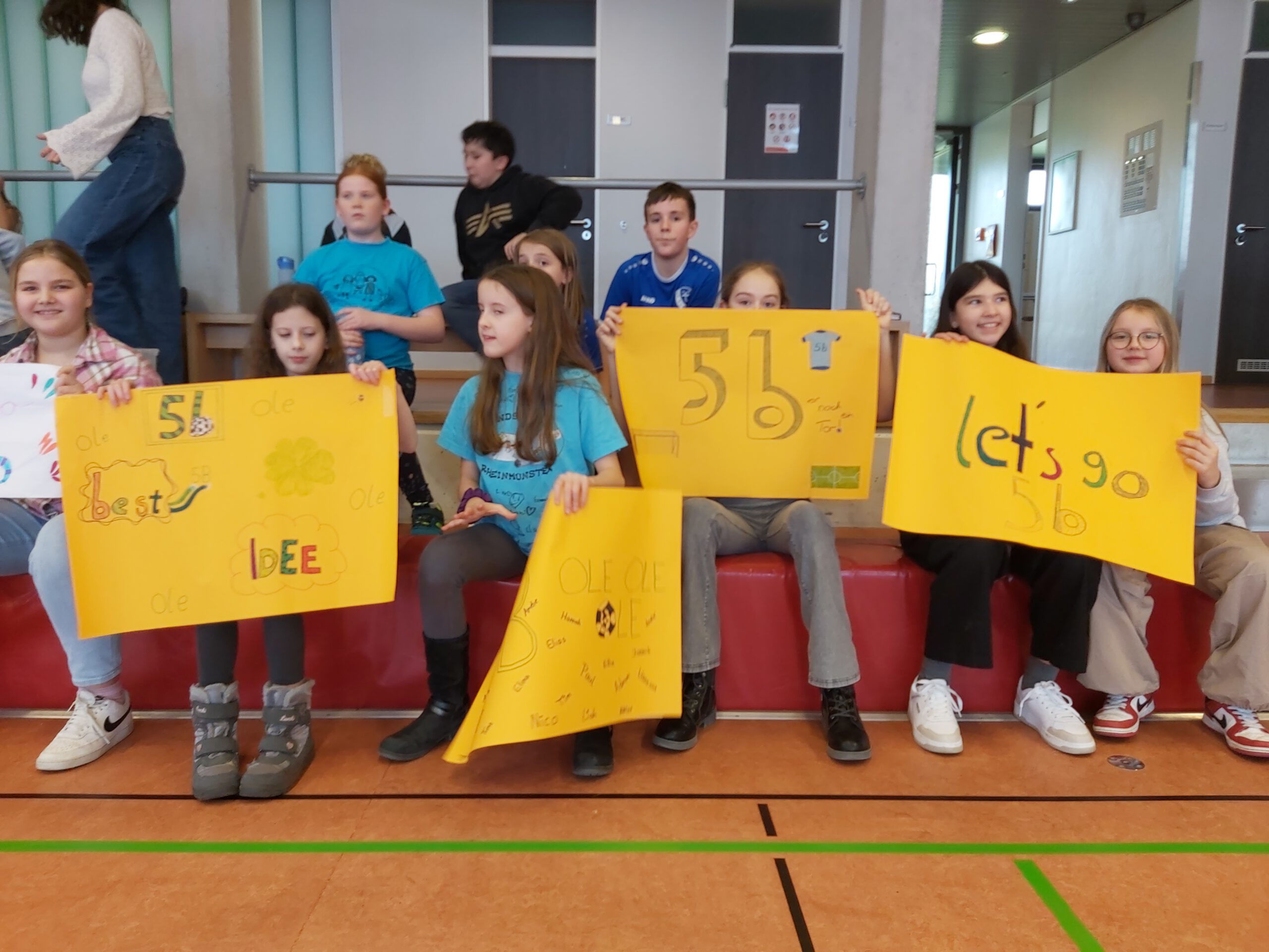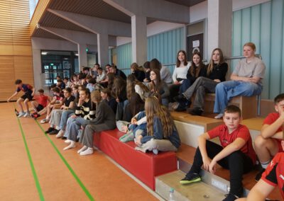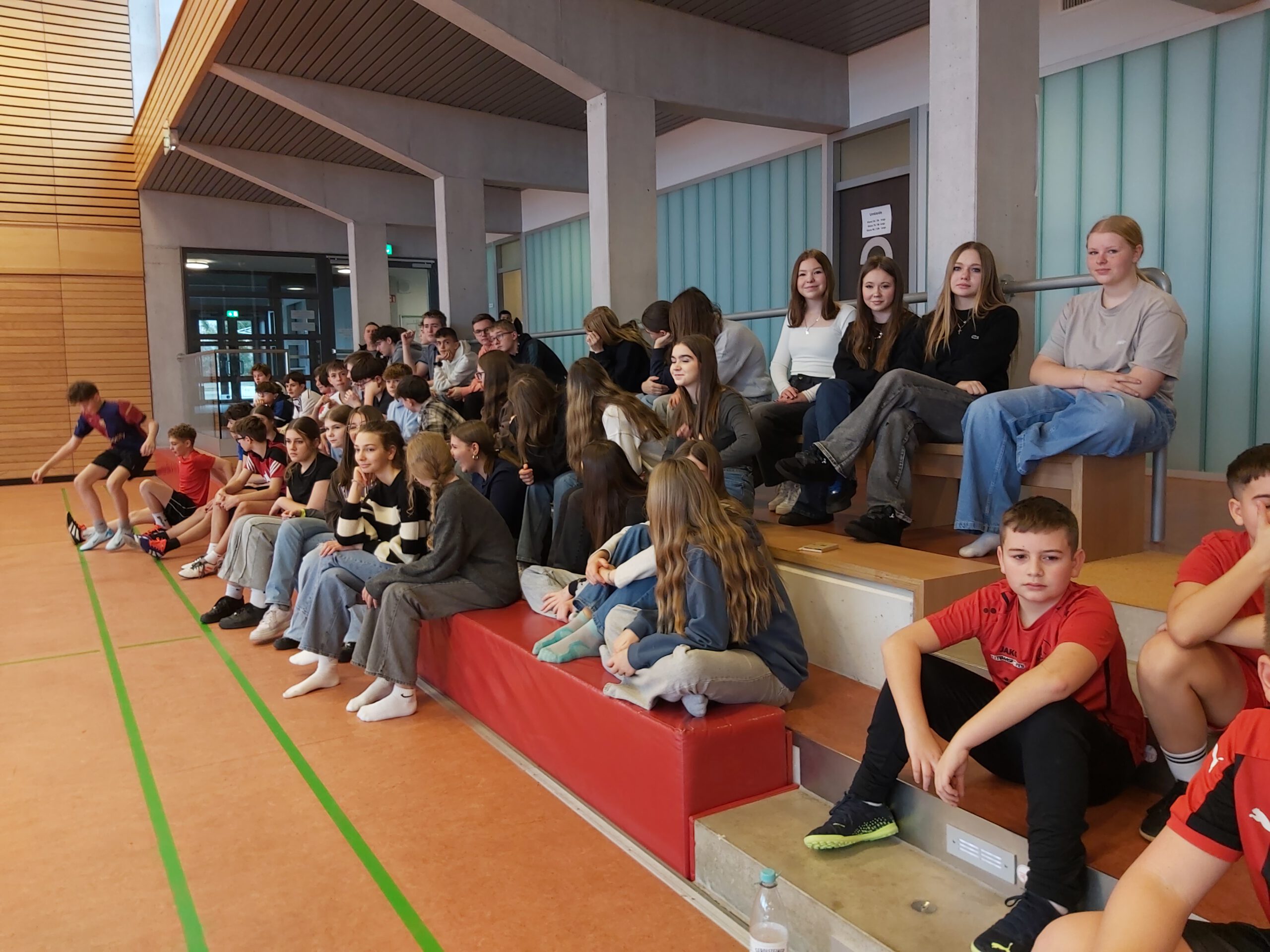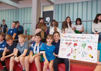 Die Stimmung beim diesjährigen Turnier war wieder einmal grandios! Spieler und Publikum gaben alles, und manch einer dürfte heiser geworden sein. Um die Spieler der eigenen Klasse zu unterstützen, wurden Tänze einstudiert, Plakate gemalt und Schlachtrufe skandiert. Glücklicherweise gab es keine ernsthaften Verletzungen, sodass die Schulsanitäter lediglich das ein oder andere Mal mit Kühlpacks aushelfen mussten.