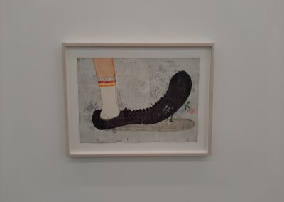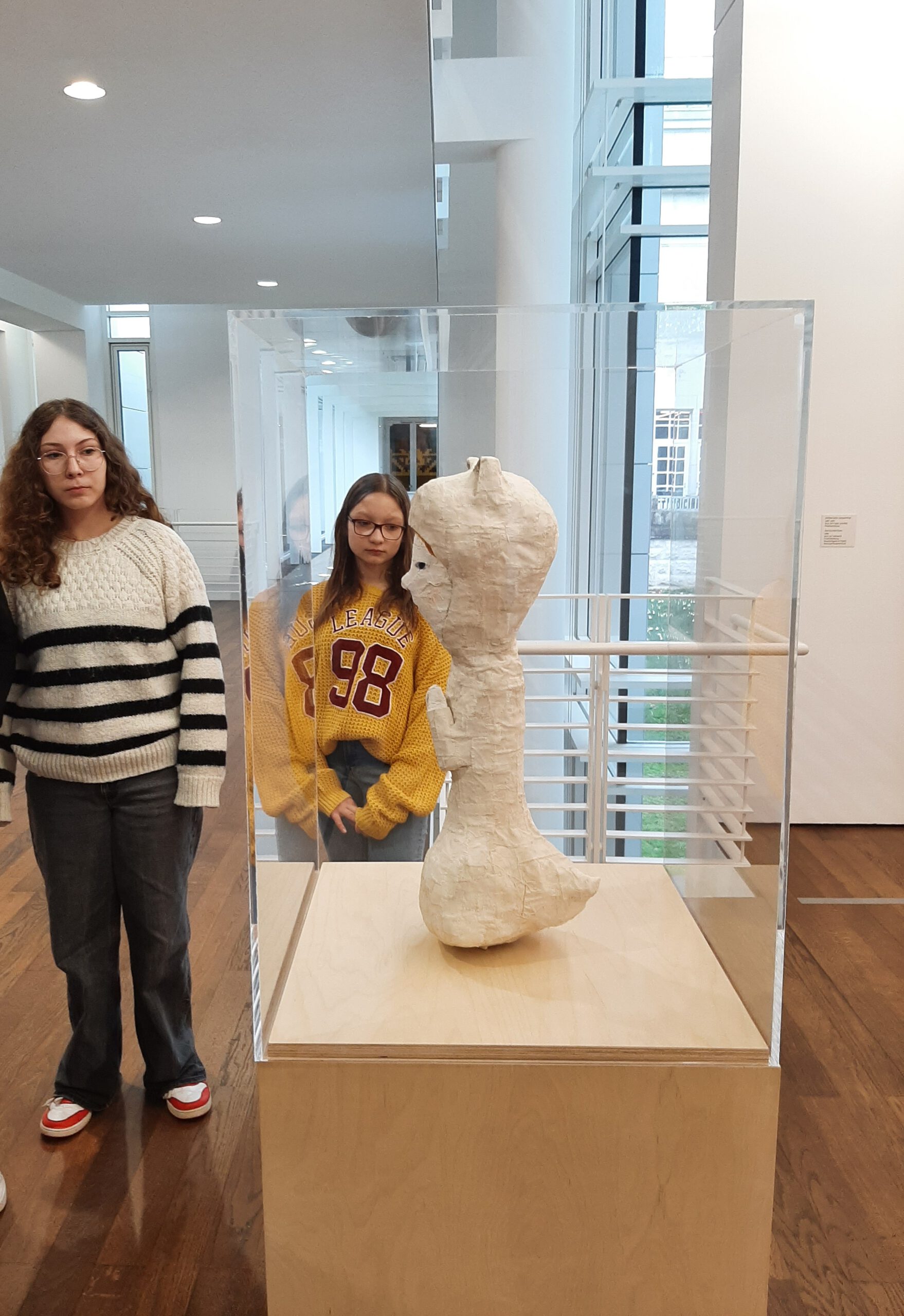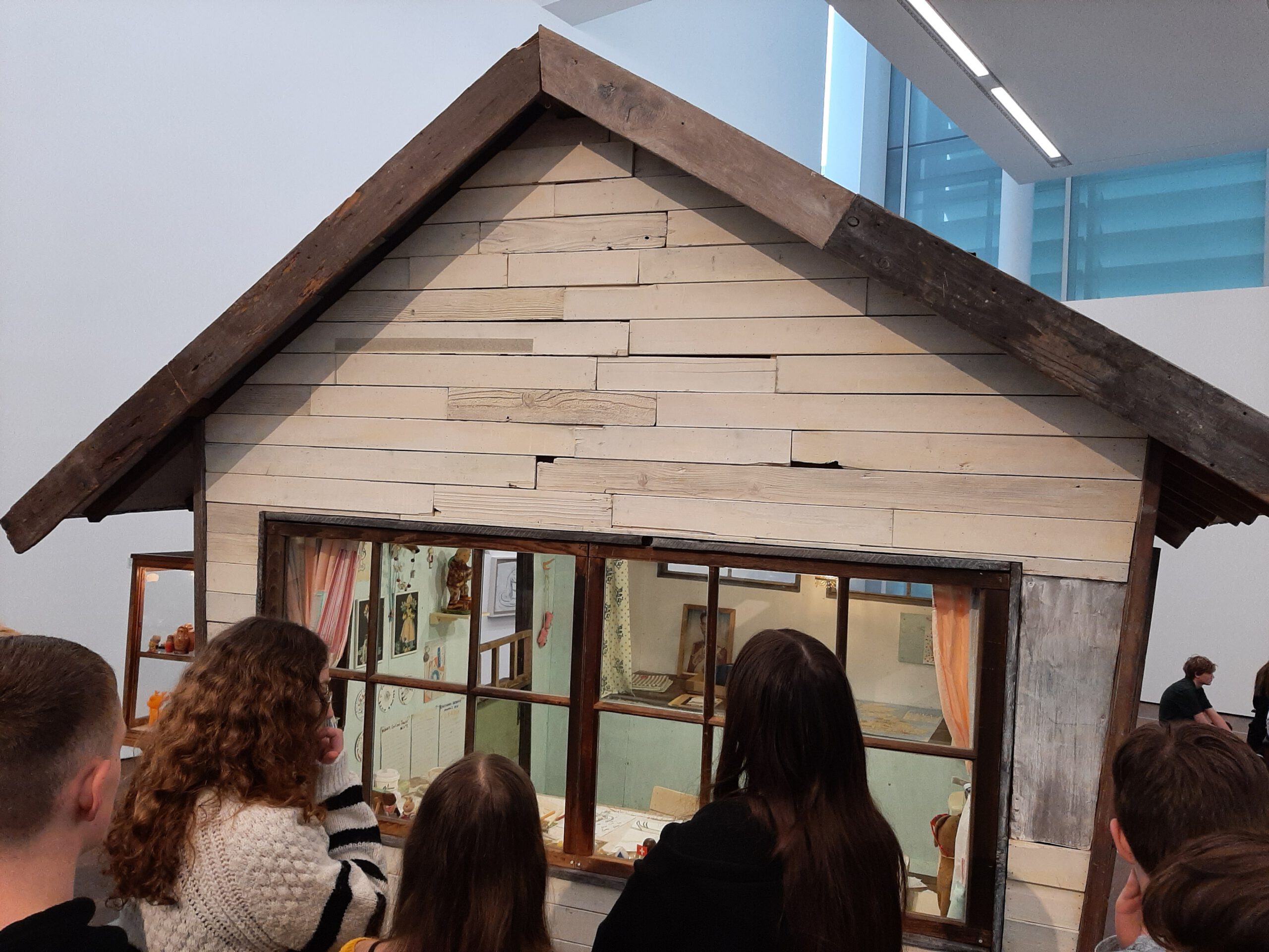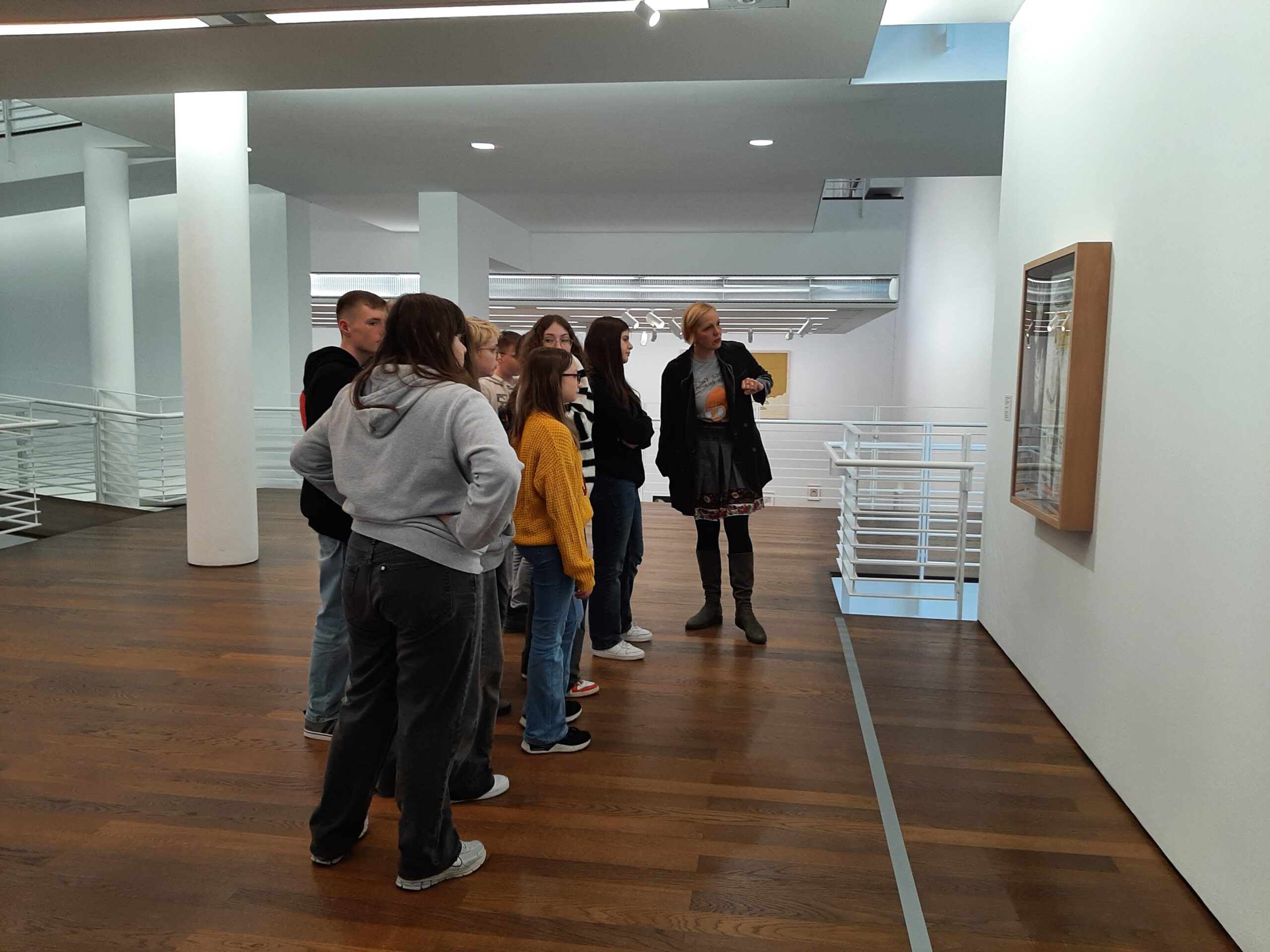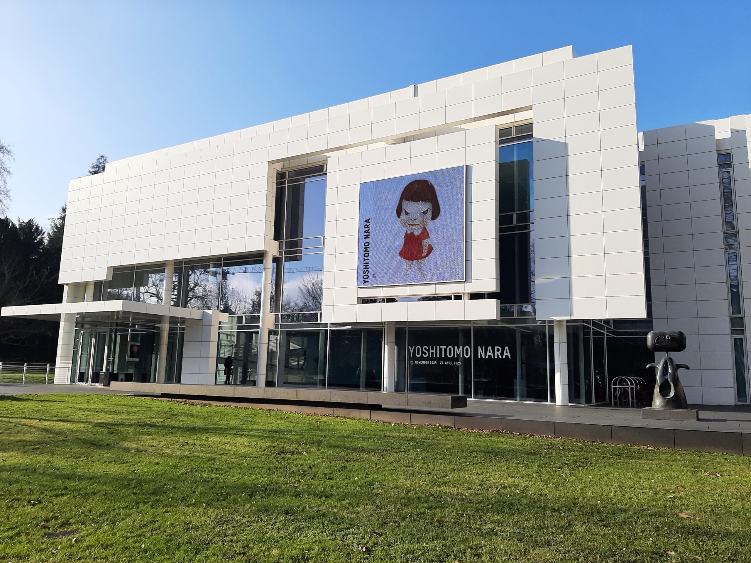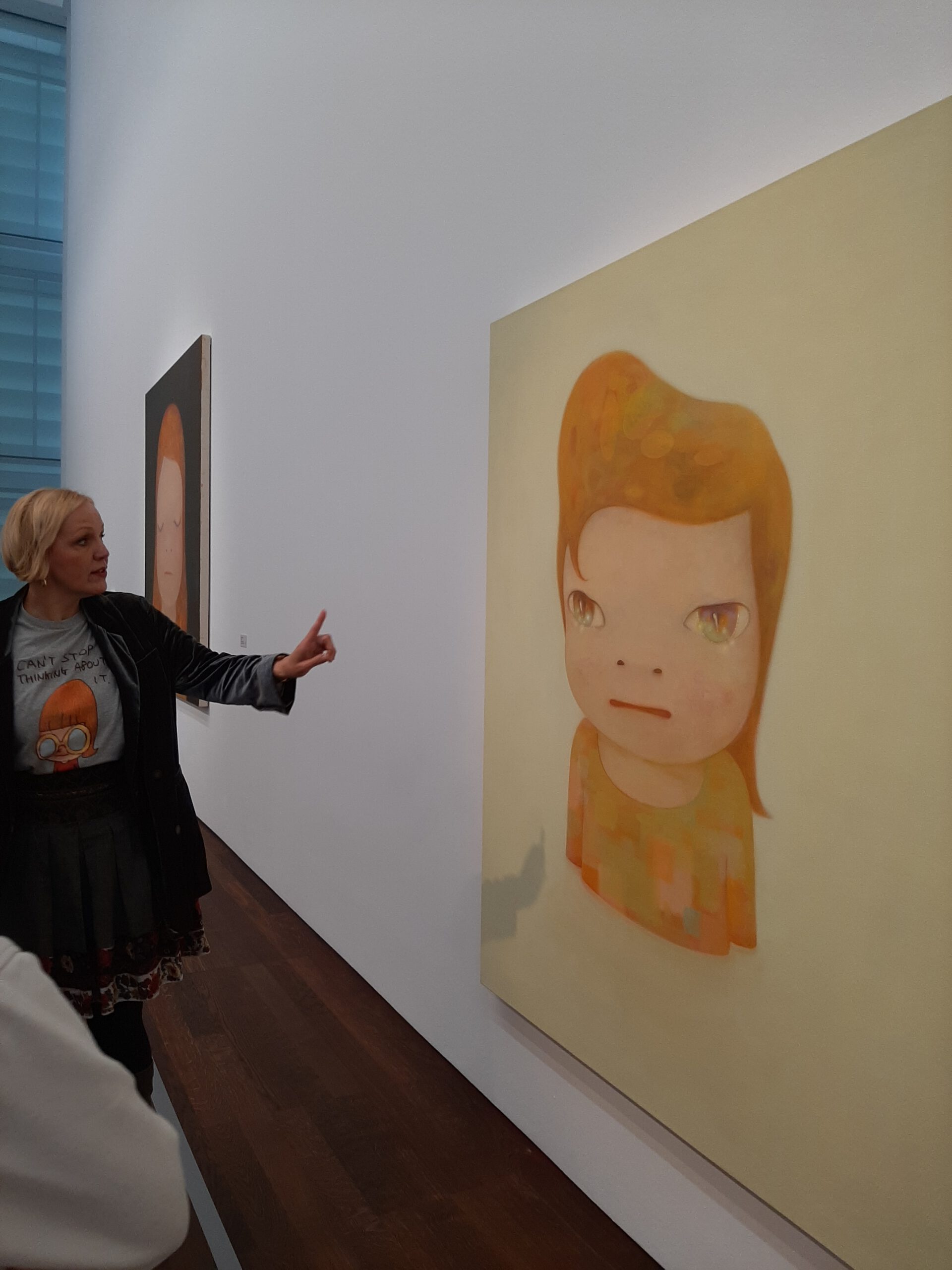 Dort erwartete uns eine Ausstellung des Künstlers Yoshitomo Nara. Gleich zu Beginn wurden wir zwei Museumsmitarbeiterinnen zugeteilt. Sie erläuterten uns die Sicherheitsvorschriften und Verhaltensregeln. Dann startete die Tour durch das Museum, bei der es Gemälde, Zeichnungen und Skulpturen des Künstlers zu sehen gab, die meist Mädchen mit großen Köpfen und großen Augen zeigten, die sogenannten „Angry Girls“. Diese Mädchen wirken wütend, traurig oder ängstlich. Bei vielen Bildern erklärten uns die Begleiterinnen, wie der Künstler sich beim Malen gefühlt oder was er gedacht hat. Nach der Tour hatten wir noch 20 Minuten die Gelegenheit, uns die Ausstellung eigenständig zu betrachten.