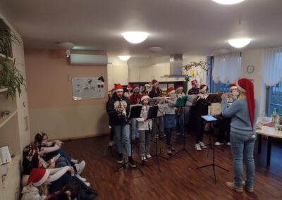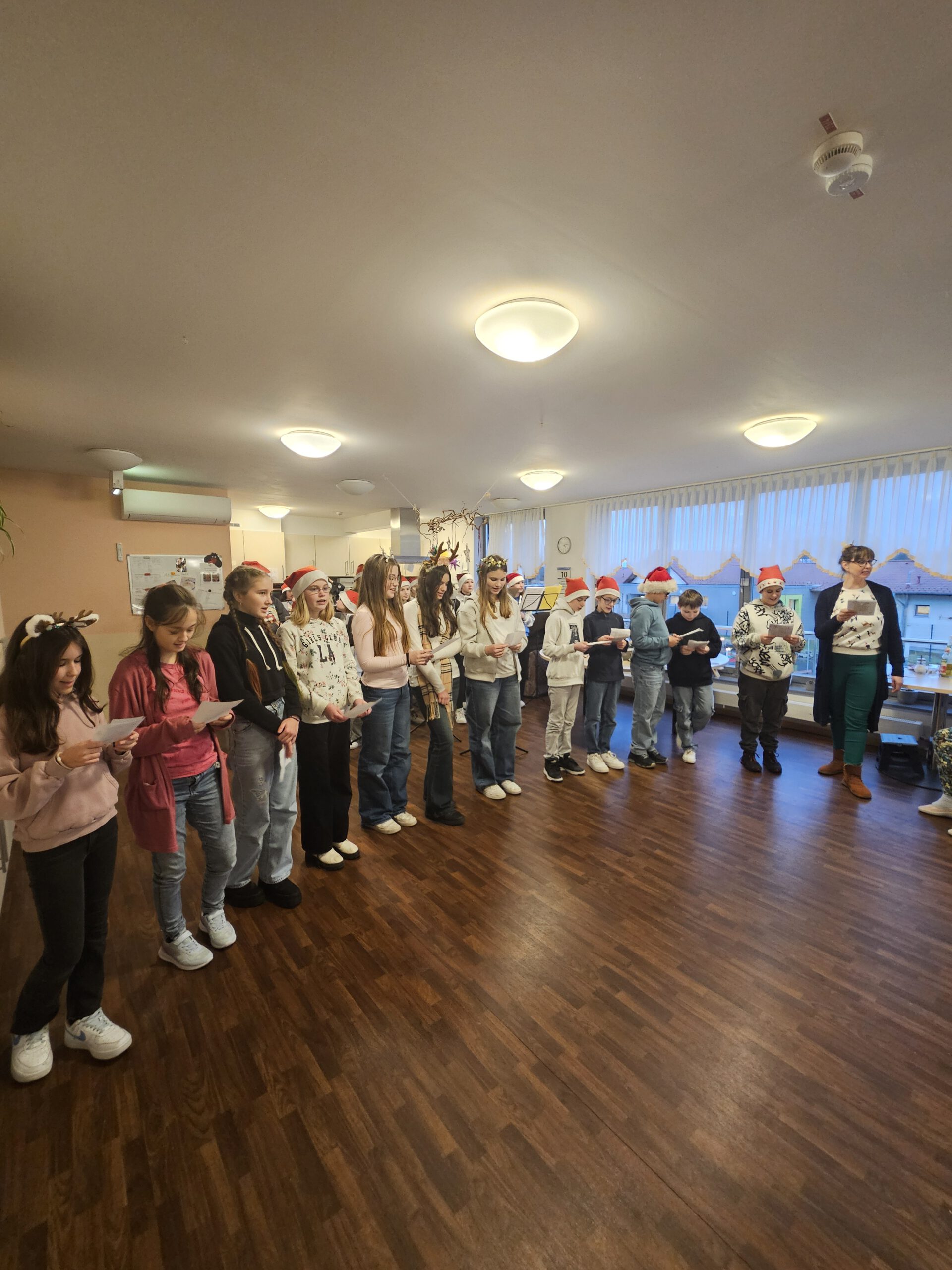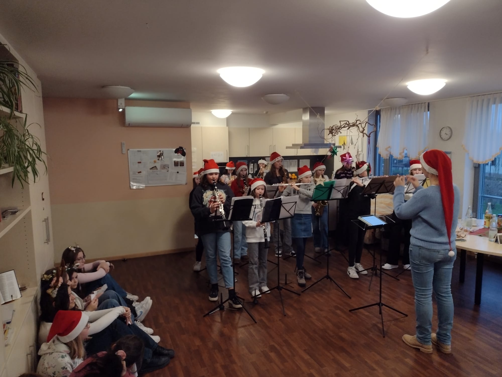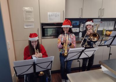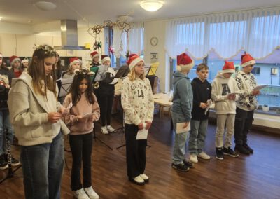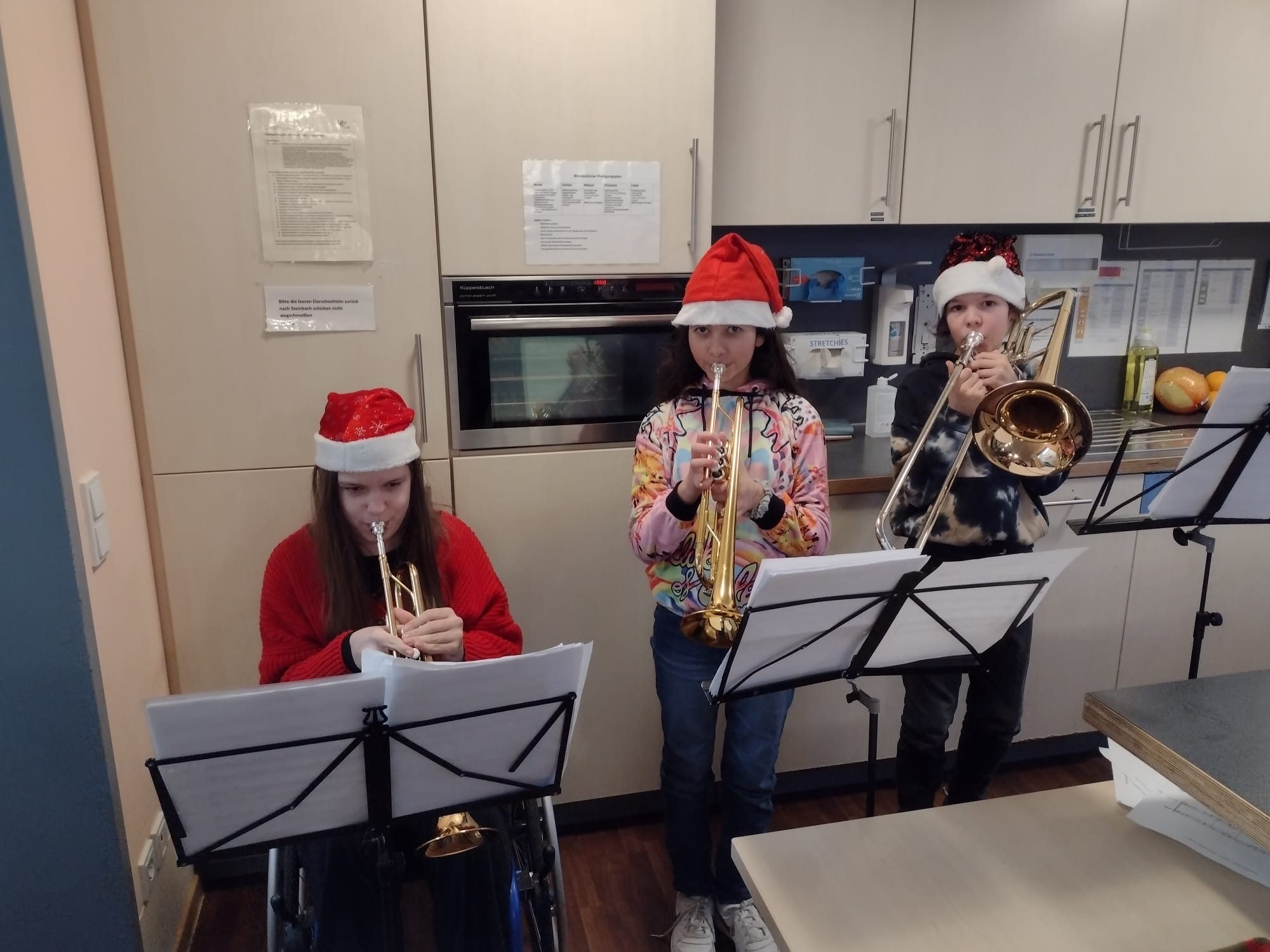 Am Nachmittag des 10. Dezember 2024 besuchte die Klasse 6b der Realschule Rheinmünster das Seniorenheim „Haus am Klostergarten“, um den Bewohnerinnen und Bewohnern eine vorweihnachtliche Freude zu bereiten. Die Schülerinnen und Schüler, begleitet von ihrer Klassenlehrerin Frau Gerspach und Musiklehrerin Frau Huck, hatten ein abwechslungsreiches Programm aus Musik und Gedichten vorbereitet. Die Bläserklasse, unter der Leitung von Frau Huck, eröffnete die Veranstaltung mit festlichen Weihnachtsliedern. Zu Klassikern wie „Oh du fröhliche“ und „Alle Jahre wieder“ stimmten viele Senioren mit ein, wodurch eine stimmungsvolle und herzliche Atmosphäre entstand. Im Anschluss trugen die anderen Kinder der Klasse, unterstützt von Frau Gerspach, weihnachtliche Gedichte vor. Diese reichten von humorvollen bis hin zu besinnlichen Texten und wurden mit großem Applaus gewürdigt. Die Freude der Seniorinnen und Senioren über den Besuch war deutlich spürbar. Viele bedankten sich mit lobenden Worten und es wurde beschlossen, diesen gelungenen Nachmittag im nächsten Jahr zu wiederholen. Zum Abschluss gab es als Dankeschön eine süße Überraschung für die Schülerinnen und Schüler: Jeder erhielt eine Kugel Eis. So ging der Nachmittag für alle Beteiligten zufrieden und mit einem Lächeln zu Ende.