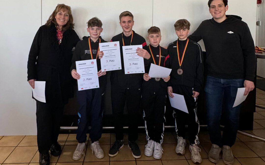 Die Realschule Rheinmünster war für die Altersgruppe AK 2 (10 – 14 Jahre) mit vier Schülern, Jonas Vetter, BHGCC (7b), Fabrice Vetter BHGCC (7a), Raphael Höll (7c) und Jannik Engel (7b) vertreten und erkämpfte sich einen respektablen 3. Platz und somit die Bronze Medaille.