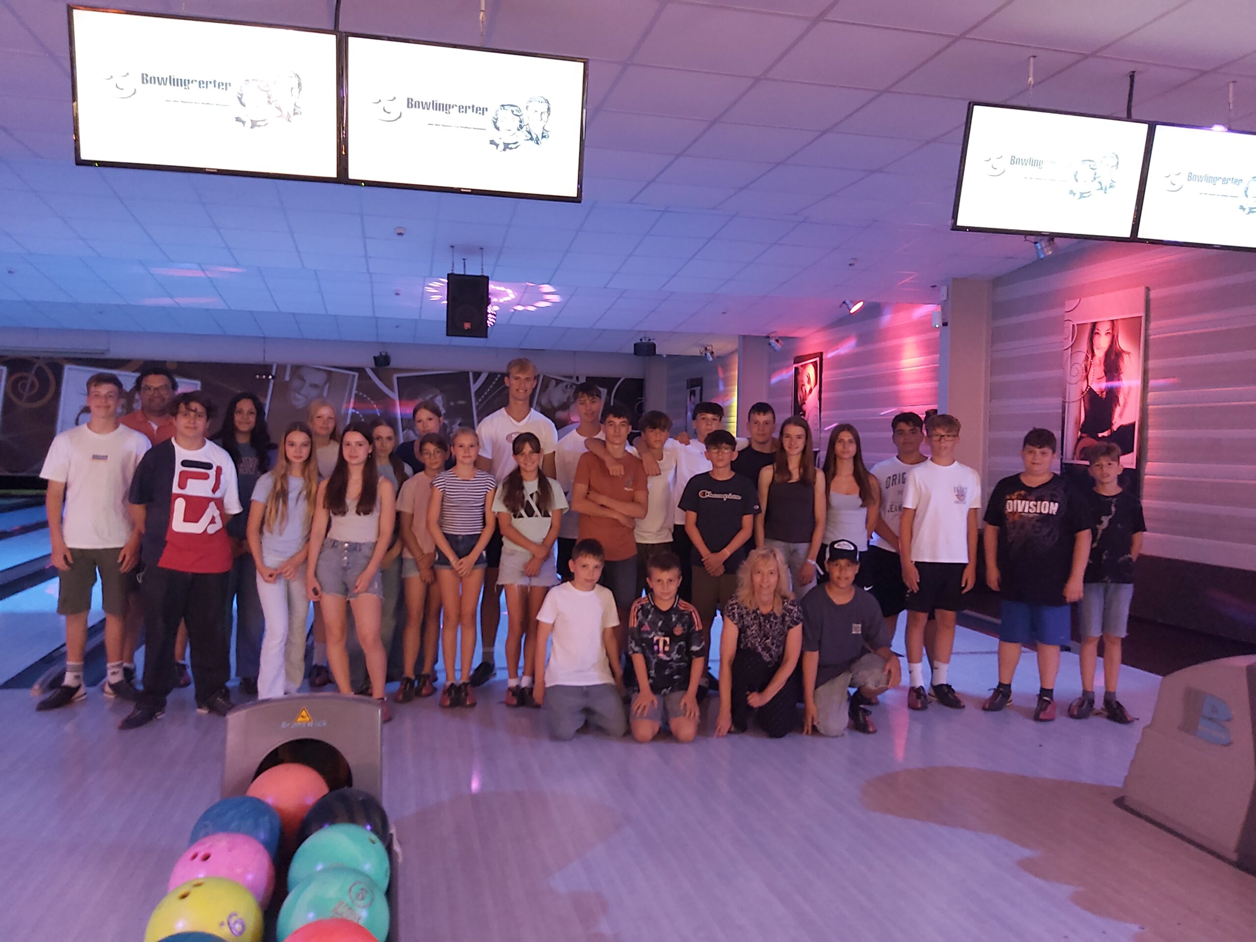 Zur Belohnung für ihre Mitwirkung als KlassensprecherInnen am Schulleben ging es für die SMV der Realschule Rheinmünster mit den Verbindungslehrern Michaela Bohn-Vogel und Thomas Wertal am 4. Juli 2025 in das Bowlingcenter nach Sinzheim. Spaß war angesagt beim Pins-Treffen und Pommes genießen – zeitweise sogar mit in Discolicht getauchten Bowling‘-Bahnen untermalt von coolen Beats. Es war für alle ein schöner Vormittag, der viel zu schnell vorüberging.