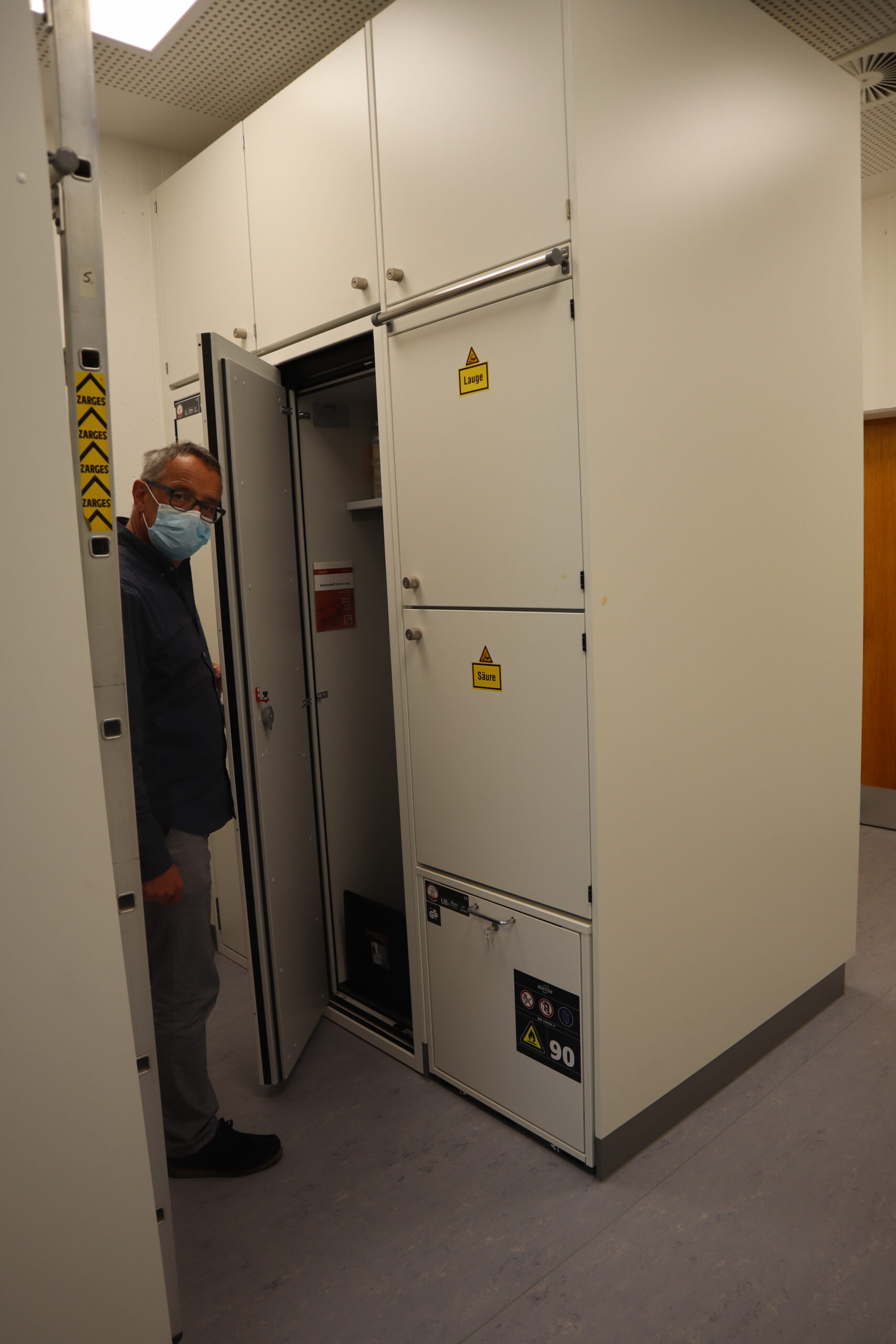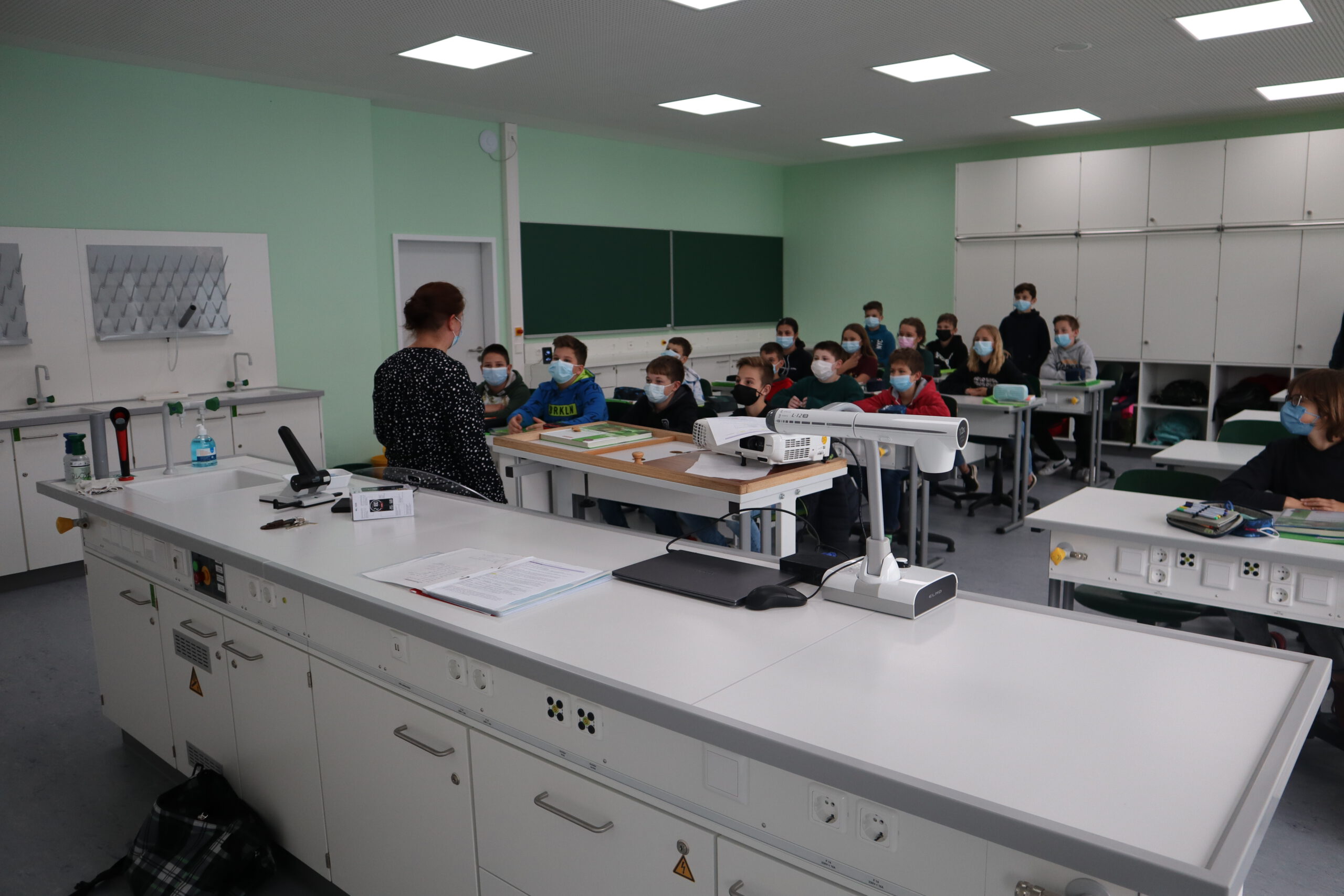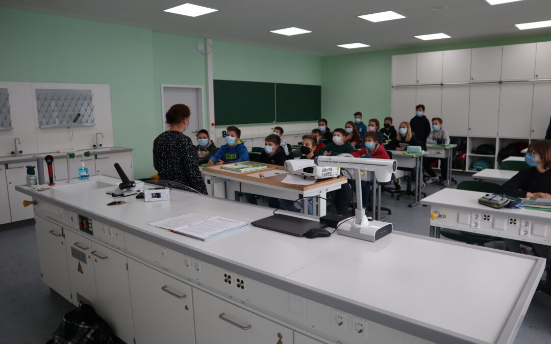 Ein weiterer Schritt in Richtung Modernisierung und Digitalisierung wurde an der Realschule Rheinmünster unternommen: Schüler und Lehrer können sich seit diesem Schuljahr über gleich drei neue Fachräume für Biologie, Chemie und Physik freuen. „Im Vergleich zu vorher sind die neuen Räumlichkeiten ein wahrer Quantensprung“, bringt Rektor Rolf Schemel seine Begeisterung zum Ausdruck. Ebenso wie die Unterrichtsräume selbst wurden auch die Vorbereitungs- und Sammlungsräume der Naturwissenschaften renoviert und auf den neuesten Stand der Technik gebracht: So gibt es vorne im Chemiesaal neuerdings einen Panorama-Abzug, einen verglasten Schaukasten also, in welchem die Lehrkraft für alle Schüler sichtbar Versuche vorführen kann. Aber auch die Schüler selbst können nun flexibel in Vierergruppen oder auch in so genannten „Lernstraßen“ Experimente durchführen. Die beweglichen Tische sind mit Versorgungsmodulen für Wasser und Gas ausgestattet, störende Zuleitungen über den Köpfen entfallen, da sämtliche Kabel und Leitungen im Fußboden verlegt wurden. Neu ist auch, dass Versuchszubehör wie Pipetten, Petrischalen oder Reagenzgläser nun direkt in den Fachräumen und damit für die Schüler selbst zugänglich gelagert sind. Auch für Jacken und Schultaschen gibt es nun innerhalb der Säle Stauräume, was „aus Sicherheitsaspekten eine prima Sache ist“, freut sich Biologie-Lehrerin Silvia Edenborn. Ausgestattet sind alle drei Fachräume außerdem mit Beamer, Dokumentenkamera, Laptop oder i-Pad. Besonders stolz ist Schemel auf das interaktive, per Touch bedienbare 88-Zoll-Tafelsystem im Chemiesaal: Hier hat die Lehrkraft direkten Internetzugang, außerdem können hier dank nagelneuer Versuchsgeräte mit digitaler Schnittstelle Schülerergebnisse aus Experimenten angezeigt und verglichen werden. Bis zum Ende des Jahres werden auch die beiden anderen Digitaltafeln im Biologie- und im Physiksaal installiert sein, deren Lieferung sich wegen des Chip-Mangels aktuell noch verzögert.