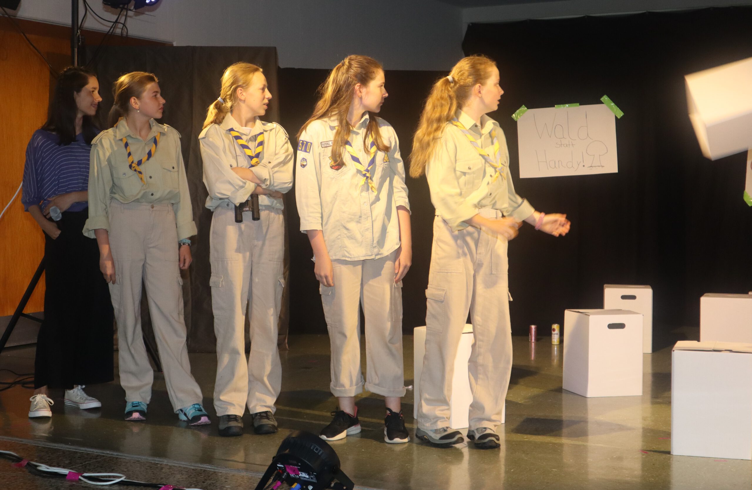Ein besonderer Dank geht an Katharina Kirchhofer, die ab April als engagierte Regieassistenz einsprang, an Regina Kleinhans für die tatkräftige Unterstützung und Organisation sowie für die Hilfe bei der Bewirtung zusammen mit Steffen Hess, an Hausmeister Andreas Dinger für den Aufbau der Tribüne und die technische Unterstützung, an den Förderkreis der Realschule für den Zuschuss zu den Kosten für den 3-tägigen Probenaufenthalt sowie natürlich an die Eltern der Darstellerinnen, die trotz hohem Zeitaufwand das Engagement ihrer Kinder in der Theater-AG unterstützten und darüber hinaus auch noch das Essen für den Bewirtungsstand zubereiteten.
