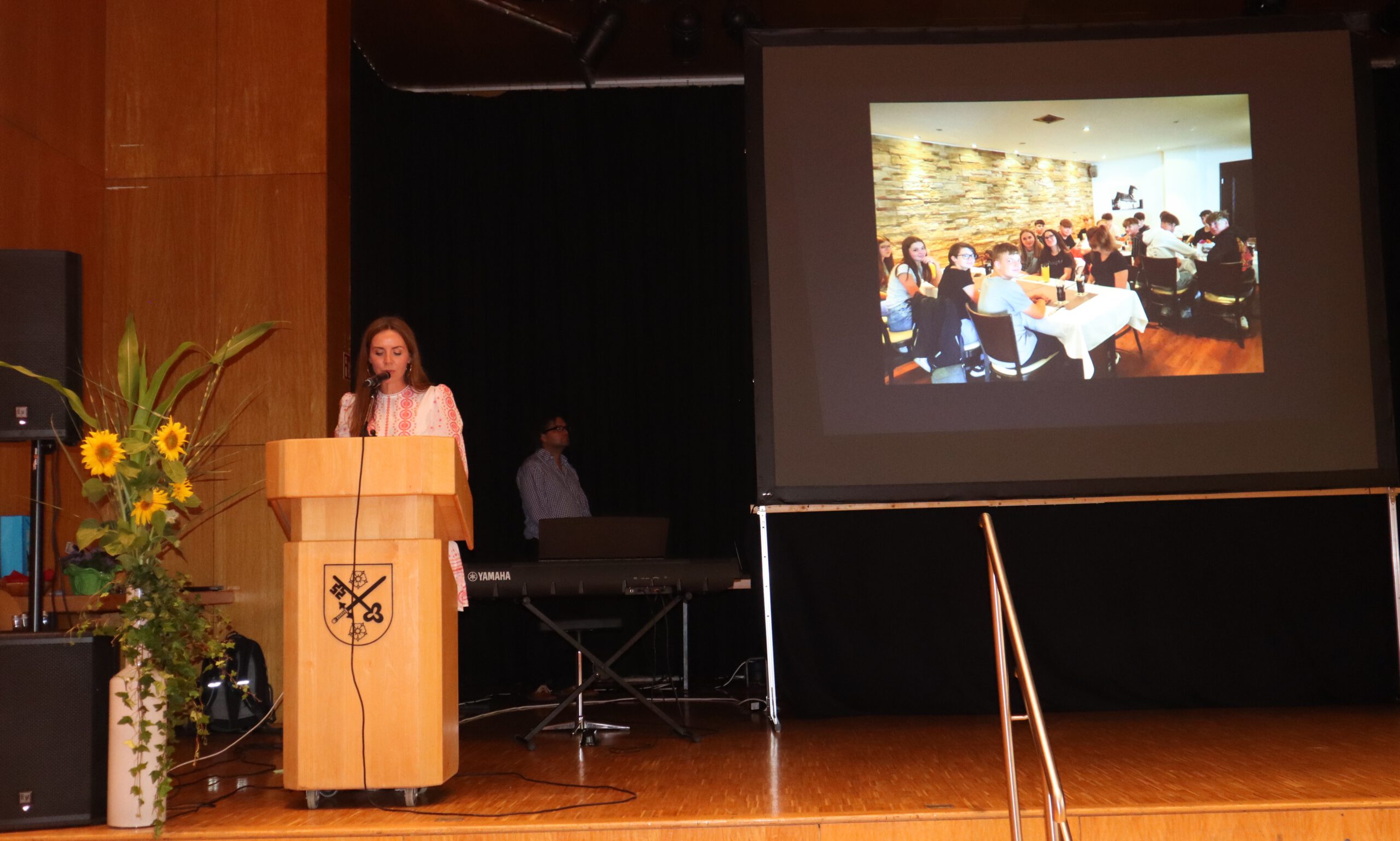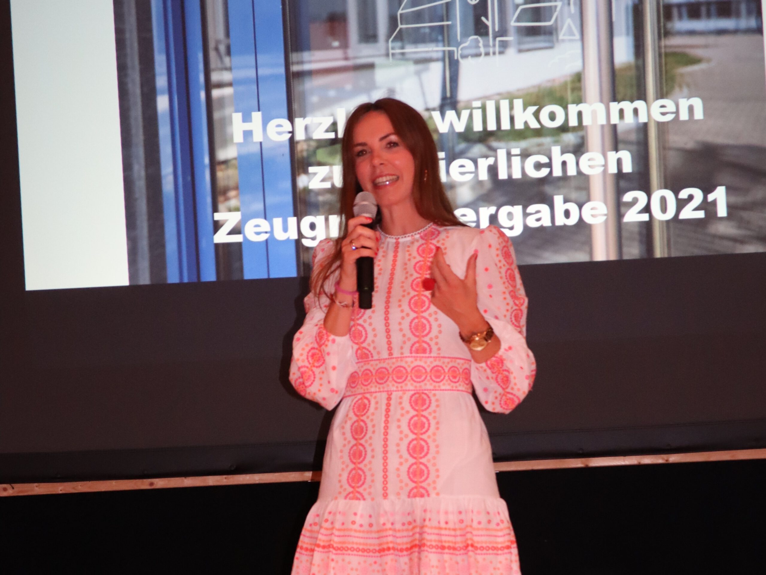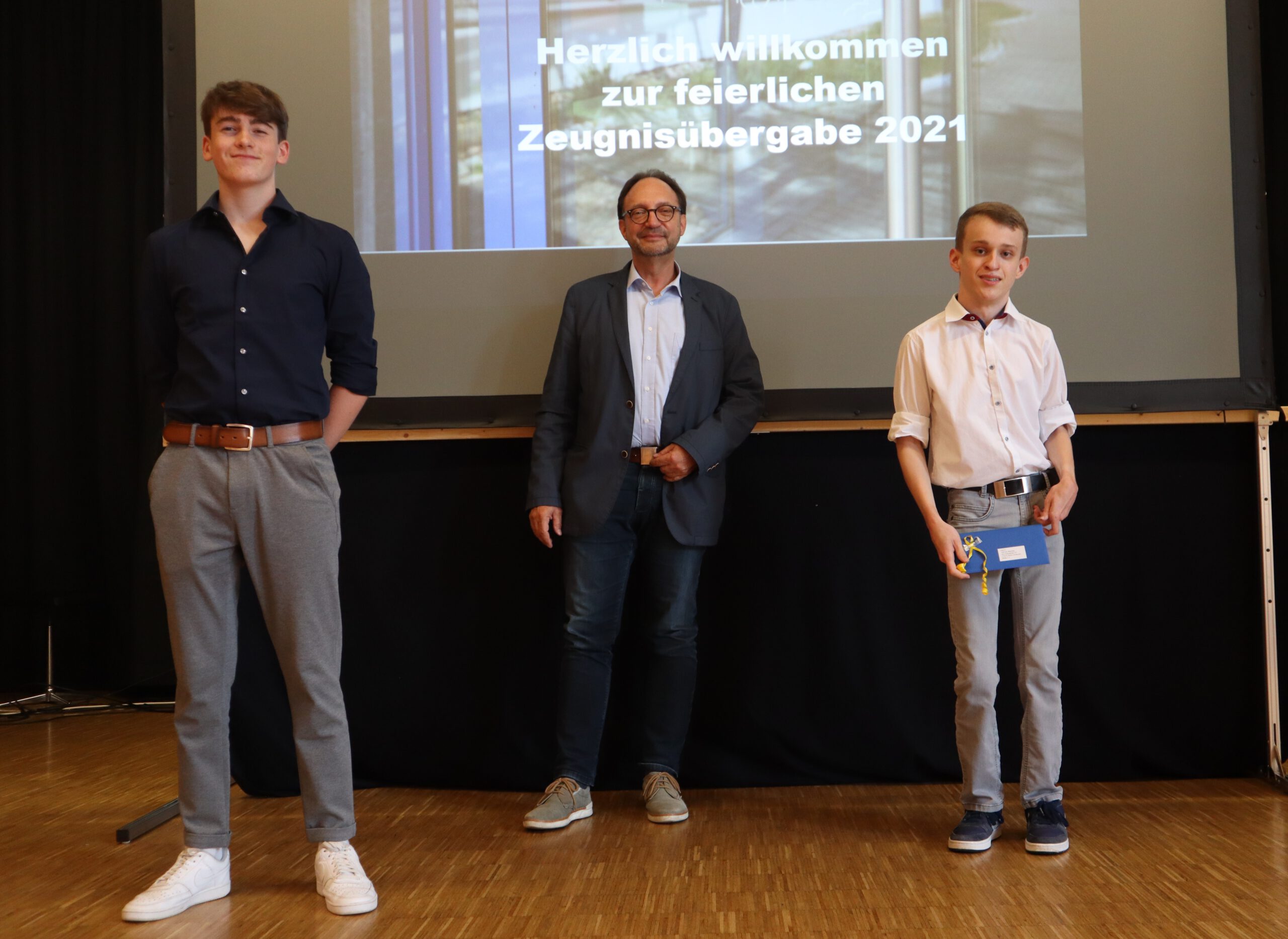Nach einem musikalischen Auftakt brachte Rektor Rolf Schemel direkt seine Anerkennung für diesen besonderen Jahrgang zum Ausdruck: „Die letzten anderthalb Jahre eurer Realschulzeit waren von schwierigen Umständen geprägt, euch wurde mehr Flexibilität, mehr Eigenverantwortung und Durchhaltevermögen abverlangt als in den Jahren zuvor – und ich kann sagen, ihr habt den Anforderungen in höchstem Maße entsprochen!“ Schemel attestierte den Absolventen ein herausragendes Ergebnis, denn der Gesamtnotendurchschnitt liegt bei 2,2 und 28 der insgesamt 78 Realschul-Abgänger werden für ihre Mittlere Reife mit eins vor dem Komma mit einem Preis ausgezeichnet, weitere 12 erhalten für einen Notenschnitt bis 2,2 ein Lob. Drei Schüler haben nach Klasse 9 ihren Hauptschulabschluss erworben. Bürgermeister Helmut Pautler hatte die ehrenvolle Aufgabe, die beiden Schulbesten Raphael Hettler und Yannick Mautes aus der Klasse 10b, welche ihren Realschulabschluss mit einem Gesamtschnitt von 1,1 gemeistert haben, mit dem Preis der Gemeinde Rheinmünster auszuzeichnen. Auch Pfarrer Manfred Woschek zählte zu den Laudatoren des Abends. Er ermunterte die Entlass-Schüler, sich an Gabelungen des Lebensweges mutig und zuversichtlich auch einmal für einen unwegsameren Weg zu entscheiden und überreichte den Absolventen im Namen der Kirchengemeinde als symbolisches Geschenk kleine Schlüsselanhänger-Taschenlampen: „Sie sollen euch daran erinnern, dass Gott mit euch ist und euch den Weg ausleuchtet, egal, für welchen ihr euch entschieden habt.“ Mit kurzen Ansprachen, gespickt mit Anekdoten und gemeinsamen Erinnerungen,  verabschiedeten die drei Klassenlehrerinnen Juliane Ahrens (10a), Silvia Edenborn (10b) und Tanja Seidelmann (10c) schließlich ihre Schützlinge und übergaben die Abschlusszeugnisse. In seinen abschließenden Worten bedankte sich Rektor Rolf Schemel beim diesjährigen Entlass-Jahrgang dafür, dass dieser sich – wie bereits die Absolventen im vergangenen Jahr – mit einer Spende für die Partnerschule der Realschule in Peru engagiert. Die dortige Schulgemeinschaft hat viele Tote zu betrauern und die Schule ist aufgrund wiederkehrender Pandemiewellen seit März 2020 geschlossen und wird wohl erst im März des nächsten Jahres wieder öffnen können.