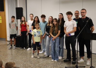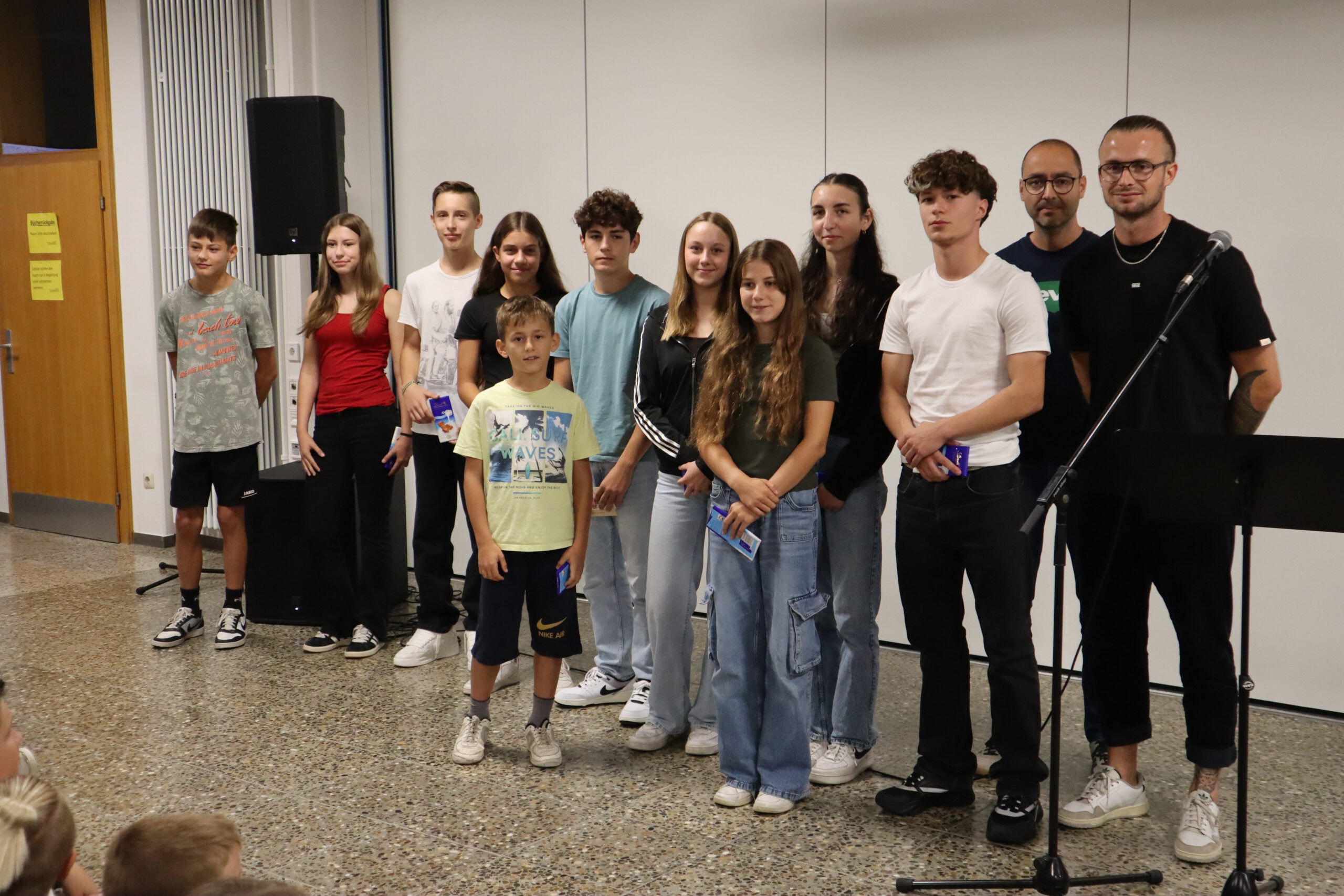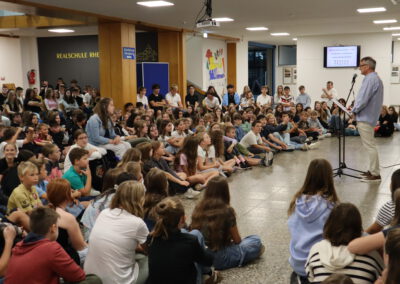 Am Ende des Schuljahres fand in der Aula unserer Schule der gemeinsame Schuljahresabschluss statt. Bei dieser von der Vorfreude auf die sechswöchige Sommerpause geprägten Veranstaltung blickten Schulleiter Rolf Schemel und Konrektor Thomas Herrmann auf das vergangene Schuljahr mit seinen Höhepunkten wie Klassenfahrten, Ausflüge, den Projekttagen und dem Peru-Tag im Frühjahr, die Abschlussfeier und das Schulkonzert zurück. Standing Ovations gab es für die Klassensprecher, Klassenbuchordner, Schulsanitäter, Pausenhof- und Büchereidienste, die während des Schuljahres besonderes Verantwortungsbewusstsein und Engagement gezeigt hatten. Außerdem wurden zahlreiche Schülerinnen und Schüler für besondere Leistungen ausgezeichnet.