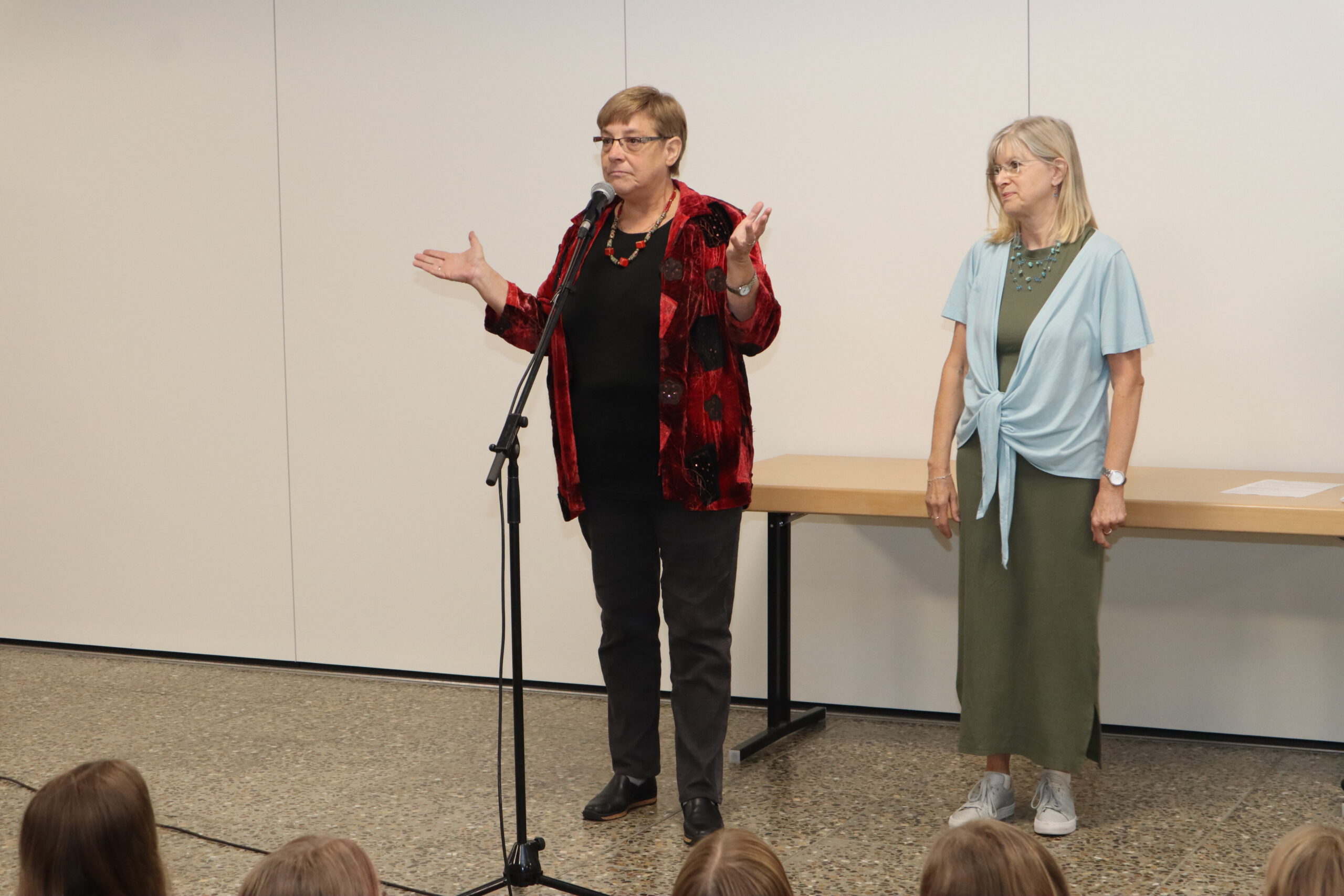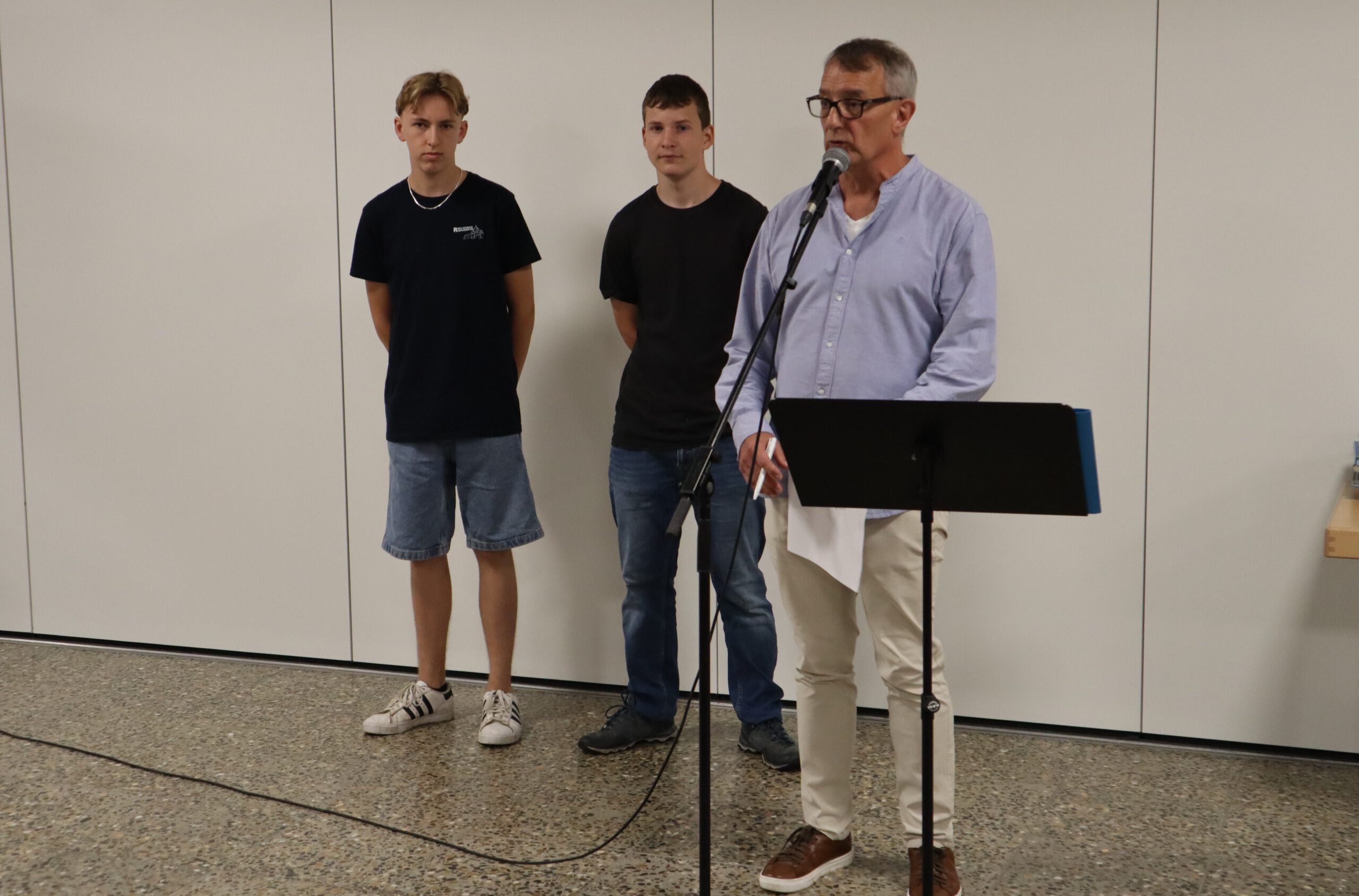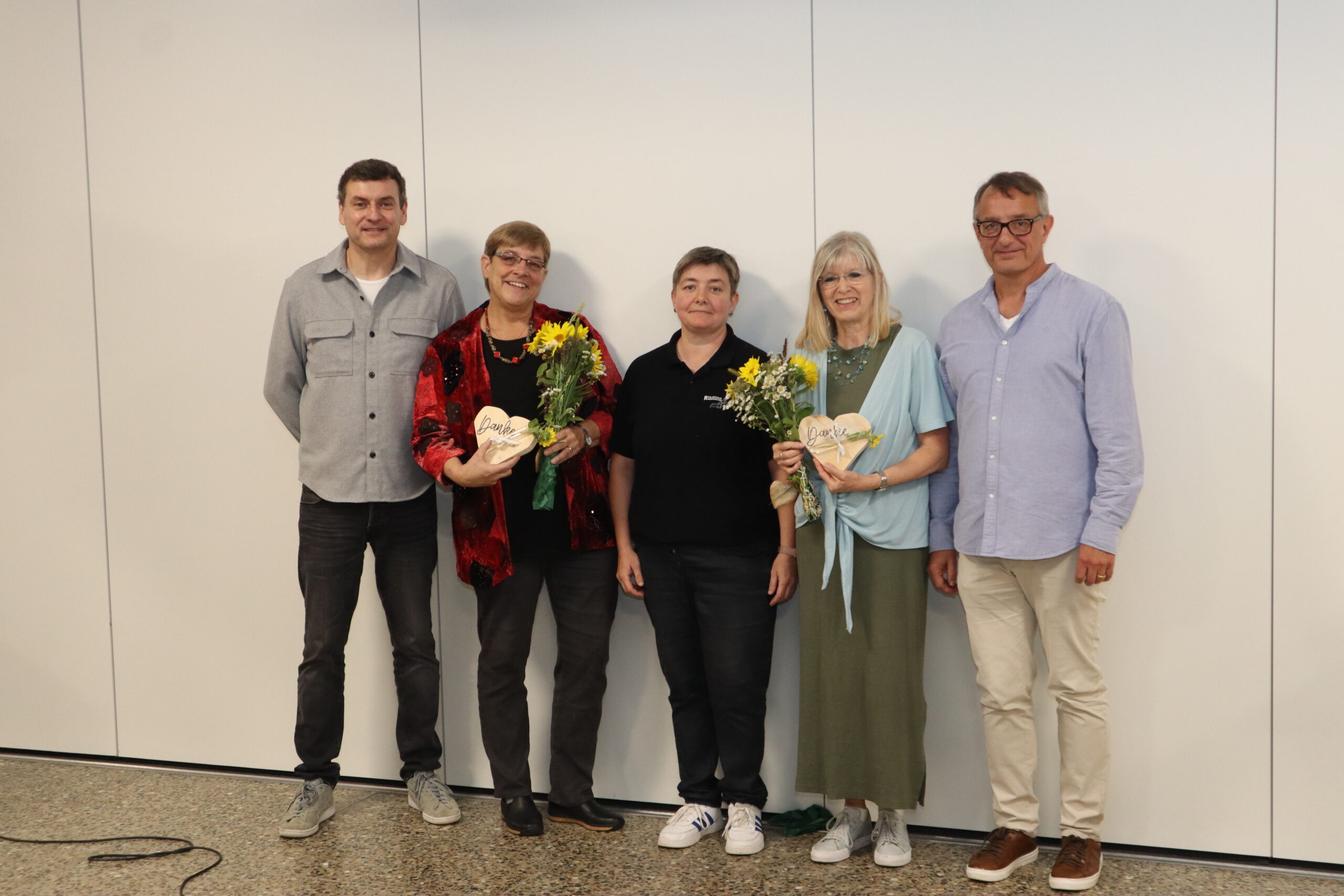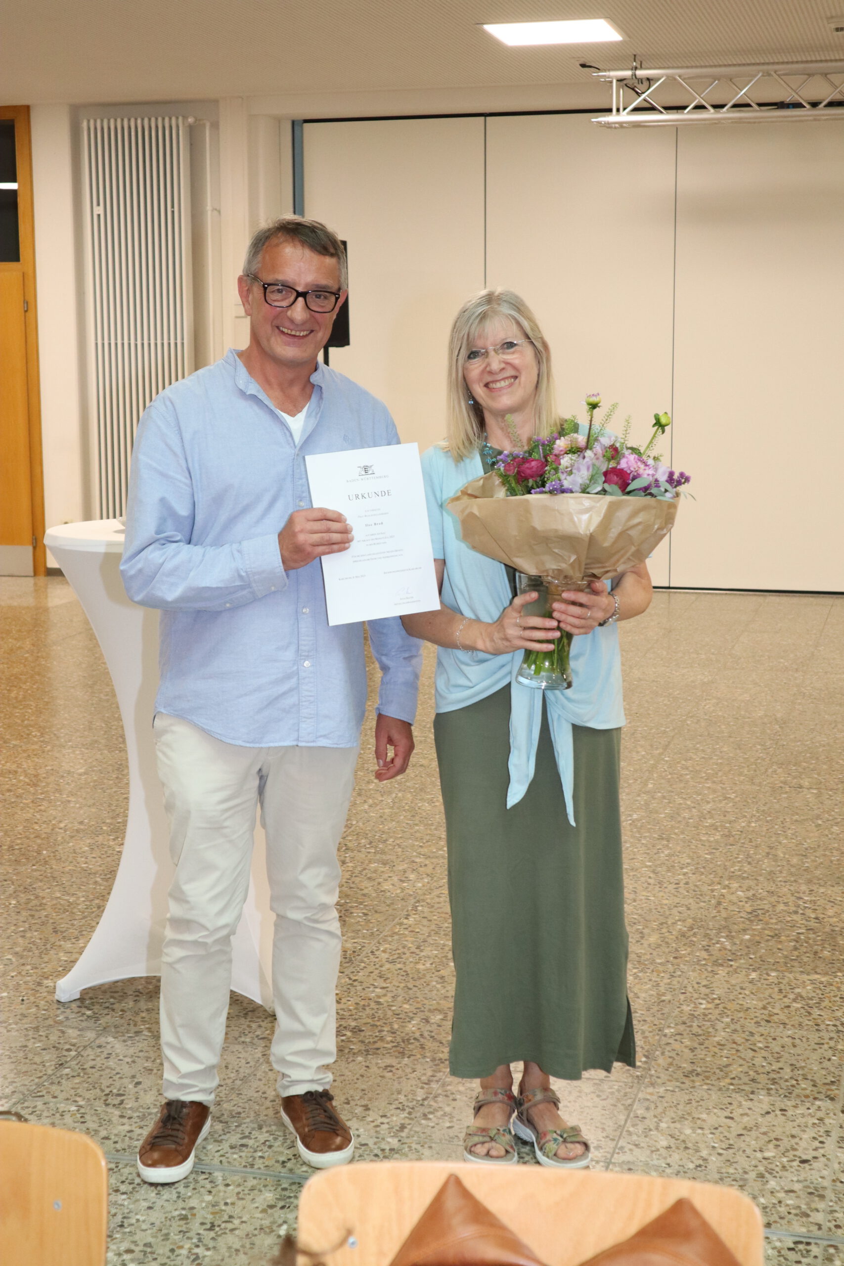 Rektor Rolf Schemel verabschiedete die beiden Referendare David Knobelspies und Luca Peter, die ihr zweites Staatsexamen nach dem Referendariat erfolgreich bestanden haben. Luca Peter wird seine erste Dienststelle an der Tulla-Realschule in Kehl antreten und David Knobelspies zieht nach Berlin, wo er als Lehrer an der Peter-Ustinov-Schule in Charlottenburg arbeiten wird. Isabell Heinz tritt ihren Mutterschutz an und wird das nächste Schuljahr in Elternzeit verbringen. Adieu sagen musste die Schulgemeinschaft auch zu den langjährigen Kolleginnen Ilse Broß und Ilona Israel. Beide haben viele Jahre engagiert an unserer Schule gearbeitet und treten nun ihren wohlverdienten Ruhestand an.