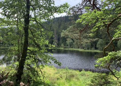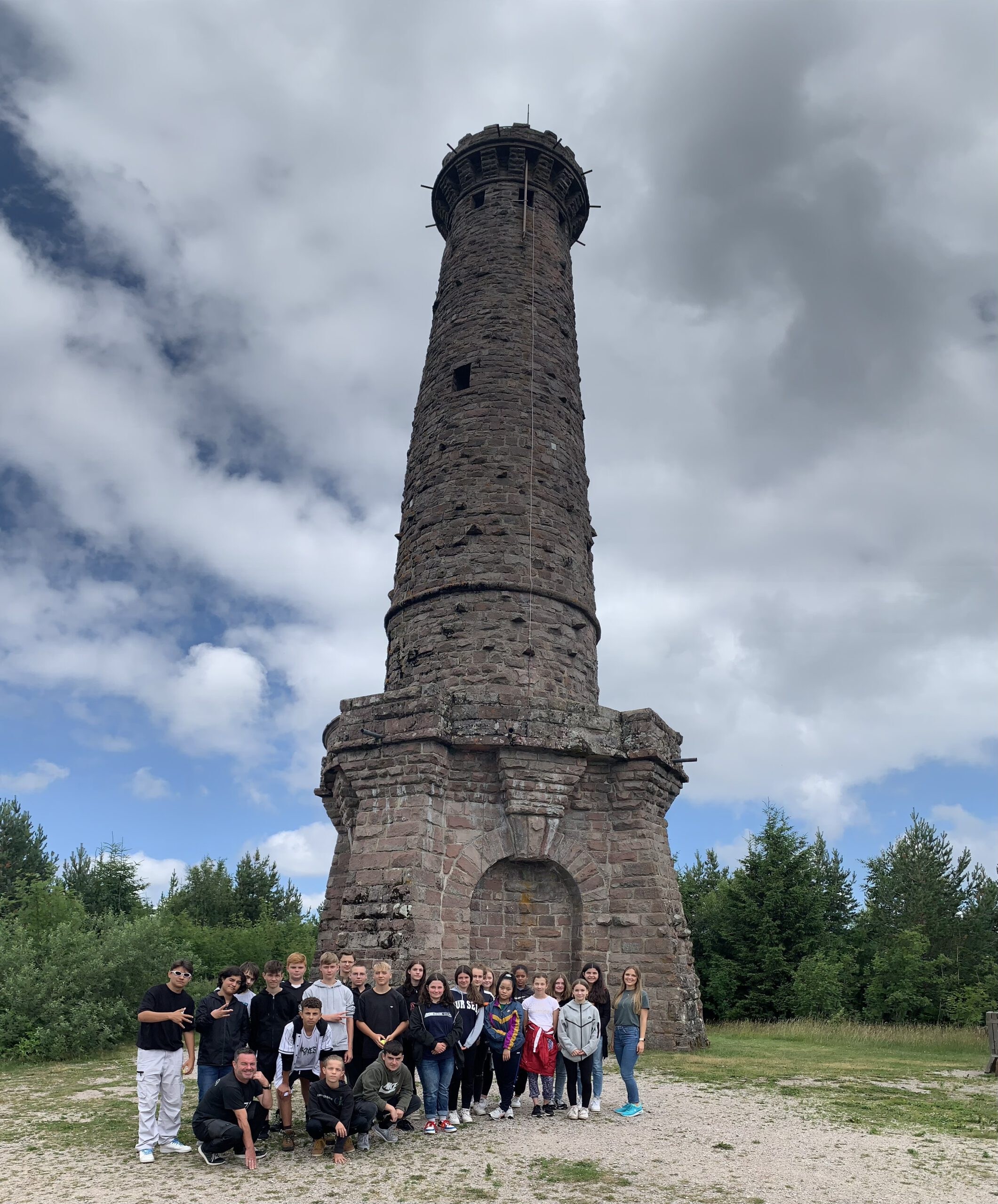 Als wir unausgeschlafen am zweiten Tag aufstanden, gab es zunächst ein leckeres Frühstück. Wir sollten uns alle ein großes Vesper und genügend zum Trinken einpacken, denn wir hatten an diesem Tag einiges vor. Wir fuhren mit dem Bus zum Sand und wanderten von dort aus los. Nach einiger Zeit, vielen Kilometern und einem steilen Aufstieg kamen wir dann an der „Badener Höhe“ an. Dort stiegen viele von uns auf den 30 Meter hohen Turm . Nach einer dreiviertelstündigen Pause wanderten wir weiter in Richtung Herrenwieser See. In Herrenwies machten wir noch eine Rast, um Power zu tanken, bevor es dann zum Mehliskopf ging. Leider hatte die Sommerrodelbahn dort geschlossen, sodass wir den Weg zur Hundshütte zum gemeinsamen Abendessen früher antraten. Abends hörten wir alle im Gemeinschaftsraum ganz laut unsere Musik und genossen die Zeit als Klasse. In der Dämmerung machten viele von uns noch eine Nachtwanderung durch den Wald.