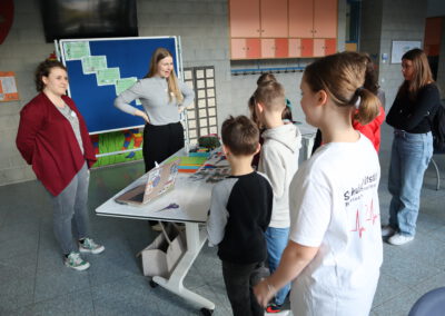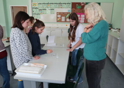 Nach ca. einer Stunde endeten die unter dem Motto SEHEN – MITMACHEN – ERLEBEN stehenden Schulhaus-Rallyes für die Kleingruppen und auch der Vortrag der Schulleitung war zu Ende, sodass anschließend die vielleicht künftigen Realschüler noch gemeinsam mit ihren Eltern die vielfältigen Angebote und Räume der Scharzacher Realschule erkunden konnten. Ein Snack- und Kuchenbuffet der Eltern- und Schülerschaft Klasse 5b rundete das Angebot ab.