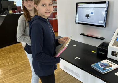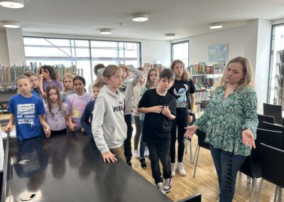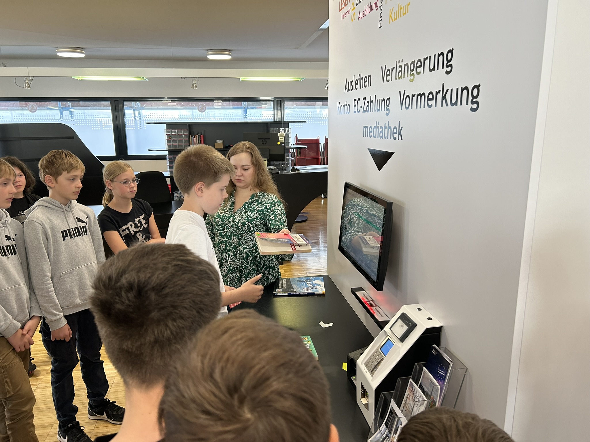 Im Anschluss an die informative Einführung und einen Rundgang durch die verschiedenen Abteilungen durften die Schüler selbständig durch die Mediathek stöbern und mit den neu erstellten Benutzerausweisen schon bis zu zwei Bücher ausleihen und für die kommenden vier Wochen mit nach Hause nehmen.