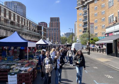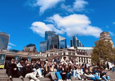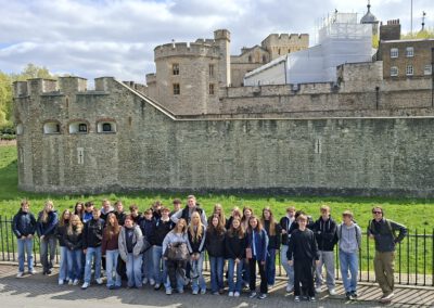 Auf dem Programm standen zahlreiche Highlights: Die Schülerinnen und Schüler besichtigten den Buckingham Palace, den Big Ben, das London Eye sowie die Tower Bridge. Auch ein Spaziergang entlang der Themse durfte natürlich nicht fehlen. Ein besonderes Erlebnis war der Besuch des Borough Market. Dort konnten die Schülerinnen und Schüler viele internationale Spezialitäten entdecken, verschiedene Gerichte probieren und die besondere Atmosphäre eines der bekanntesten Märkte Londons erleben. Viele nutzten die Gelegenheit, gemeinsam zu essen und neue kulinarische Eindrücke zu sammeln.