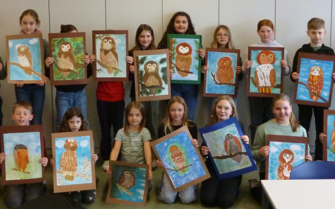 Die SchülerInnen hatten große Freude bei dieser Aufgabe. „Es hat Spaß gemacht, diesen besonderen Kauz zu malen.“