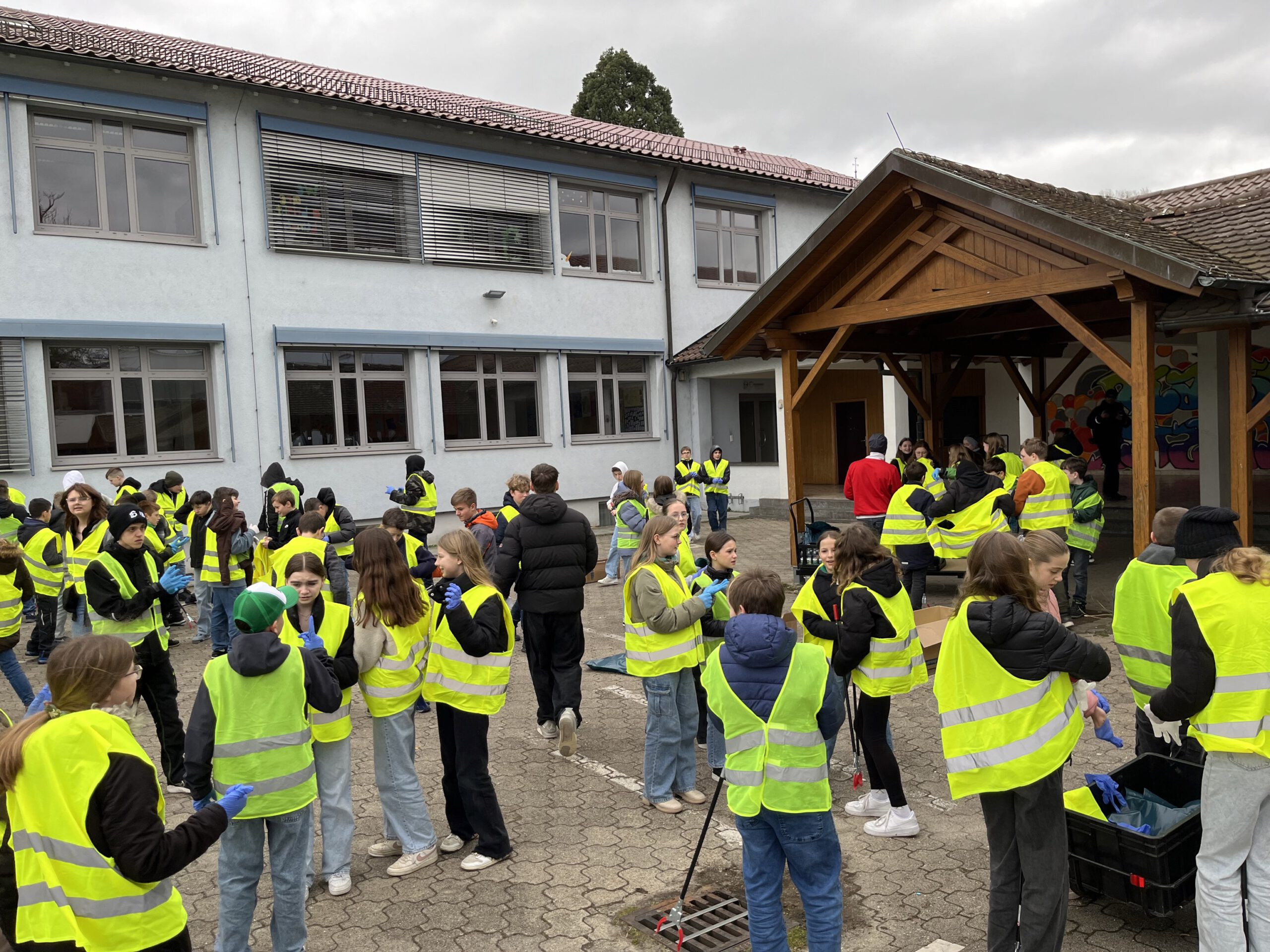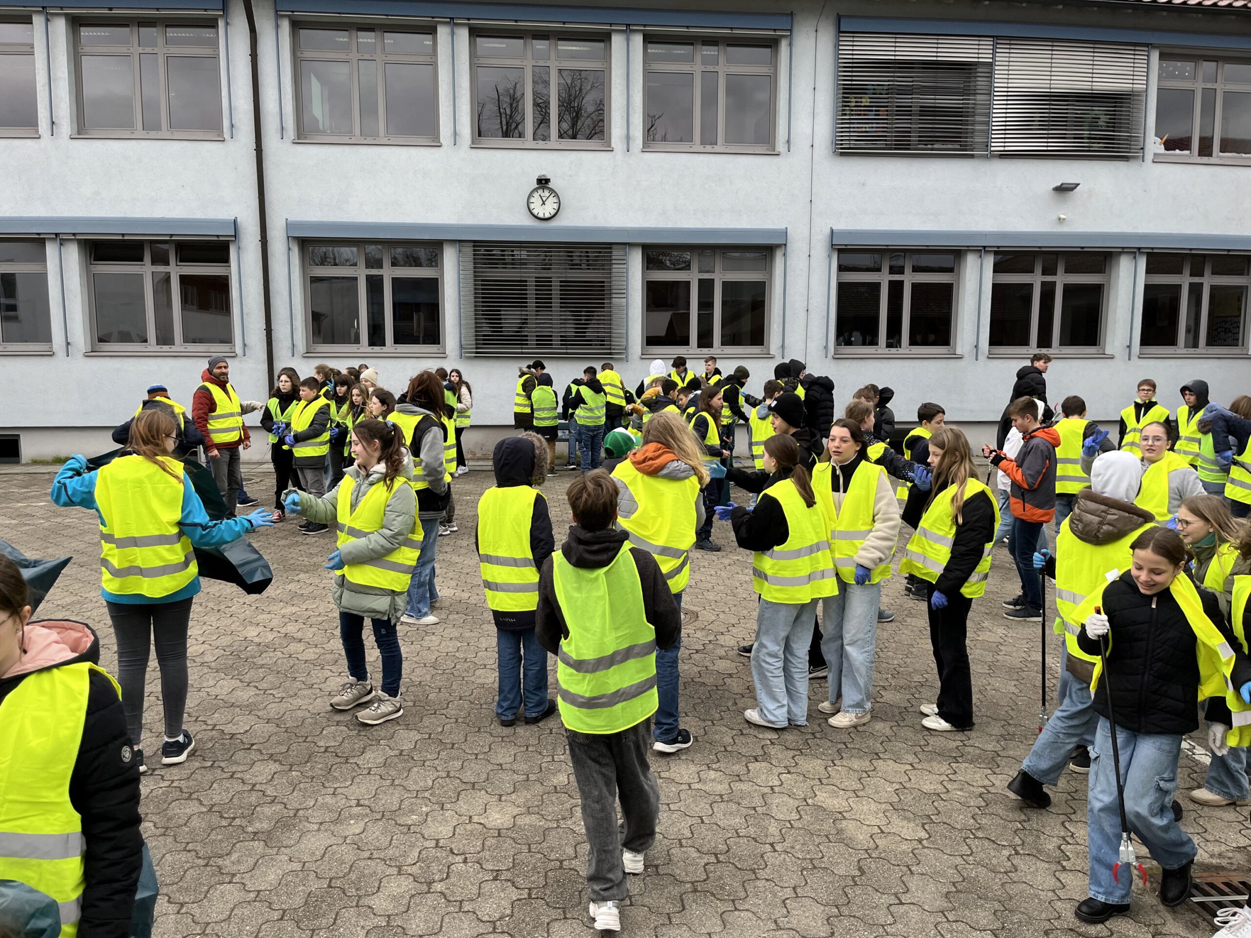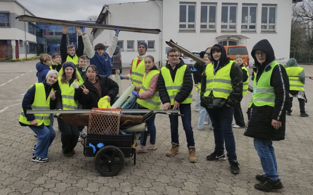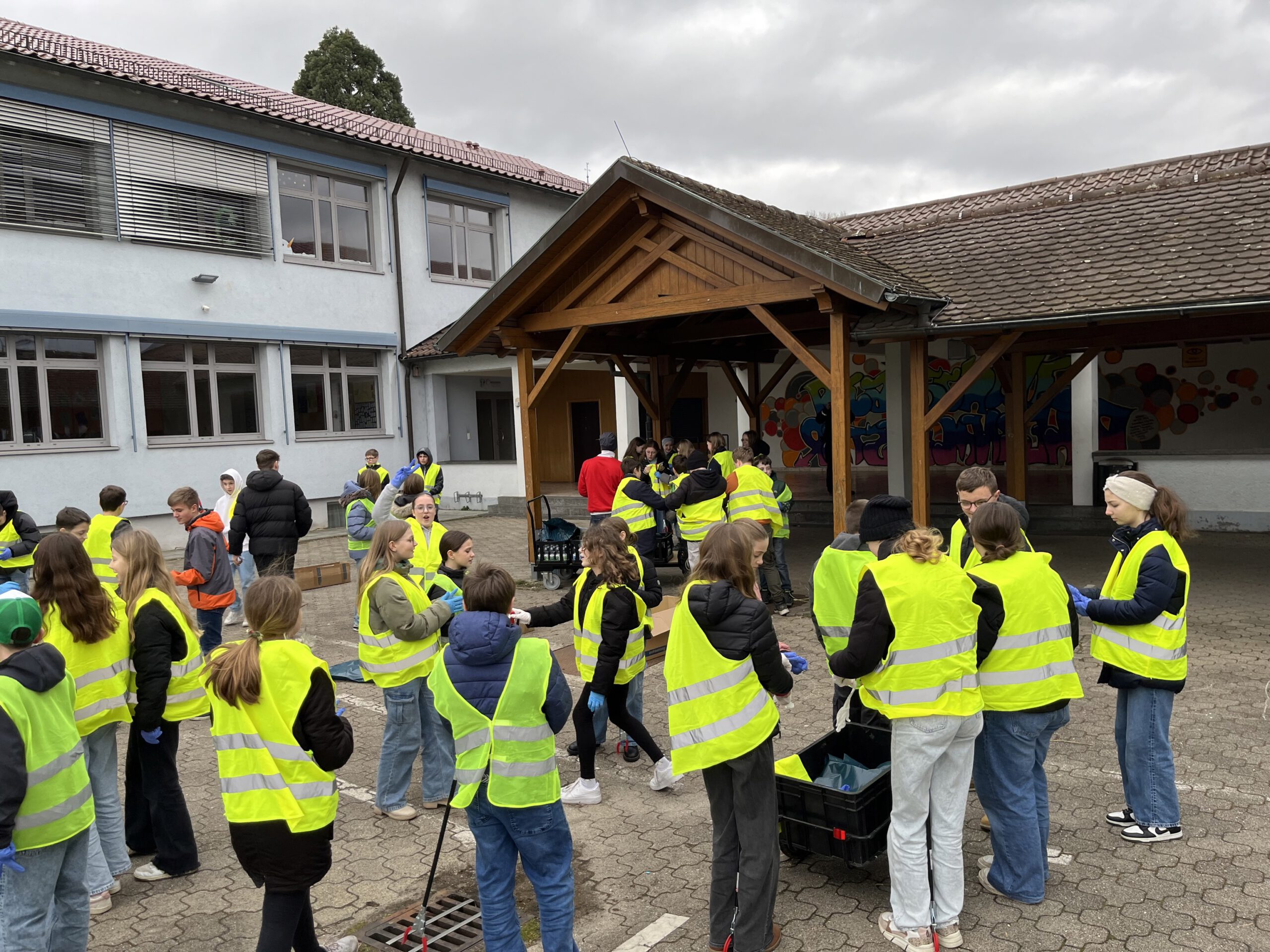 Schülerinnen und Schüler der sechsten und siebten Klassen der Realschule Rheinmünster nahmen an der heutigen Müllsammelaktion teil. Zusammen mit ihren Lehrerinnen und Lehrern räumten sie gemeinsam in der Gemeinde Rheinmünster auf.