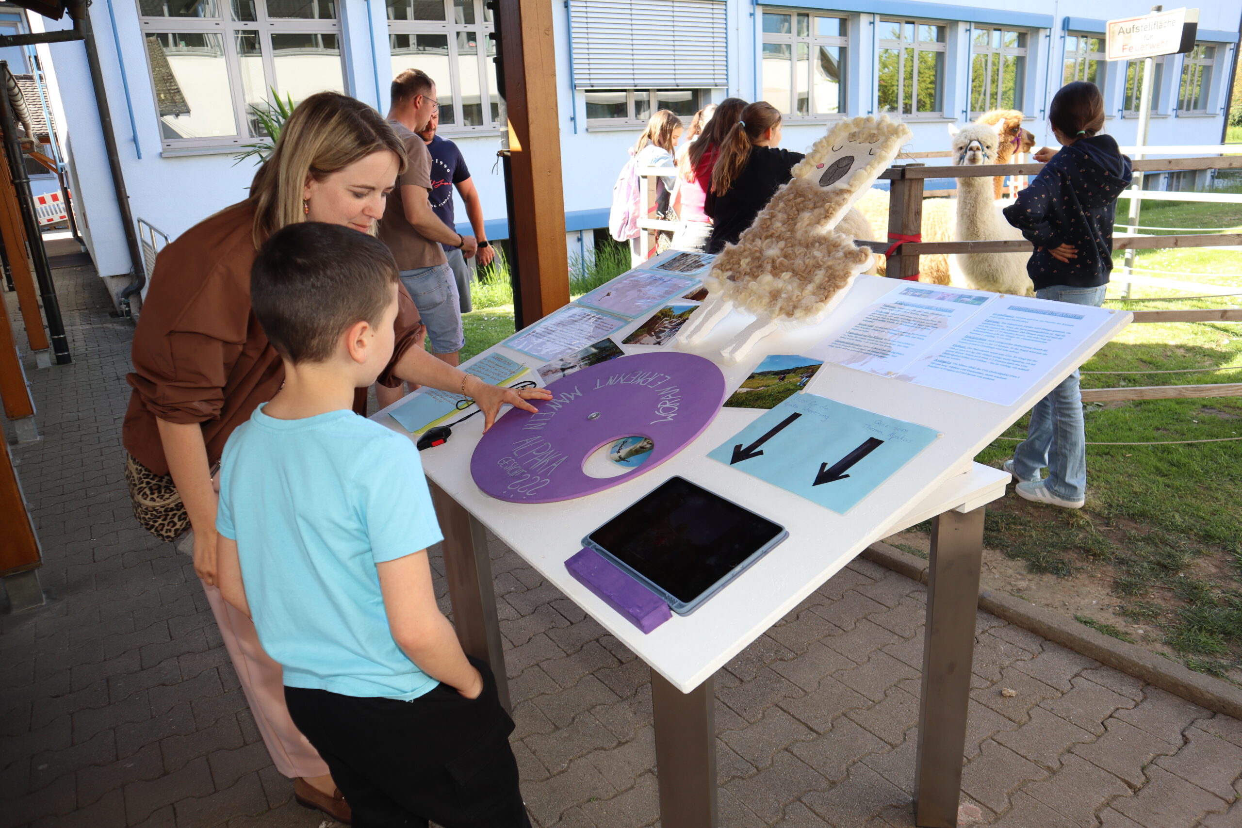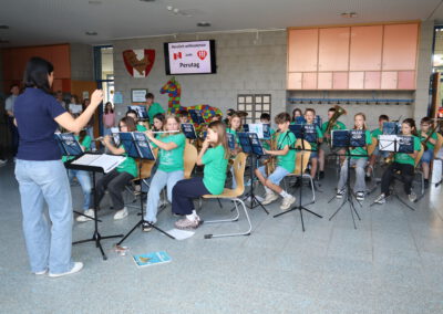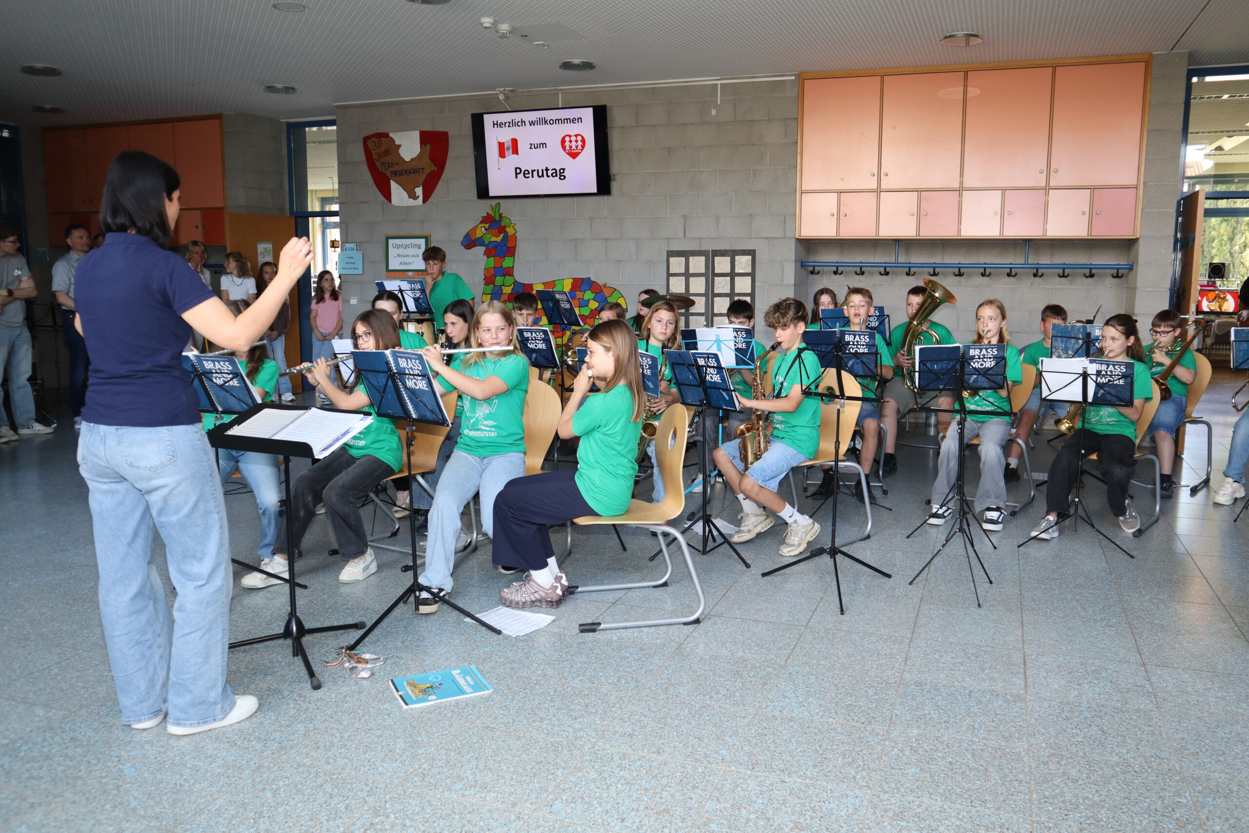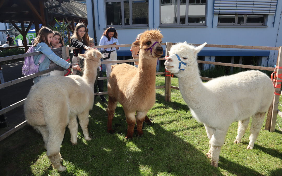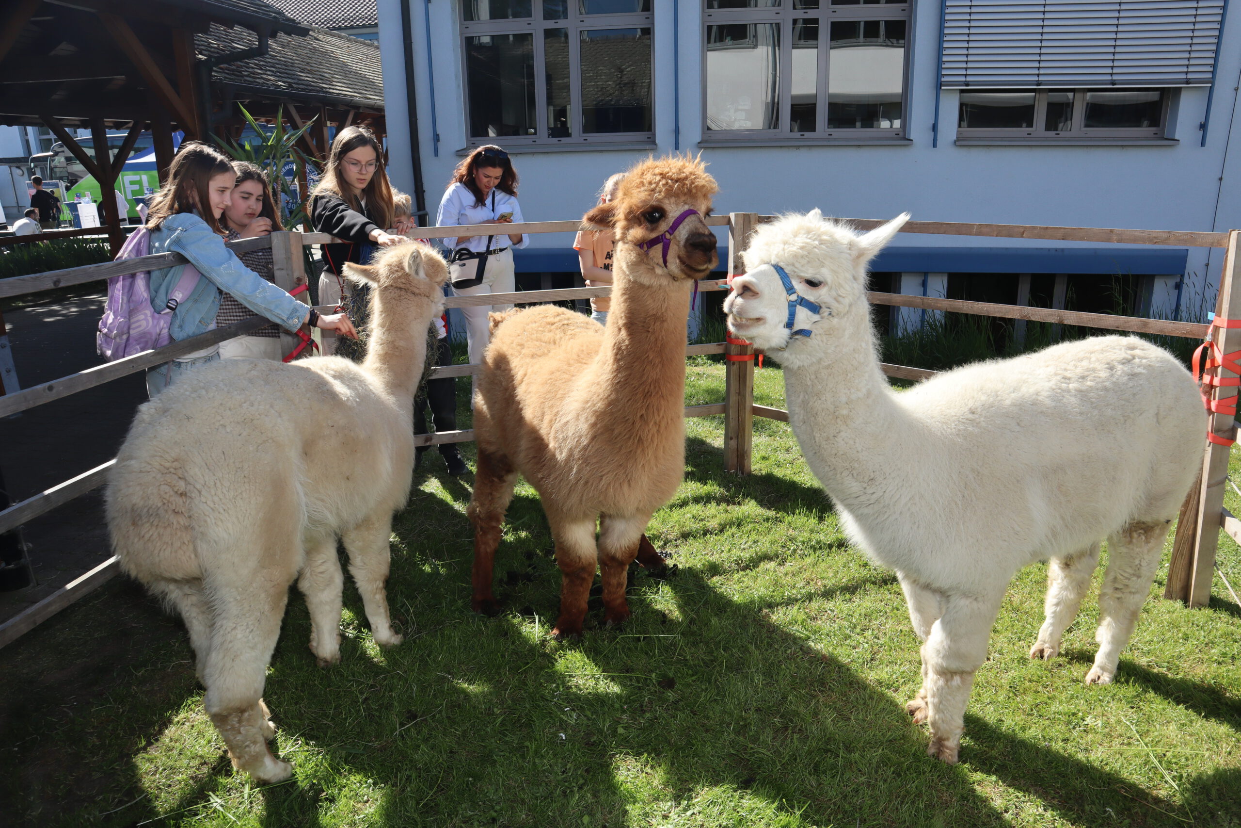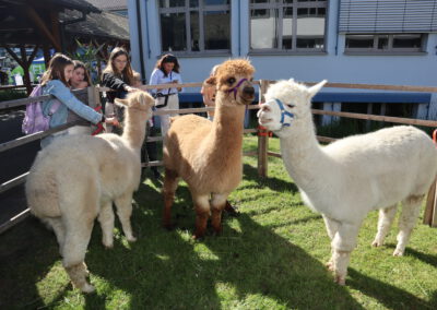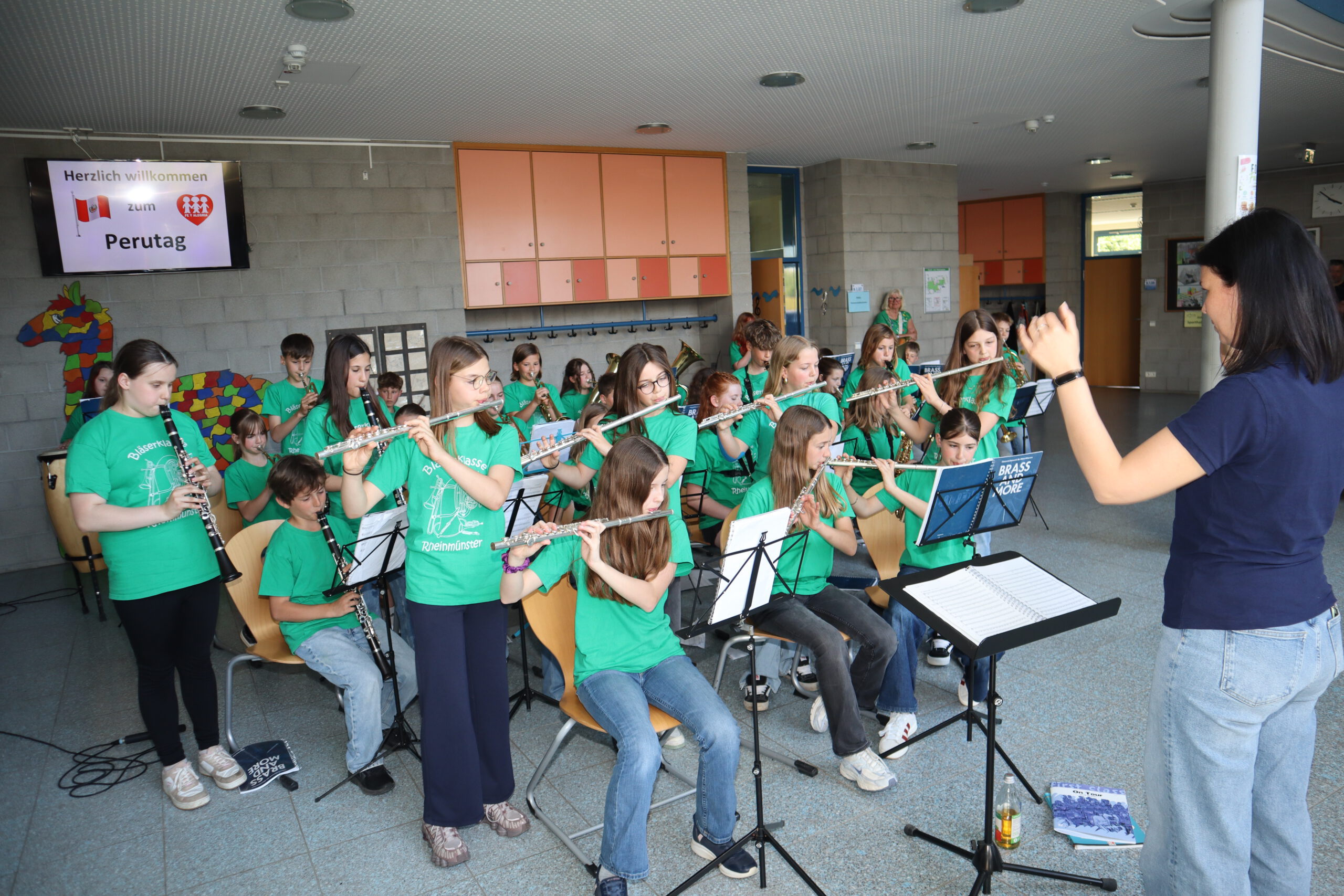 Feste Programmpunkte am Peru-Tag waren die Auftritte der beiden Bläserklassen 5b und 6b sowie des Schulorchesters. In der Sporthalle gab es zahlreiche sportliche Mitmach-Angebote und auch der Schulhof wartete mit einigen Attraktionen auf: Wieder mit dabei waren die Alpacas von KinzigtAlpaca aus Berghaupten, zusätzlich hatte die Projektgruppe Rund ums Alpaca einen Hindernislauf sowie eine interaktive Info-Station im Schulhof aufgebaut. Eine Besonderheit war außerdem in diesem Jahr der Demokratiebus der Konrad-Adenauer-Stiftung, der auf seiner Tour im Schwarzacher Schulhof Halt machte: Hier waren die großen und kleinen Besucher zum Austausch über Demokratie, unsere Werte und aktuelle politische Themen aufgerufen. Zum lockeren Plausch luden auch der Waffel -und Sektstand der SMV und des Förderkreises der Realschule ein.