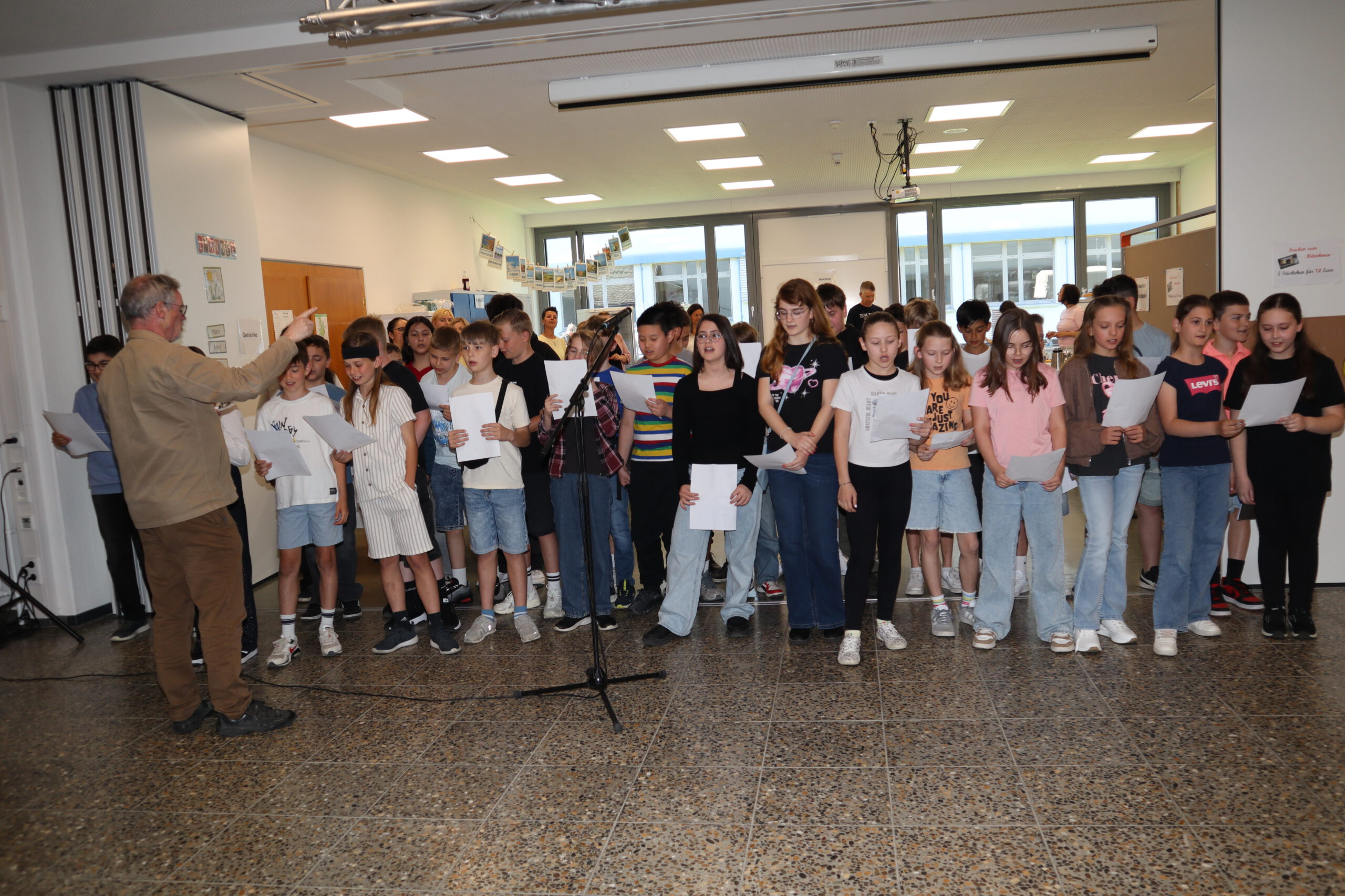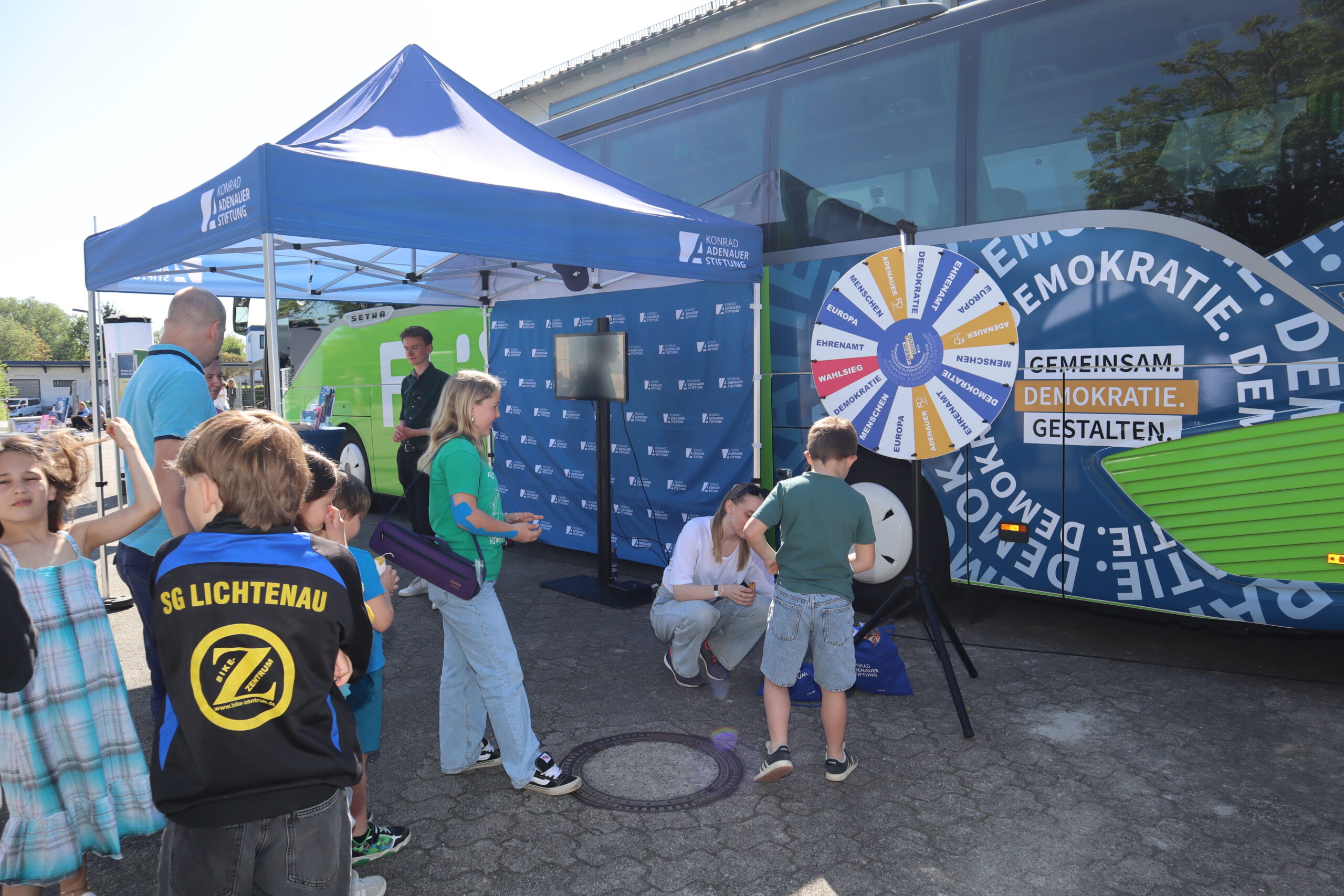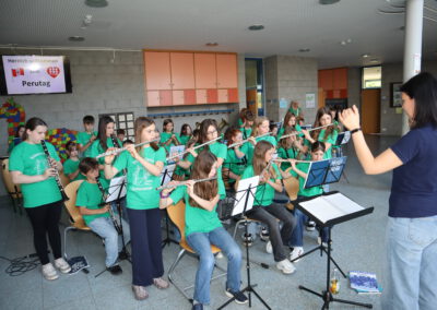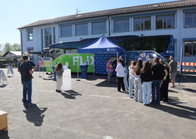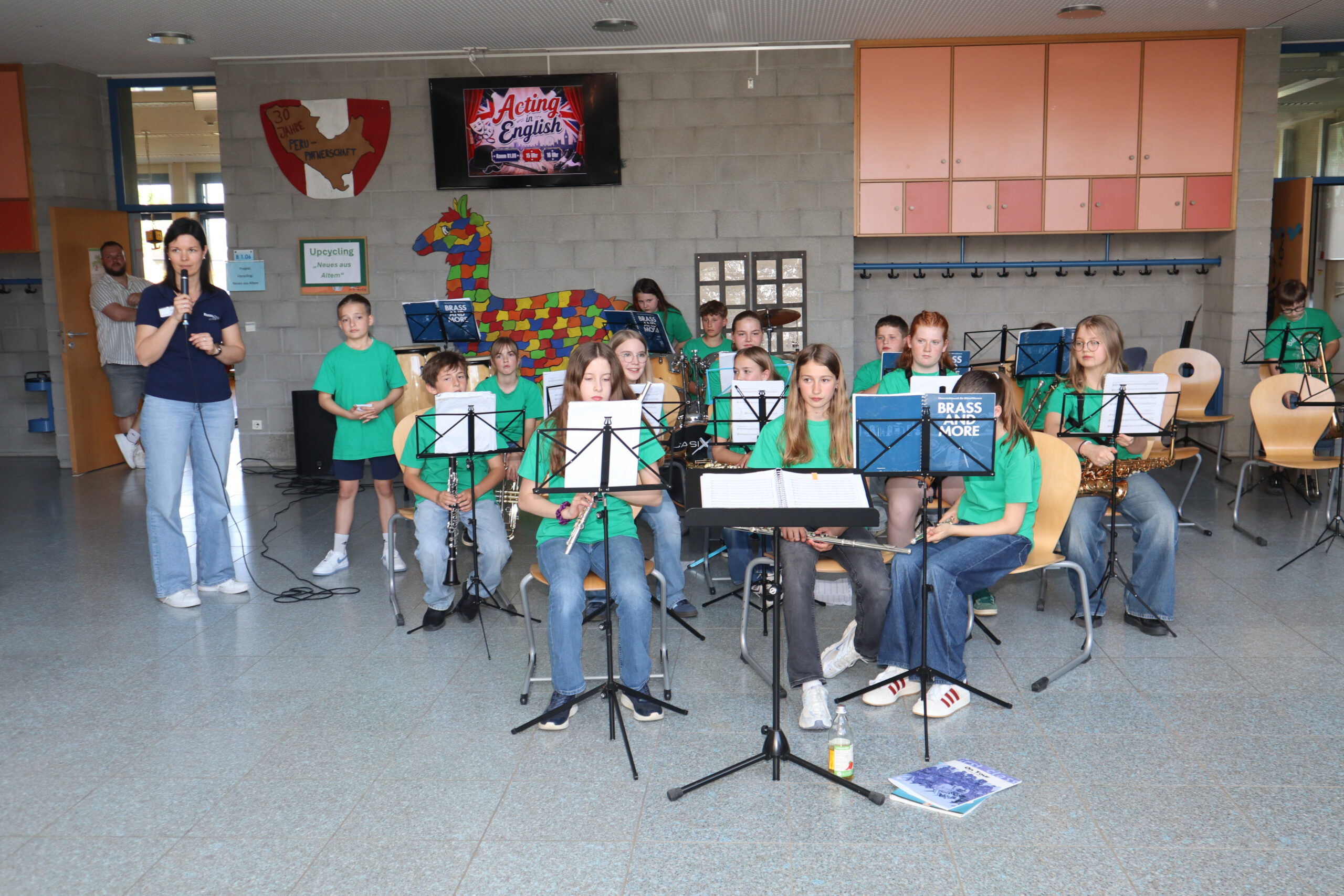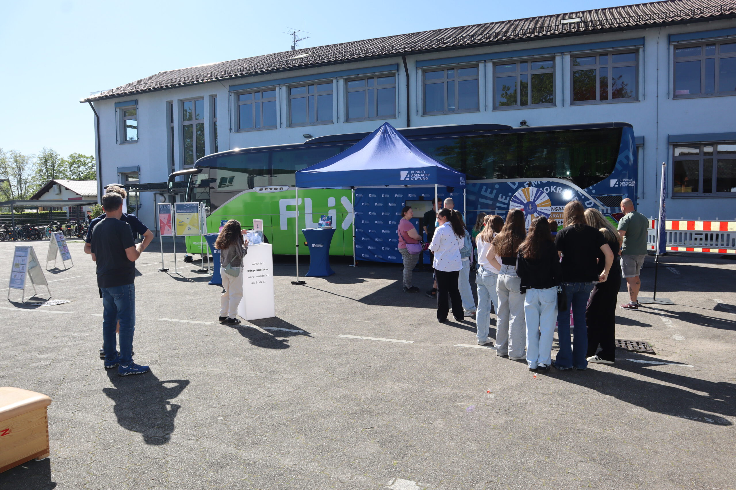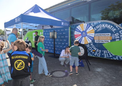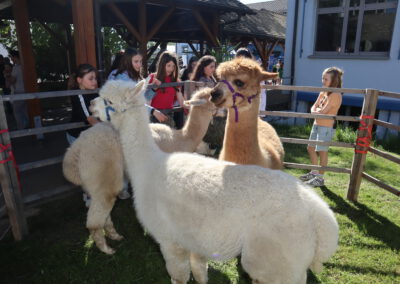Feste Programmpunkte am Peru-Tag waren die Auftritte der beiden Bläserklassen 5b und 6b sowie des Schulorchesters. In der Sporthalle gab es zahlreiche sportliche Mitmach-Angebote und auch der Schulhof wartete mit einigen Attraktionen auf: Wieder mit dabei waren die Alpacas von KinzigtAlpaca aus Berghaupten, zusätzlich hatte die Projektgruppe Rund ums Alpaca einen Hindernislauf sowie eine interaktive Info-Station im Schulhof aufgebaut. Eine Besonderheit war außerdem in diesem Jahr der Demokratiebus der Konrad-Adenauer-Stiftung, der auf seiner Tour im Schwarzacher Schulhof Halt machte: Hier waren die großen und kleinen Besucher zum Austausch über Demokratie, unsere Werte und aktuelle politische Themen aufgerufen. Zum lockeren Plausch luden auch der Waffel -und Sektstand der SMV und des Förderkreises der Realschule ein.