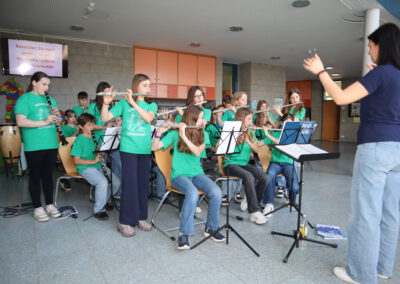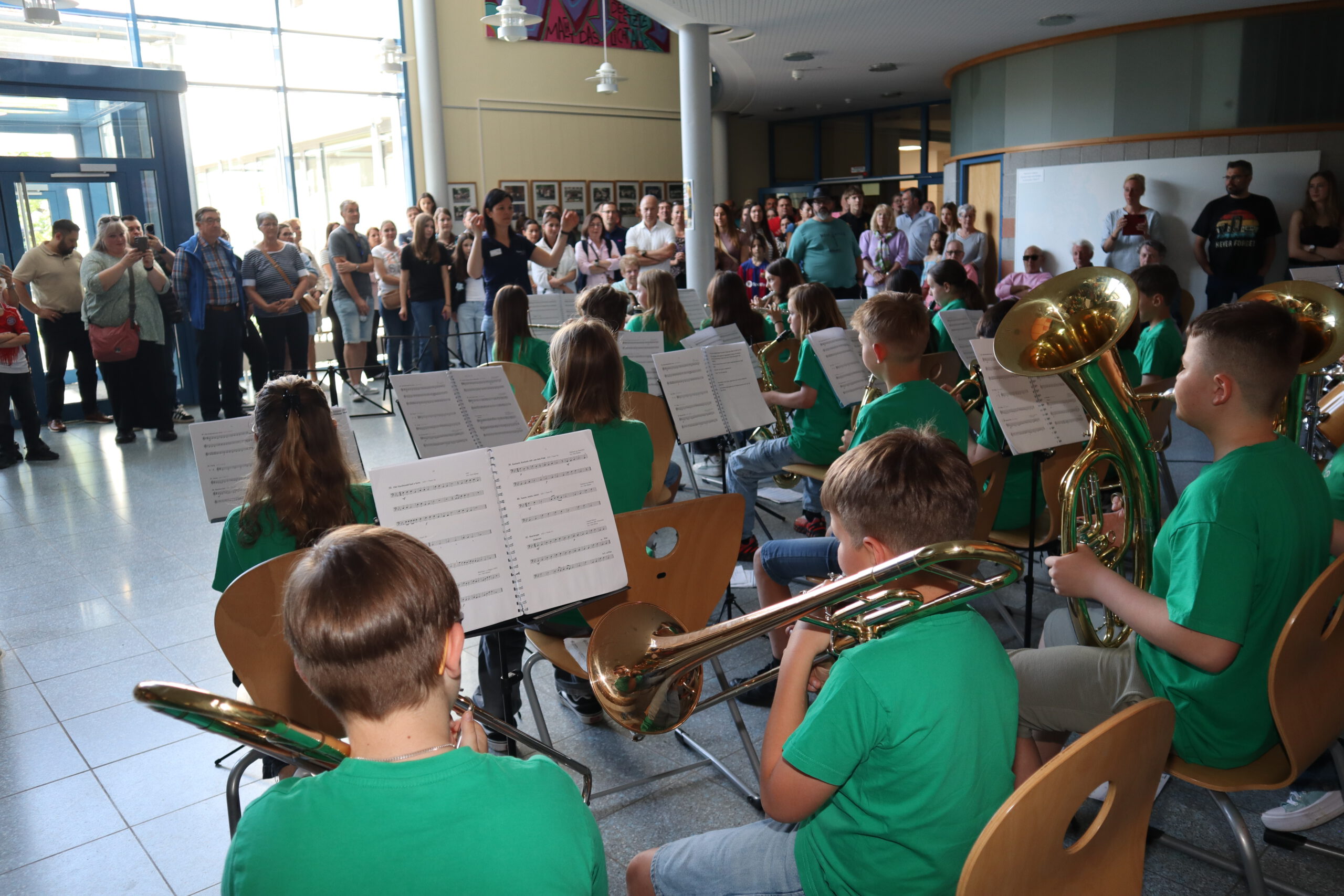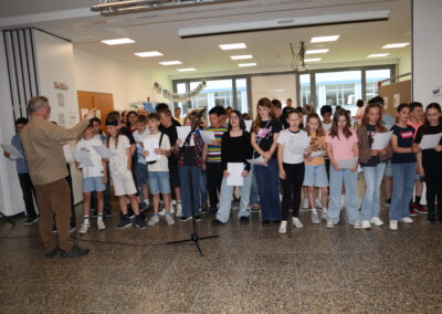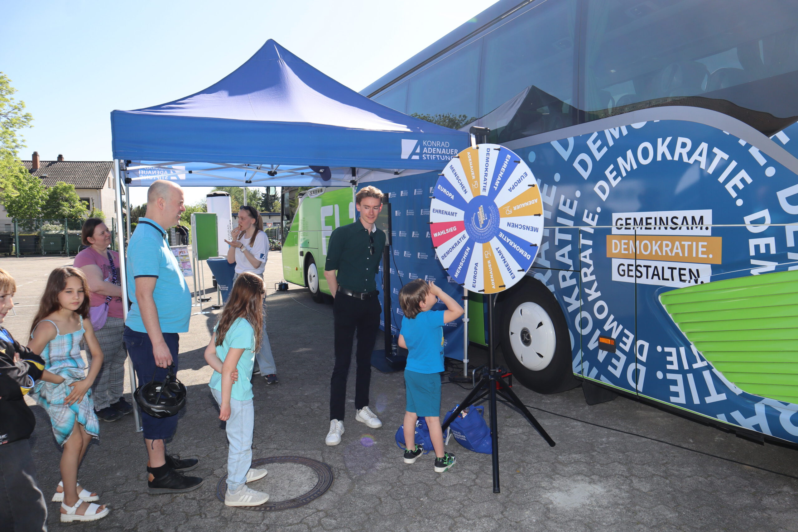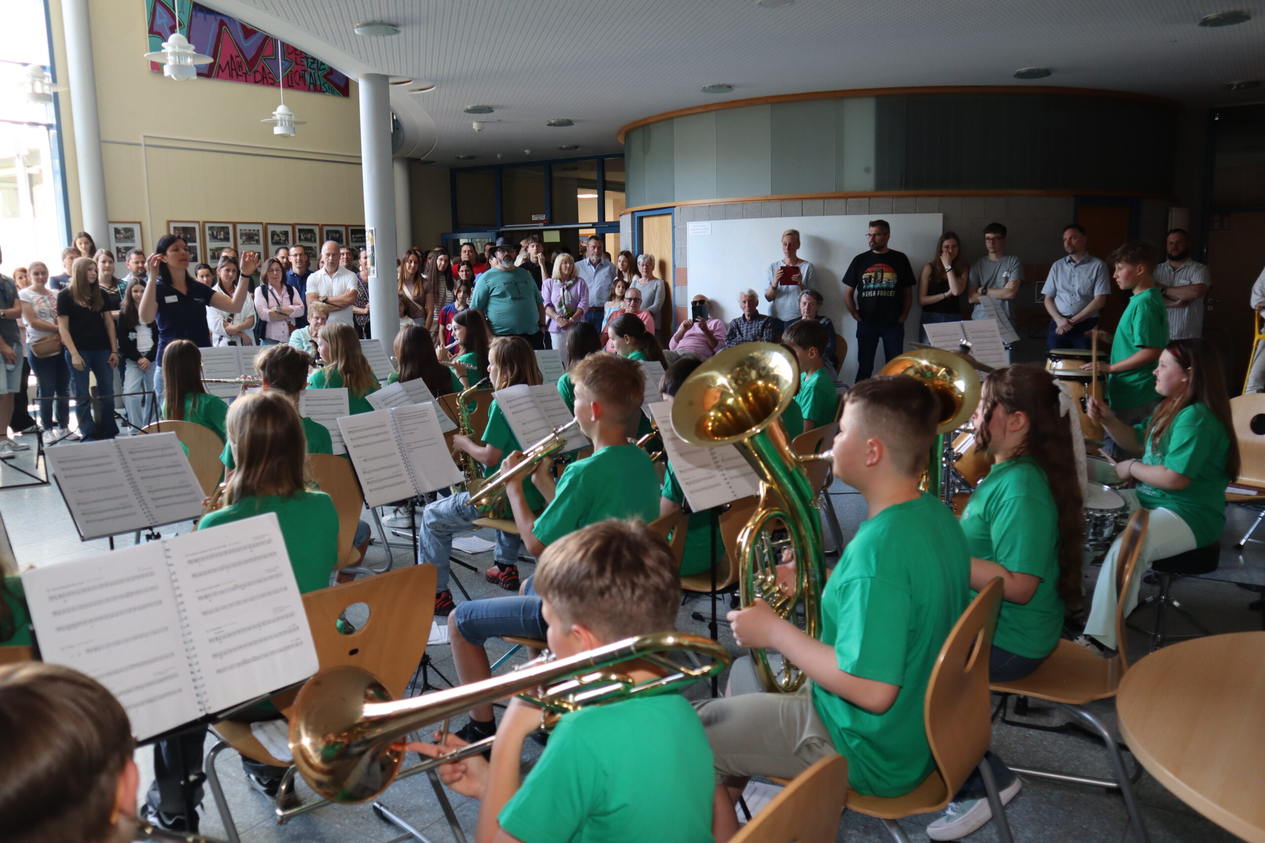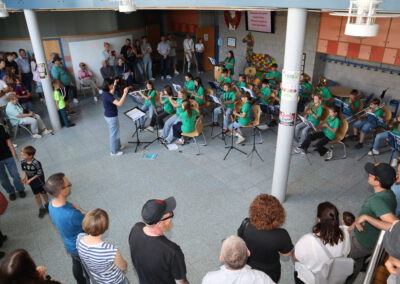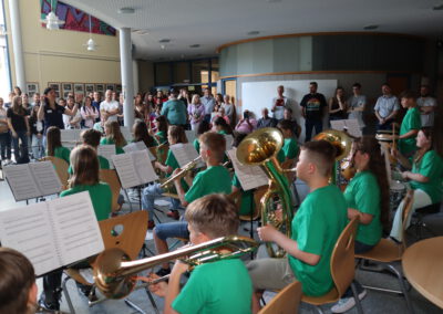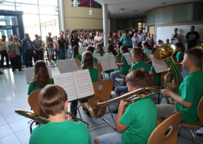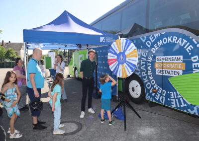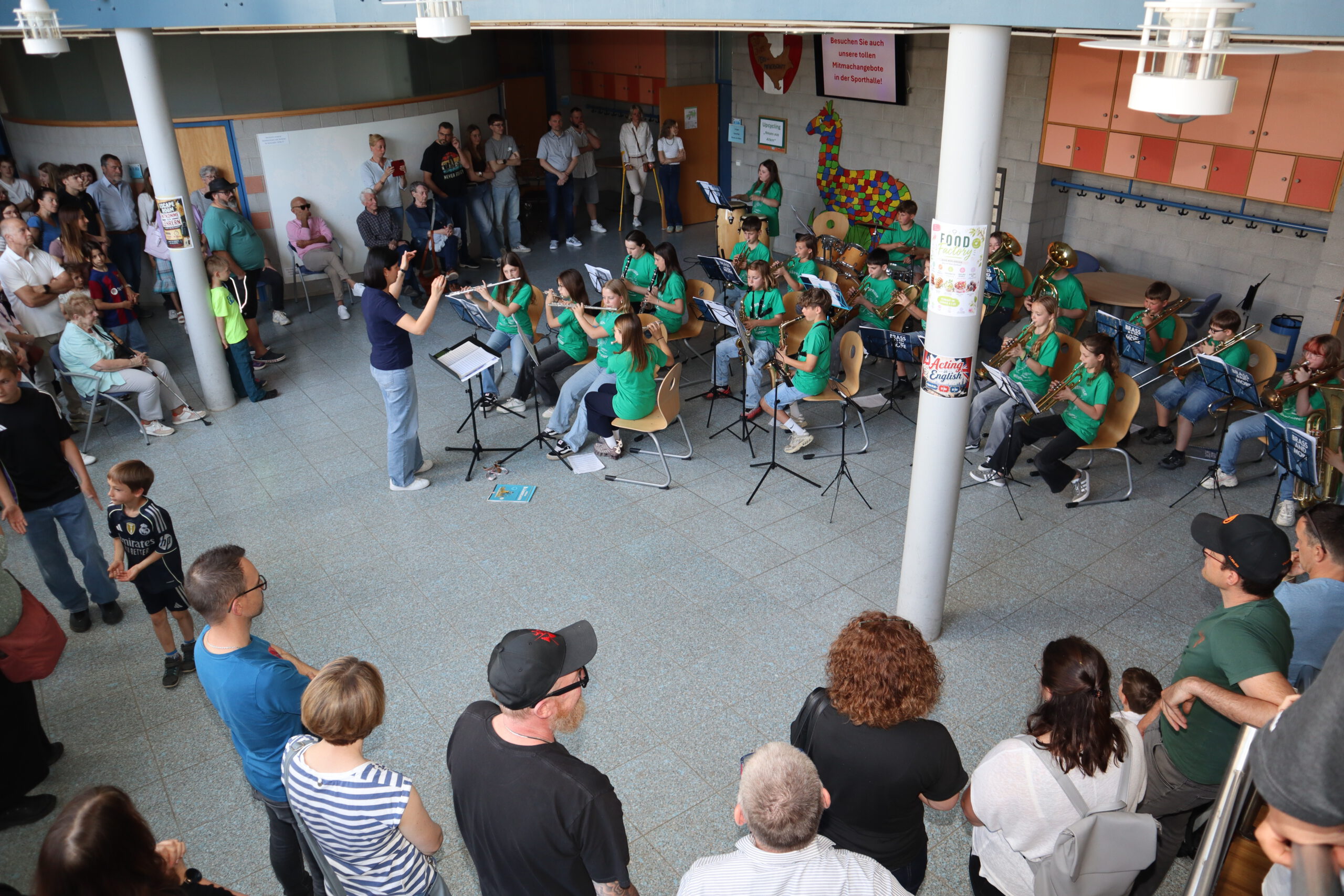 Feste Programmpunkte am Peru-Tag waren die Auftritte der beiden Bläserklassen 5b und 6b sowie des Schulorchesters. In der Sporthalle gab es zahlreiche sportliche Mitmach-Angebote und auch der Schulhof wartete mit einigen Attraktionen auf: Wieder mit dabei waren die Alpacas von KinzigtAlpaca aus Berghaupten, zusätzlich hatte die Projektgruppe Rund ums Alpaca einen Hindernislauf sowie eine interaktive Info-Station im Schulhof aufgebaut. Eine Besonderheit war außerdem in diesem Jahr der Demokratiebus der Konrad-Adenauer-Stiftung, der auf seiner Tour im Schwarzacher Schulhof Halt machte: Hier waren die großen und kleinen Besucher zum Austausch über Demokratie, unsere Werte und aktuelle politische Themen aufgerufen. Zum lockeren Plausch luden auch der Waffel -und Sektstand der SMV und des Förderkreises der Realschule ein.