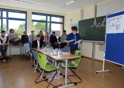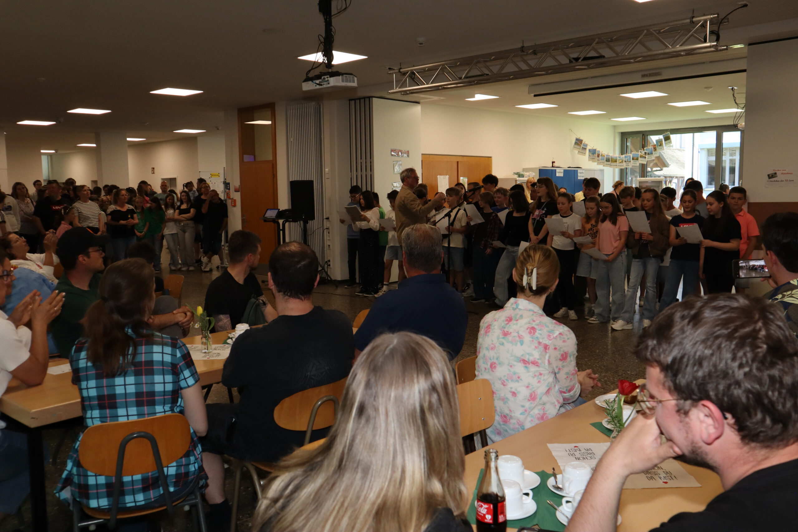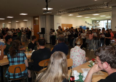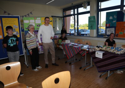 Begrüßt wurden die Besucher in der zur gemütlichen Cafeteria umgestalteten Aula durch die Klassen 5a und 5c mit Nenas „99 Luftballons“. Mit seiner Botschaft für Frieden und Verständigung setzte der Beitrag der Schülerinnen und Schüler einen passenden Akzent für den Peru-Tag, der ganz im Zeichen von internationaler Zusammenarbeit und gegenseitiger Solidarität stand.