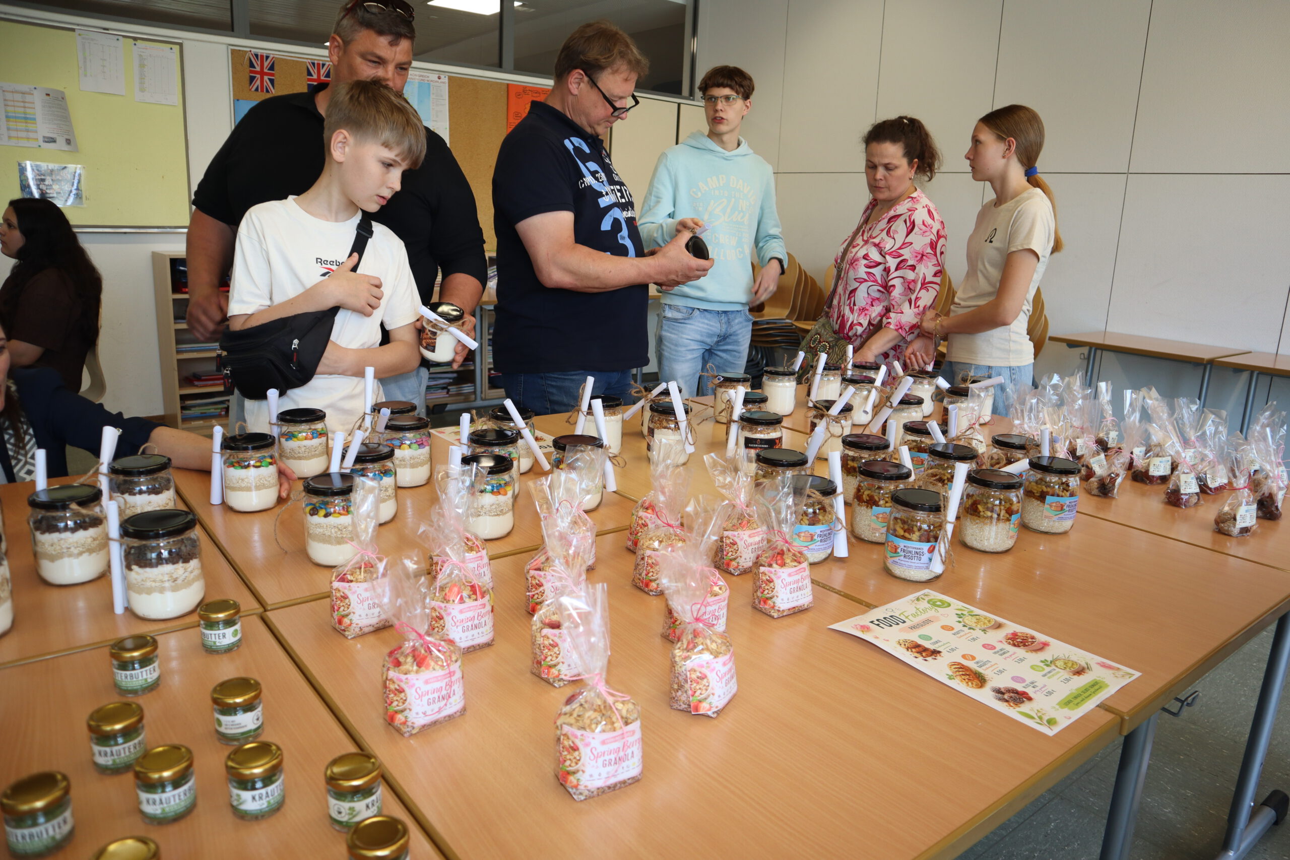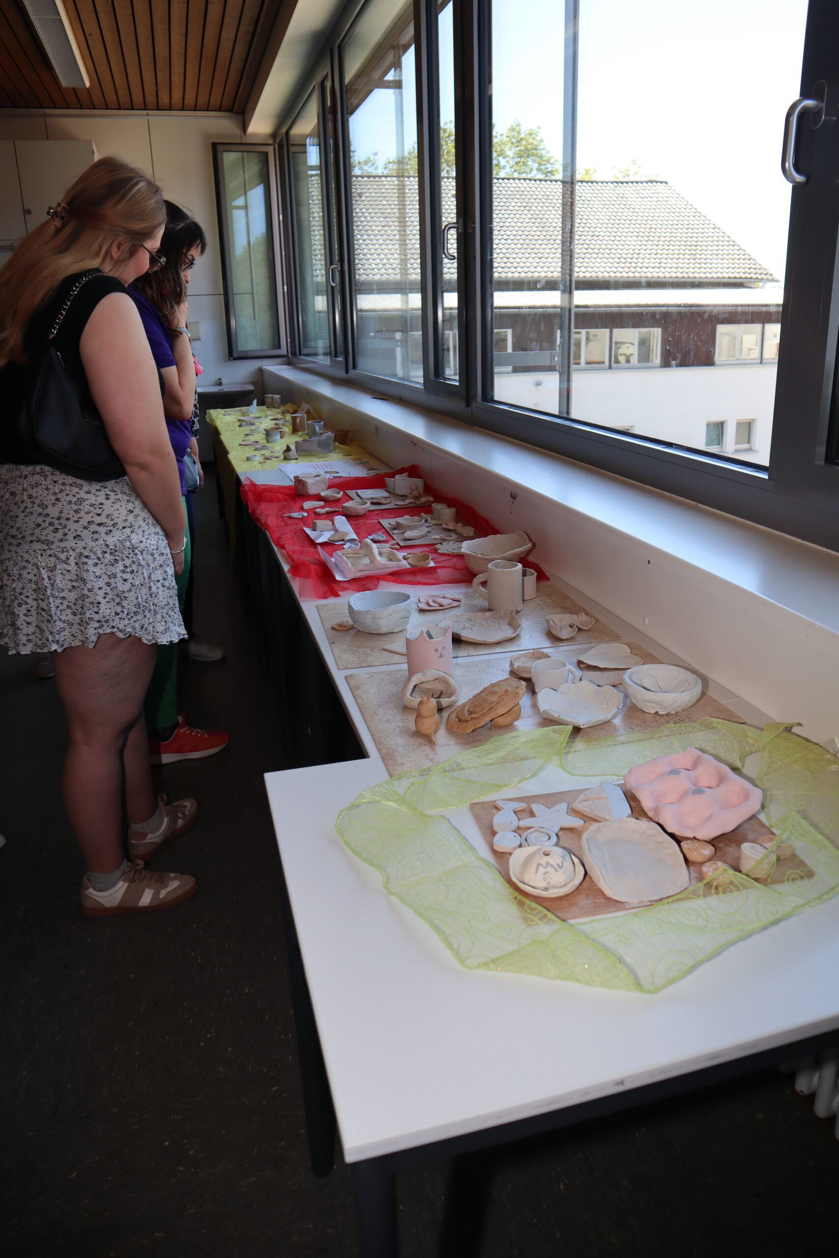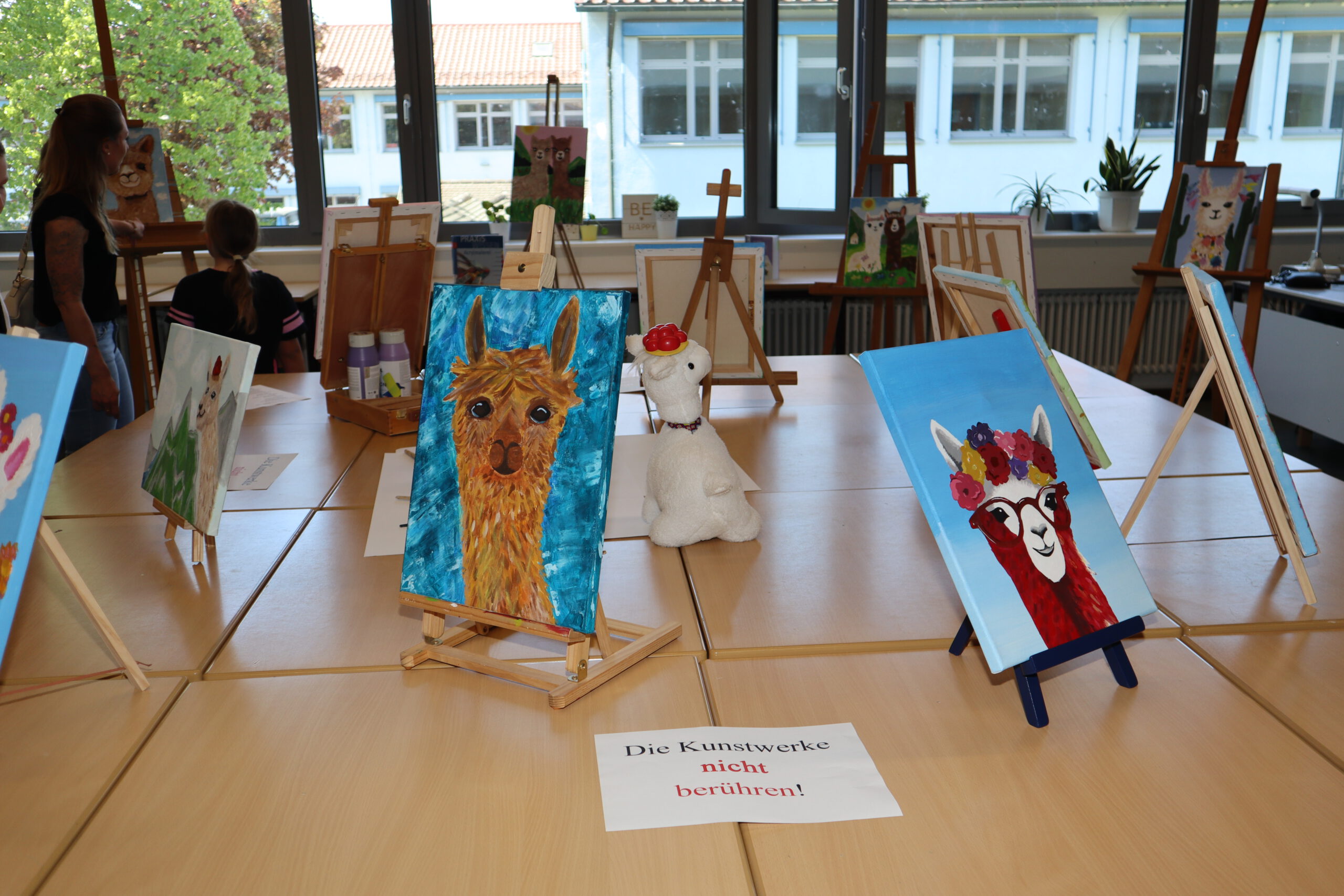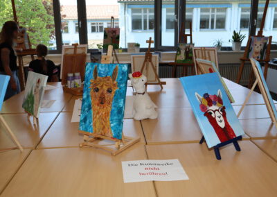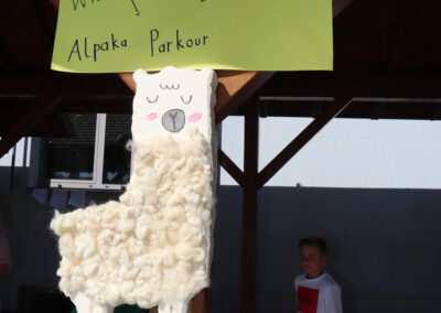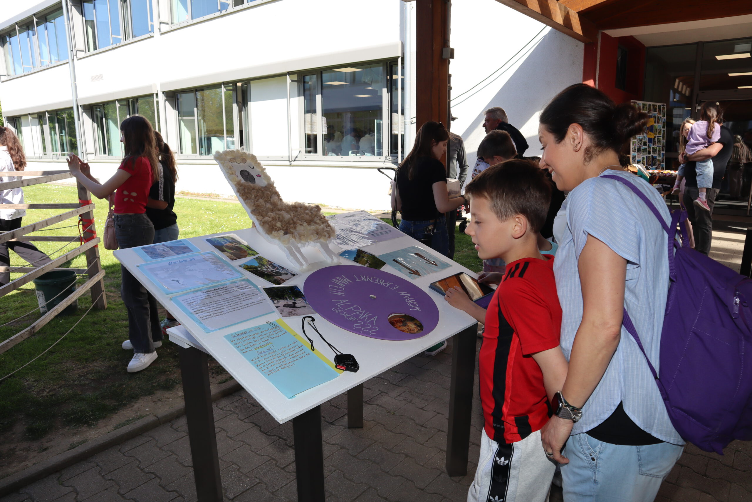 Das Angebot war vielfältig und reichte von sportlichen Aktivitäten wie Rückschlagspielen, Trendsportarten und Klettern bis hin zu kreativen und handwerklichen Projekten wie Upcycling, und Acrylmalerei, wo das bekannteste Nutztier der Anden-Republik Peru, das Lama, gemalt wurde. Auch naturwissenschaftliche Themen waren vertreten, beispielsweise bei den Projekten Den Bienen auf der Spur, Der Natur auf der Spur oder dem Mikroskopischen Praktikum. Technikbegeisterte Schülerinnen und Schüler konnten sich bei Robotik in Aktion ausprobieren. Ganz neu in diesem Jahr waren die Projekte Töpfern und English Acting: „Ich fand es lustig und inspirierend, einmal in eine andere Rolle schlüpfen zu können – und so viel auf Englisch zu sprechen“, berichtet Fünftklässlerin Laura über ihre Erfahrung im Schauspiel-Projekt. Ein eigenes Bild vom schauspielerischen Talent der jungen Darsteller konnten sich die Besucher dann am Peru-Tag machen, wo unter anderem der bekannte TV-Sketch Dinner for One aufgeführt wurde und viel Applaus erntete. Beim Stand der Projektgruppe Food-Factory konnte man selbstgemachte Cookie-Backmischungen und Granolas erwerben. Für große Begeisterung sorgten die ebenfalls erstmals angebotenen Projekte Tauchen und Escape Room. Letztes konnte so viele Anmeldungen verzeichnen, dass es gleich zweimal angeboten wurde. „Es hat viel Spaß gemacht, sich in Kleingruppen
