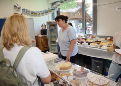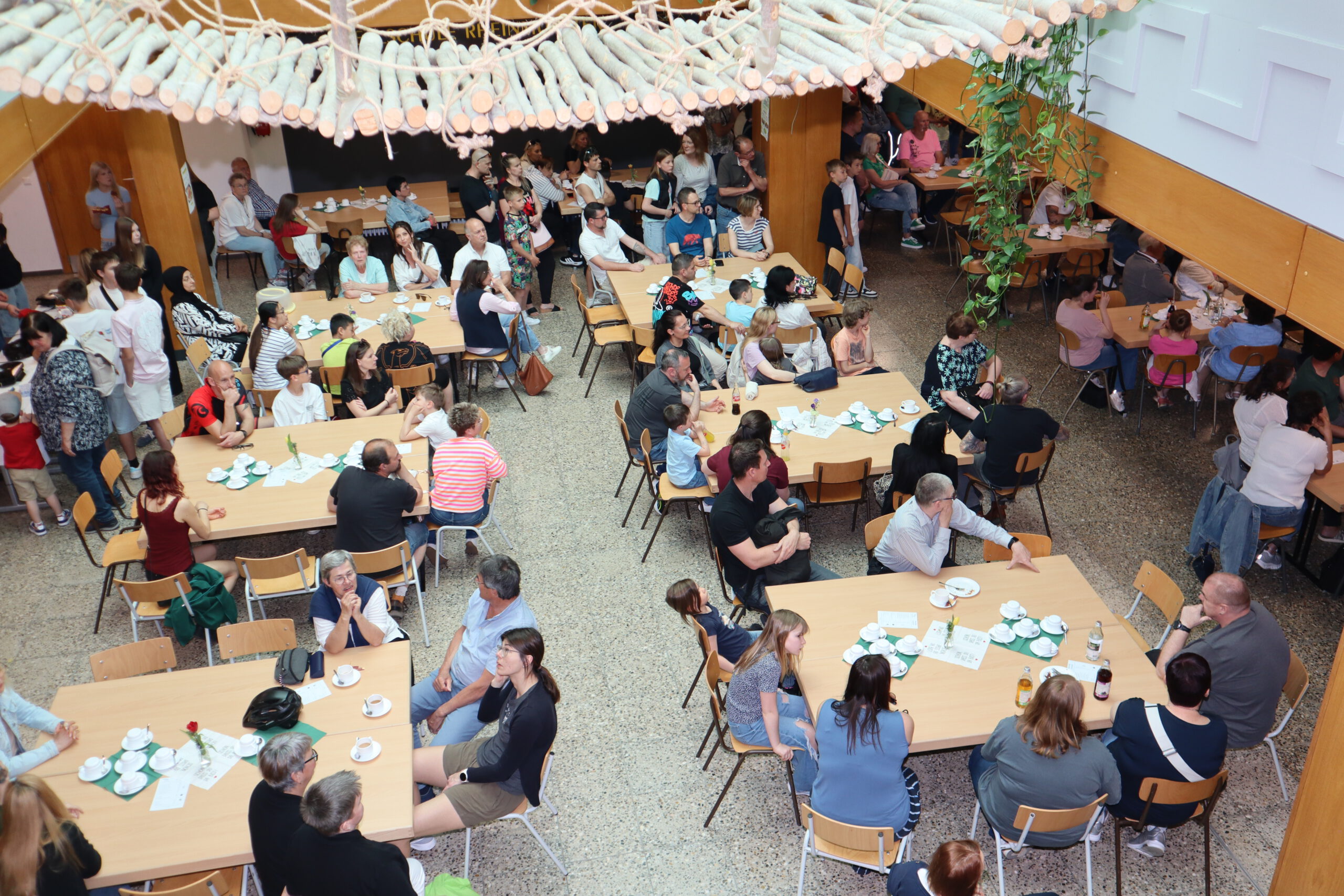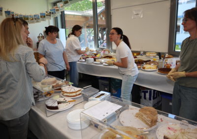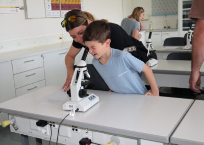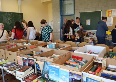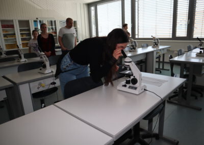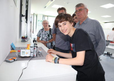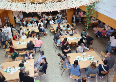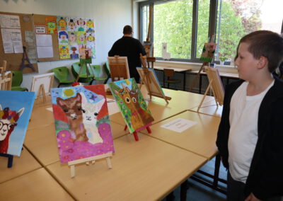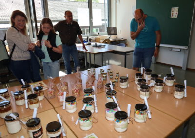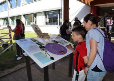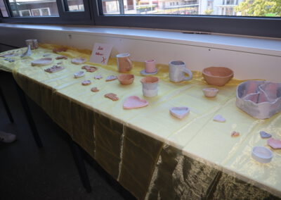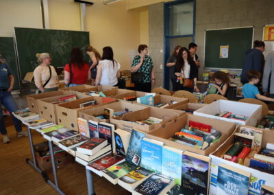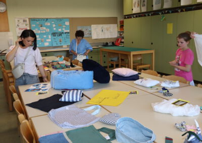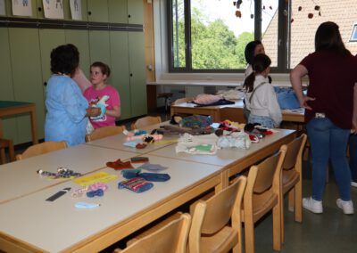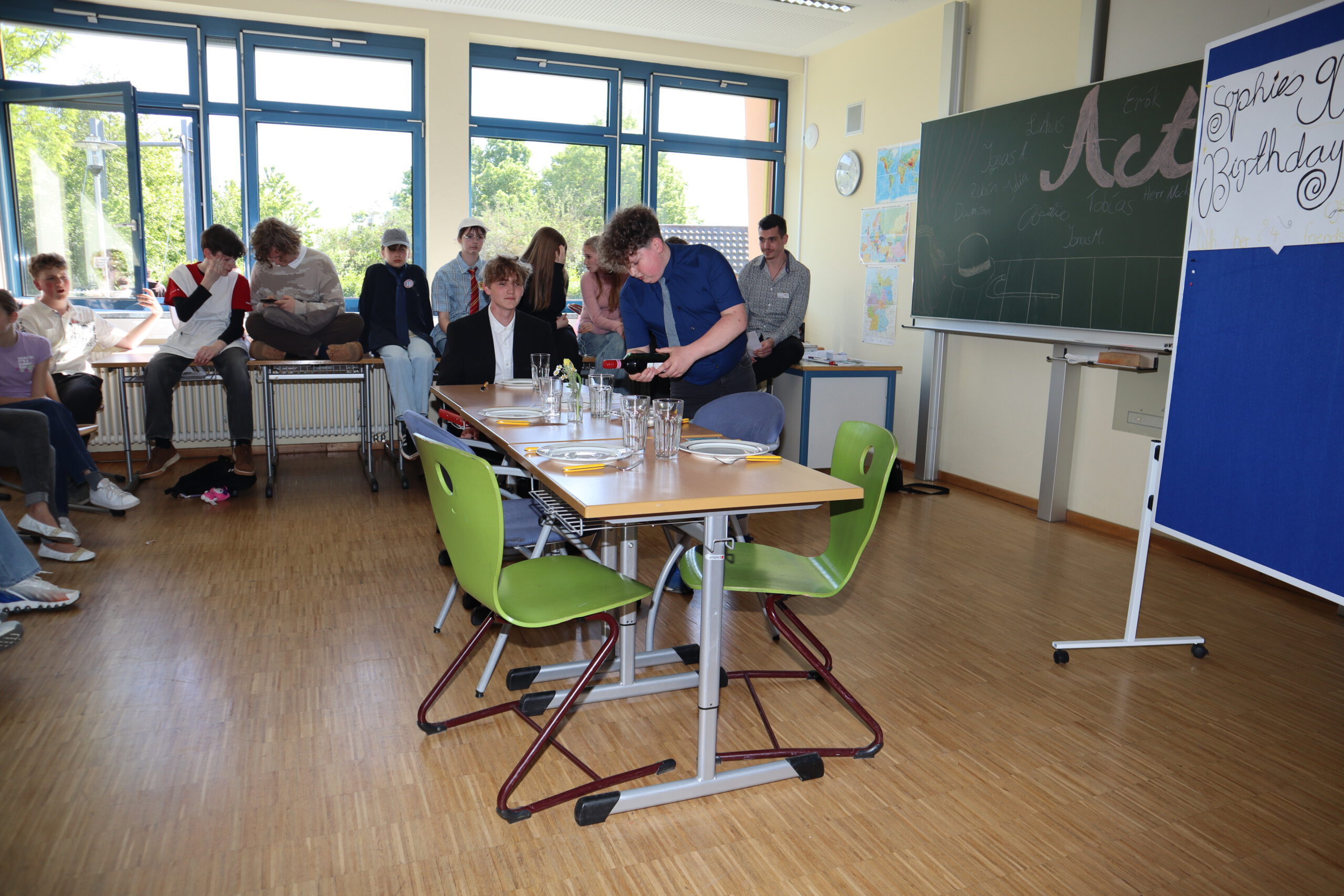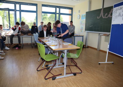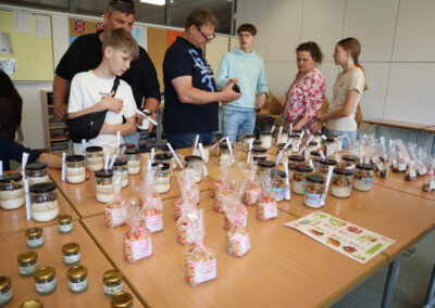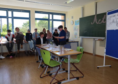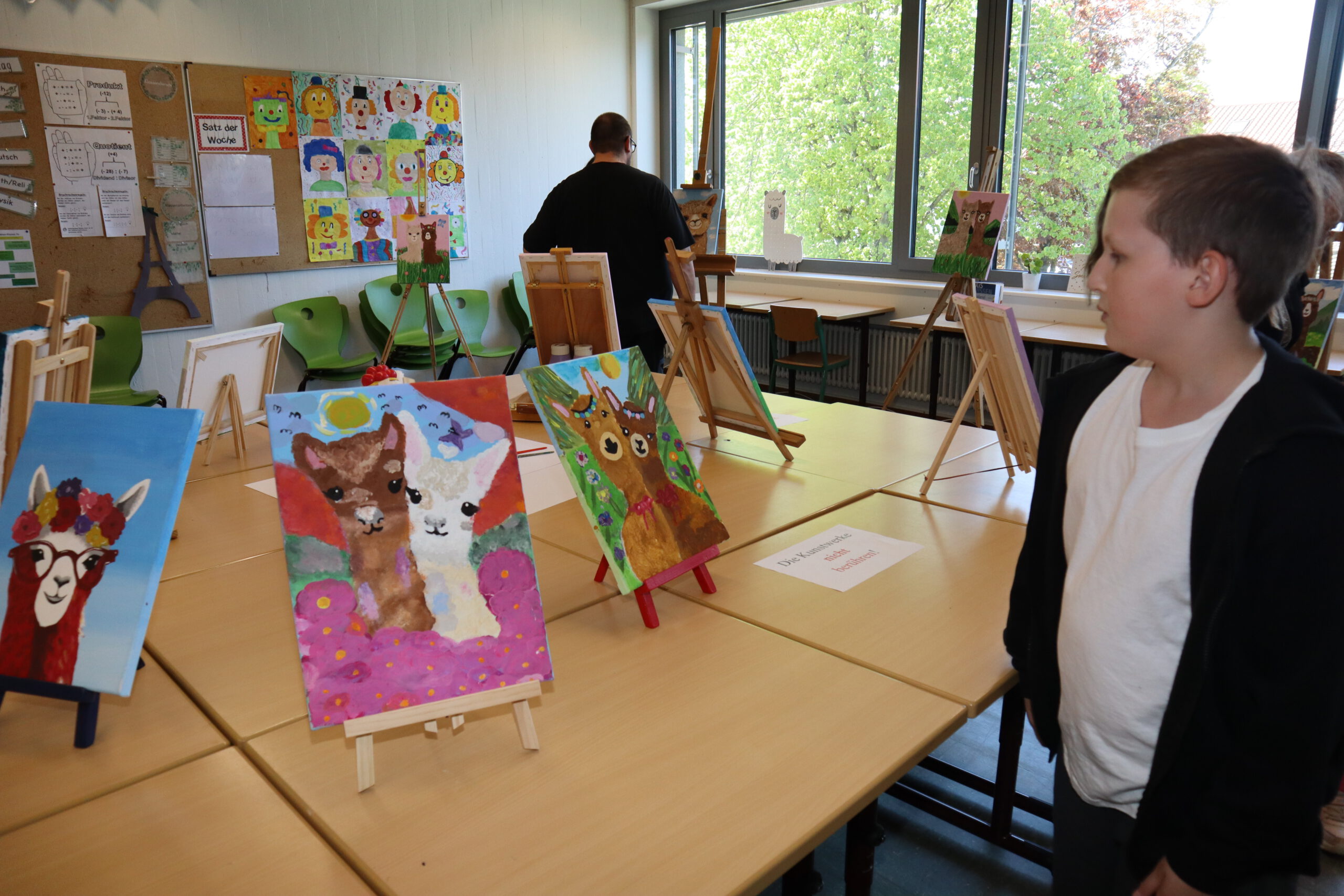 Das Angebot war vielfältig und reichte von sportlichen Aktivitäten wie Rückschlagspielen, Trendsportarten und Klettern bis hin zu kreativen und handwerklichen Projekten wie Upcycling, und Acrylmalerei, wo das bekannteste Nutztier der Anden-Republik Peru, das Lama, gemalt wurde. Auch naturwissenschaftliche Themen waren vertreten, beispielsweise bei den Projekten Den Bienen auf der Spur, Der Natur auf der Spur oder dem Mikroskopischen Praktikum. Technikbegeisterte Schülerinnen und Schüler konnten sich bei Robotik in Aktion ausprobieren. Ganz neu in diesem Jahr waren die Projekte Töpfern und English Acting: „Ich fand es lustig und inspirierend, einmal in eine andere Rolle schlüpfen zu können – und so viel auf Englisch zu sprechen“, berichtet Fünftklässlerin Laura über ihre Erfahrung im Schauspiel-Projekt. Ein eigenes Bild vom schauspielerischen Talent der jungen Darsteller konnten sich die Besucher dann am Peru-Tag machen, wo unter anderem der bekannte TV-Sketch Dinner for One aufgeführt wurde und viel Applaus erntete. Beim Stand der Projektgruppe Food-Factory konnte man selbstgemachte Cookie-Backmischungen und Granolas erwerben. Für große Begeisterung sorgten die ebenfalls erstmals angebotenen Projekte Tauchen und Escape Room. Letztes konnte so viele Anmeldungen verzeichnen, dass es gleich zweimal angeboten wurde. „Es hat viel Spaß gemacht, sich in Kleingruppen
