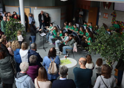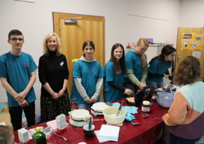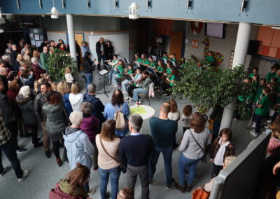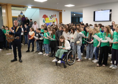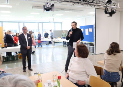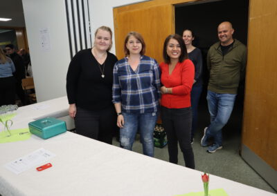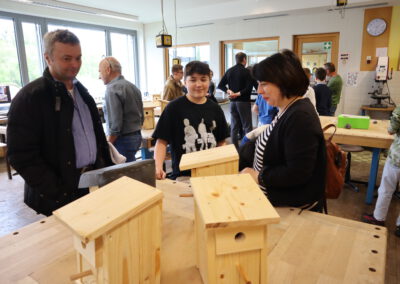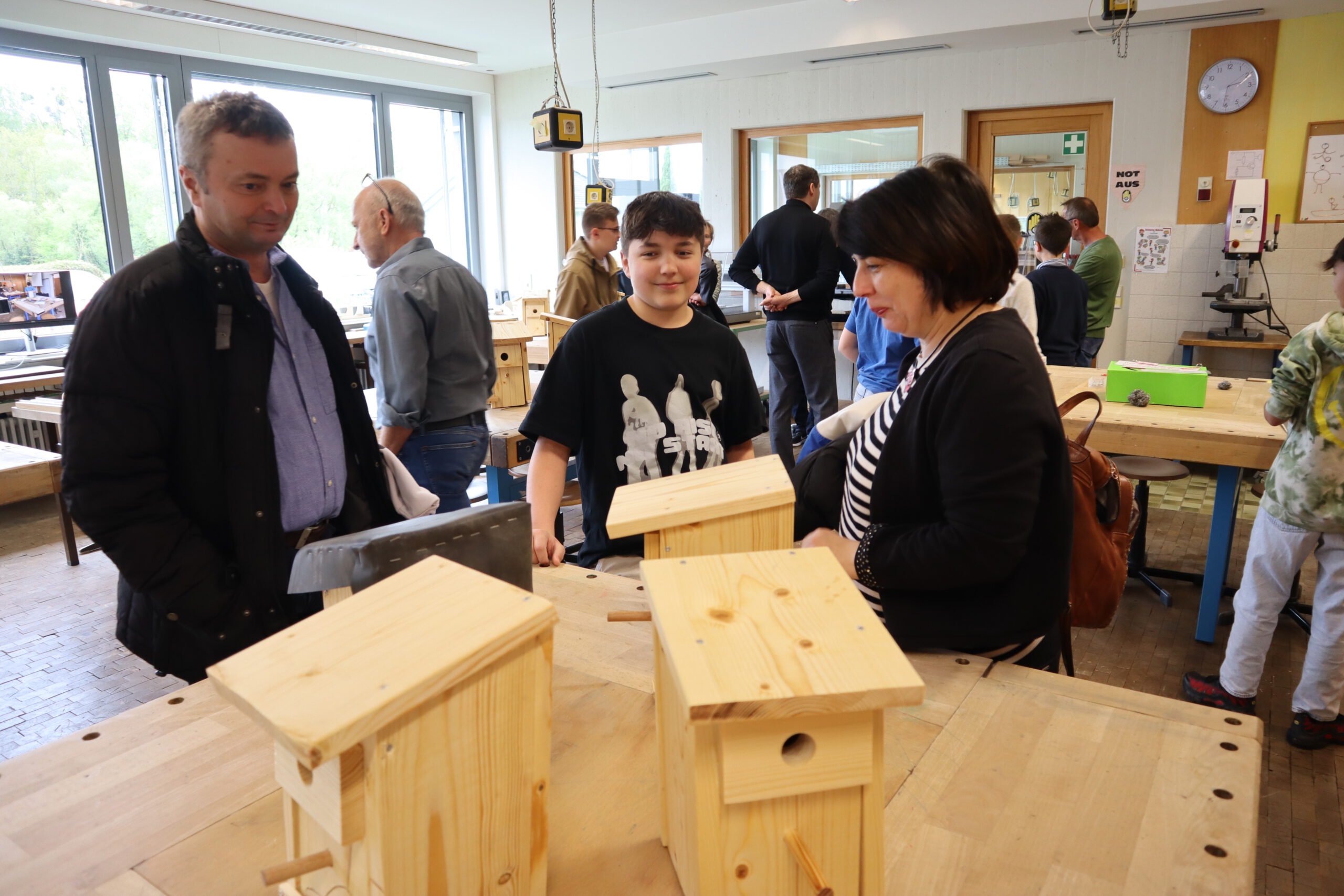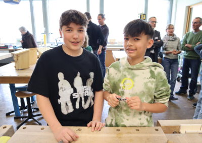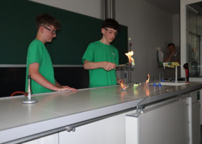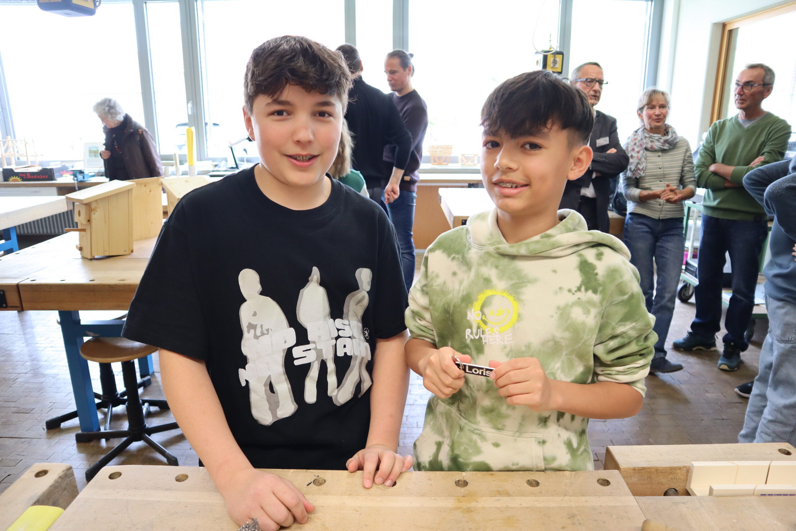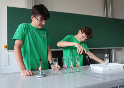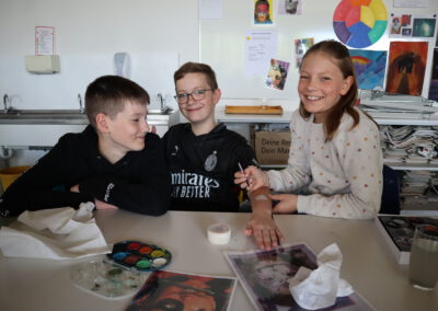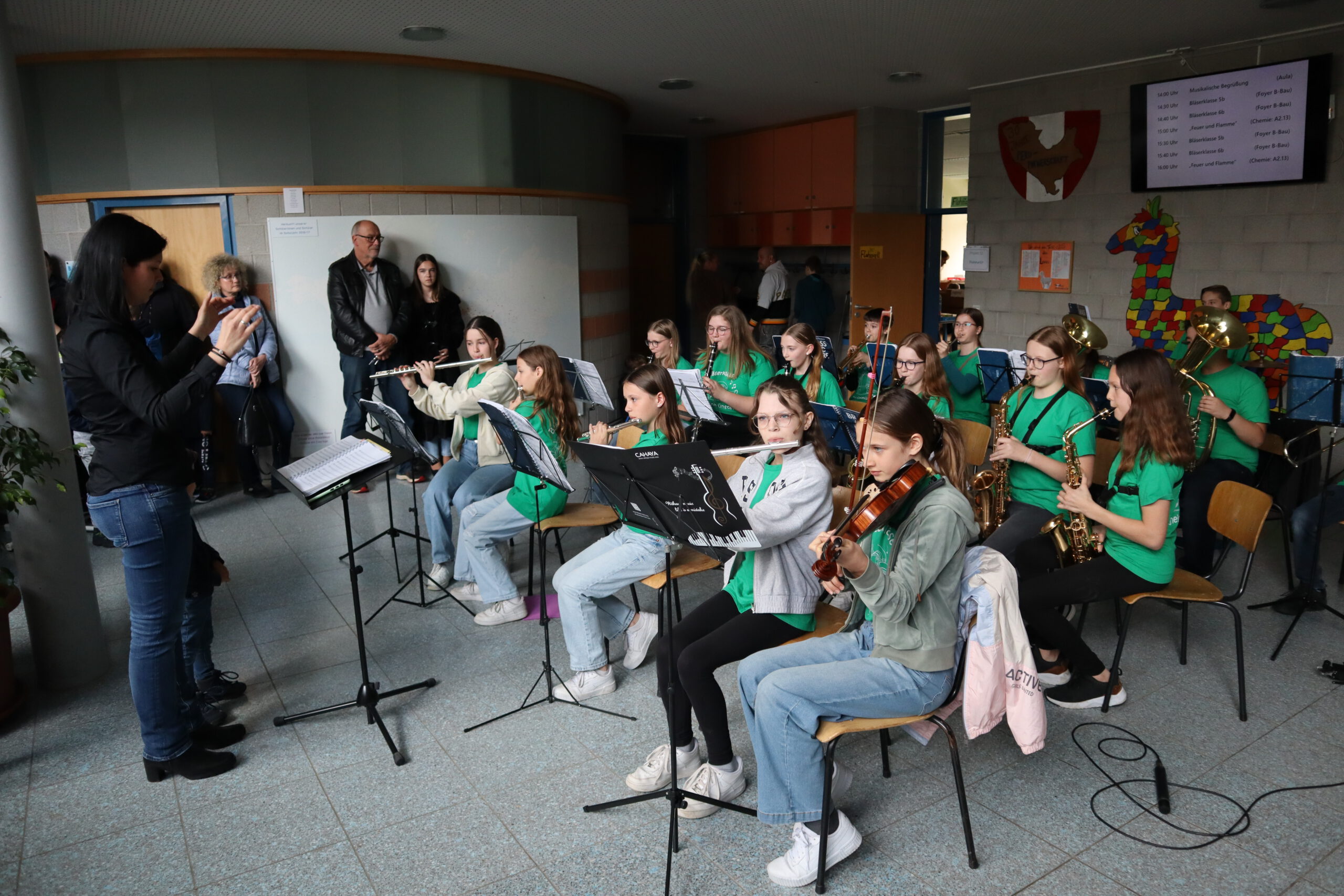 Im ganzen Schulhaus konnte man die Ergebnisse der von Mittwoch bis Freitag vorausgegangenen Projekttage betrachten, begreifen, käuflich erwerben oder auch gleich verzehren: Neben dem riesigen Kuchenbuffet des Elternbeirates in der Aula gab es Canapés, Französisches Sirop à l’eau oder auch Waffeln der SMV. Im Chemiesaal hatte eine Projektgruppe eine Vorführung chemischer Experimente vorbereitet, die vom Siebtklässler Erik Rohrer witzig und selbstbewusst moderiert wurde. So sorgte die Herstellung von schäumender „Elefanten-Zahnpasta“ gleichermaßen für erstauntes Raunen in den voll besetzten Bänken wie das Verwandeln klarer Flüssigkeiten in „Bier“ und in verschiedene „Weinsorten“. Auch das Verwandeln einer Kupfermünze in einen Goldtaler war für die jungen Chemiker kein Problem. Die Bläserklassen 5b und 6b gaben im B-Bau zusammen mit ihrer Lehrerin Cindy Huck einen Einblick in ihr Können und im Technikraum konnte man aus Konservendosen gefertigte Windlichter oder Utensilos erwerben. Viele der Projekte an den Projekttagen hatten sich mit dem Land Peru beschäftigt und auch für die Besucher wurde eine digitale Reise durch Peru mit ipads angeboten. Hier erfuhr man beispielsweise Wissenswertes über die historische Inka-Stadt Machu Picchu oder über die peruanische Küche. In einem Kunst-Projekt hatten sich die Schüler malerisch mit ihrer eigene Heimat und dem Land Peru auseinandergesetzt und farbenfrohe Gemälde mit Acrylfarben erstellt, andere präsentierten ihre Erkenntnisse aus einem dreitätigen Spanisch-Kurs mit einer Muttersprachlerin. Die jüngsten Besucher konnten sich im BK-Saal schminken lassen oder über den Flohmarkt und Bücherflohmarkt stöbern. Ehrengäste waren in diesem Jahr Sarah Streif, die ehemalige Volontärin an der peruanischen Partnerschule, sowie Simone Valenzuela, die an der Erzdiözese Freiburg verantwortlich für Peru-Partnerschaften ist. Von ihnen konnte man aus erster Hand Informationen zur Partnerschule bekommen. Eine besondere Attraktion auf dem Schulhof war außerdem das Sternsingermobil des Kindermissionswerks, das Susanne Müller, die Koordinatorin der Schulpartnerschaft, bereits vor Monaten eingeladen hatte.