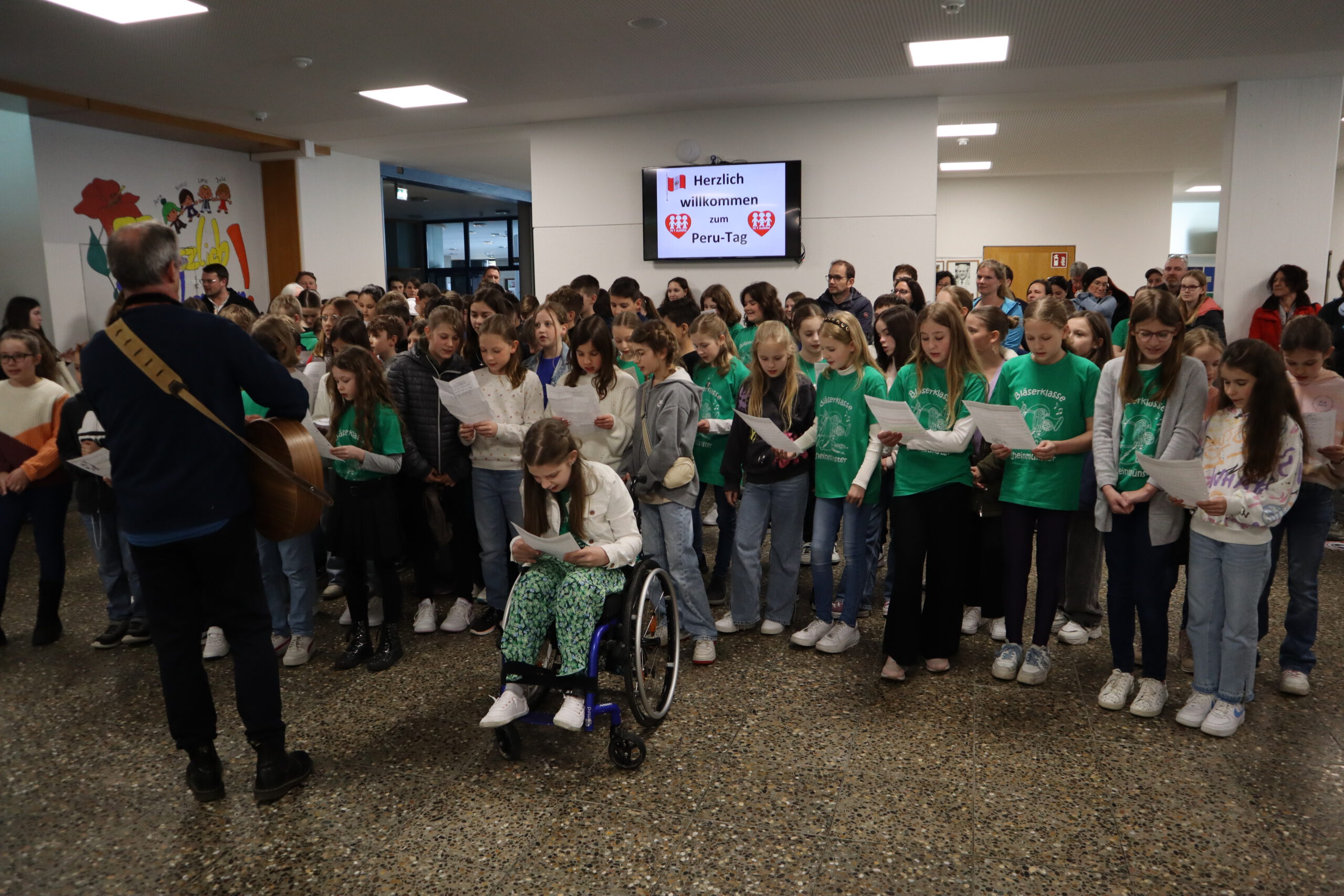 Viele Besucher strömten am Sonntag zur Realschule Rheinmünster, die zum alljährlichen Peru-Tag geladen hatte. So herrschte in den Klassenzimmern, auf den Gängen und in der zur Caféteria umgestalteten Aula um 14 Uhr bereits reges Treiben, als die drei fünften Klassen mit einem Gute-Laune-Song den Tag der offenen Tür eröffneten. „Dieser Tag ist uns als Schulgemeinde eine Herzensangelegenheit“, wandte sich Rektor Rolf Schemel an die versammelten Schüler, Eltern, Geschwister, Großeltern und Ehemaligen und berichtete über die mittlerweile seit Herbst 2016 bestehende Partnerschaft mit dem Colegio Fe Y Alegría im Stadtteil San Juan de Lurigancho in der peruanischen Hauptstadt Lima. Nicht nur das Schwarzacher Kollegium befinde sich im regelmäßigen Austausch mit der Partnerschule, sondern auch die Schüler der von Lehrerin Susanne Müller geleiteten Peru-AG pflegten direkte Kontakte mit der dortigen Schülerschaft. Im vergangenen Jahr habe man die Partnerschule bei der Anschaffung eines Wasserspenders sowie bei der Anstellung eines Englischlehrers unterstützen können. Die beiden Schulleiter Rolf Schemel und Thomas Herrmann nutzten die Gelegenheit, allen Beteiligten für ihr Engagement rund um diesen besonderen Tag im Schuljahr zu danken: „Viele haben in den letzten Tagen eine enorme Mehrarbeit geleistet, tolle Projekte für die Schüler angeboten, beim Aufbau geholfen, wunderbare Kuchen und Torten gebacken oder Waffelteig geliefert. Der Peru-Tag macht immer wieder deutlich, dass Großartiges möglich ist, wenn Kollegium, Schüler- und Elternschaft an einem Strang ziehen und Hand in Hand zusammenarbeiten.“