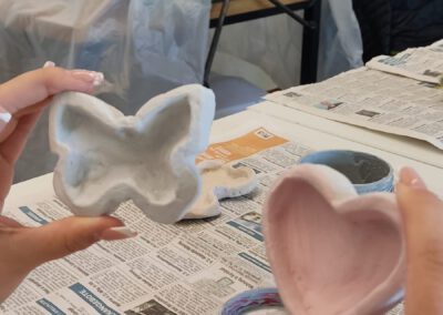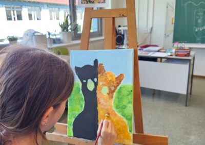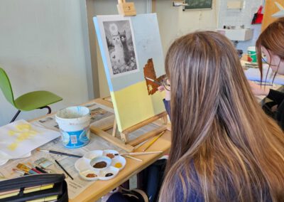 Das Angebot war vielfältig und reichte von sportlichen Aktivitäten wie Rückschlagspiele, Trendsportarten und Klettern bis hin zu kreativen und handwerklichen Projekten wie Töpfern, Upcycling, Acrylmalerei oder Textilien – neues Leben schenken. Auch naturwissenschaftliche und entdeckende Themen waren vertreten, beispielsweise bei Den Bienen auf der Spur, Der Natur auf der Spur oder dem Mikroskopischen Praktikum. Technikbegeisterte Schülerinnen und Schüler konnten sich bei Robotik in Aktion ausprobieren.