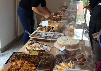 Weithin bekannt ist das große Kuchenbuffet im Pfarrzentrum Sankt Benedikt, das von Schülern und Eltern der siebten Klassen alljährlich angeboten wird und sich in den vergangenen Jahren zu einem beliebten Treffpunkt der Jahrmarktbesucher gemausert hat. Im Klosterhof bot außerdem die Klasse 8a mit Klassenlehrer Thomas Wertal Waffeln an, und bei der Klasse 8b mit Klassenlehrer Benjamin Koch konnte man sein Glück bei einer Tombola auf die Probe stellen.