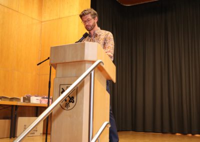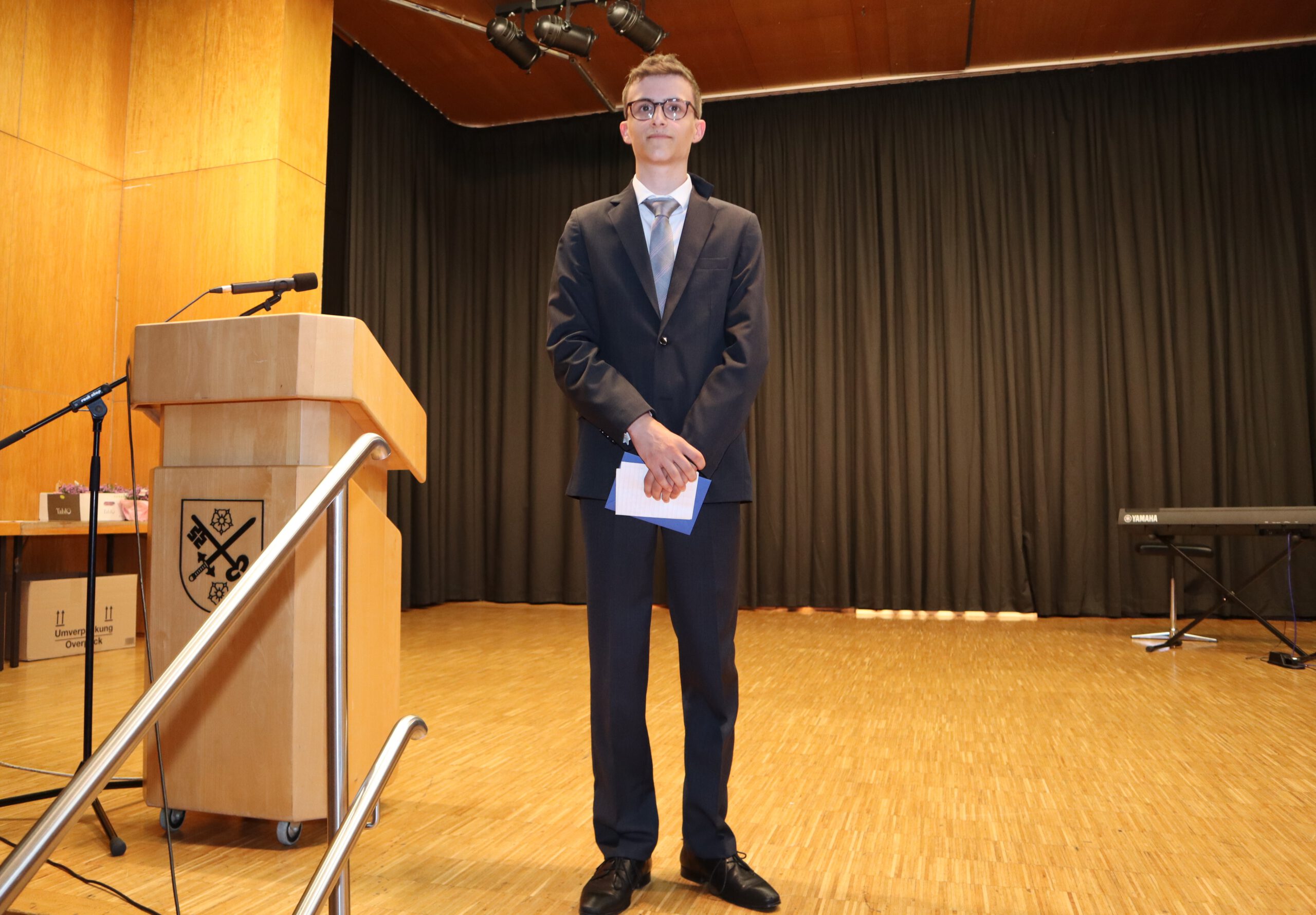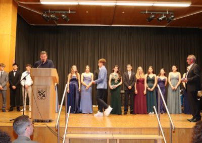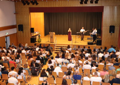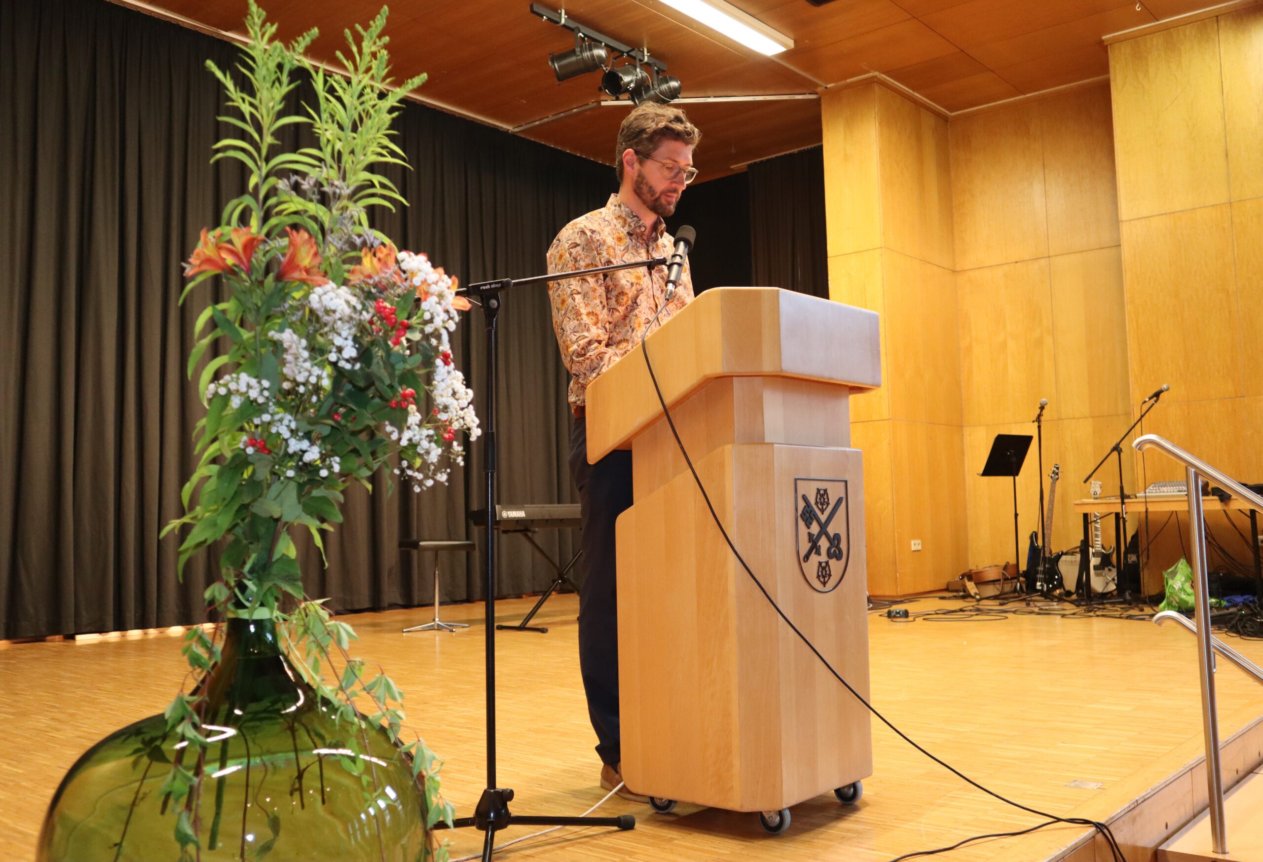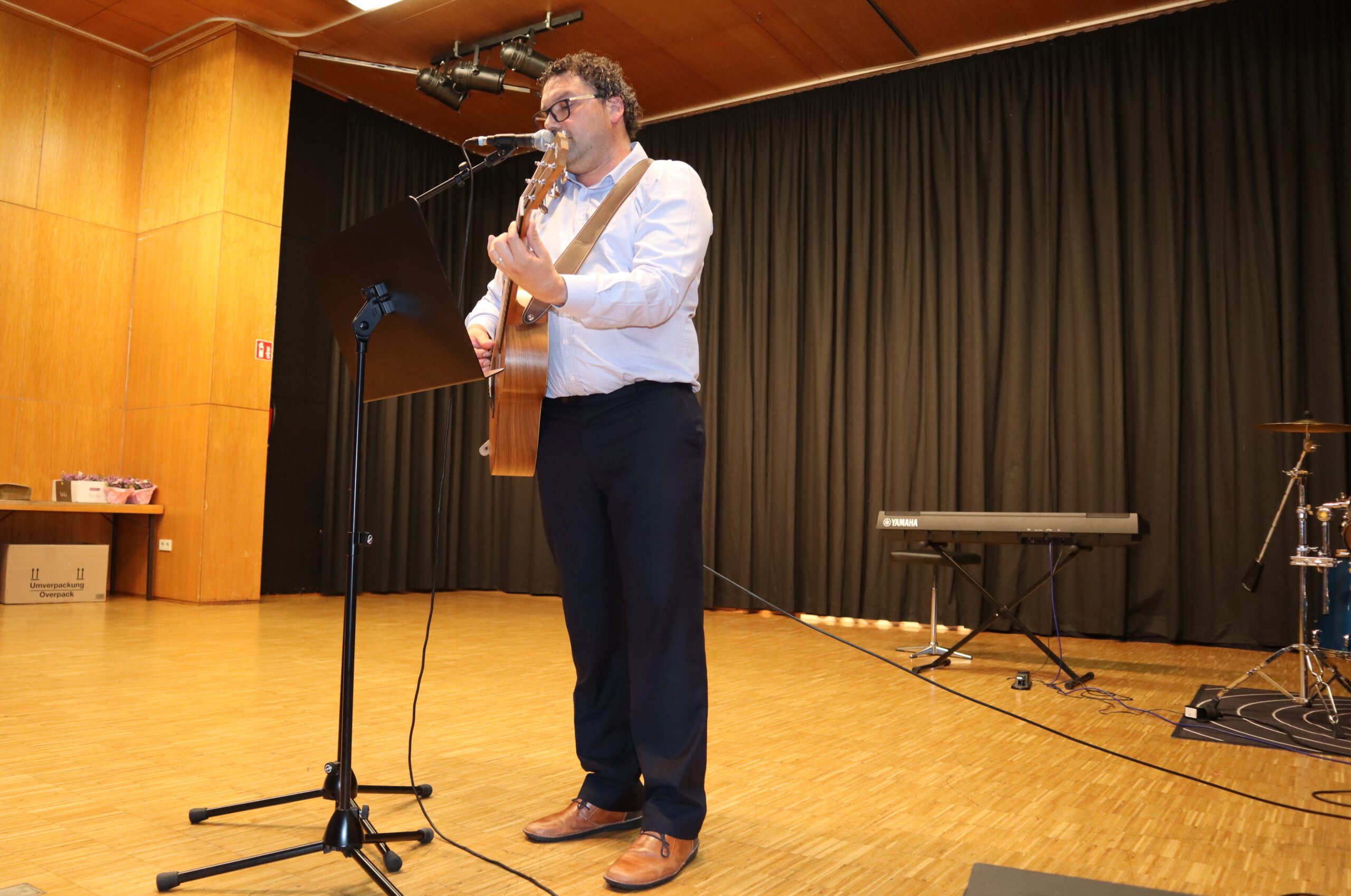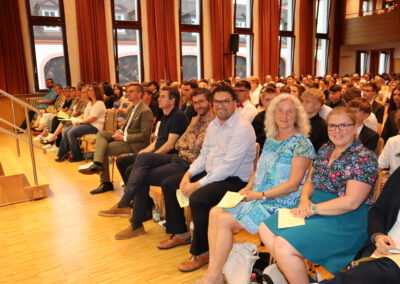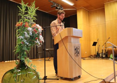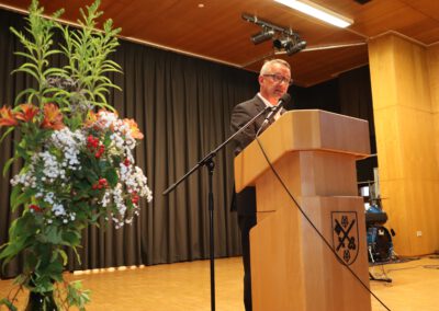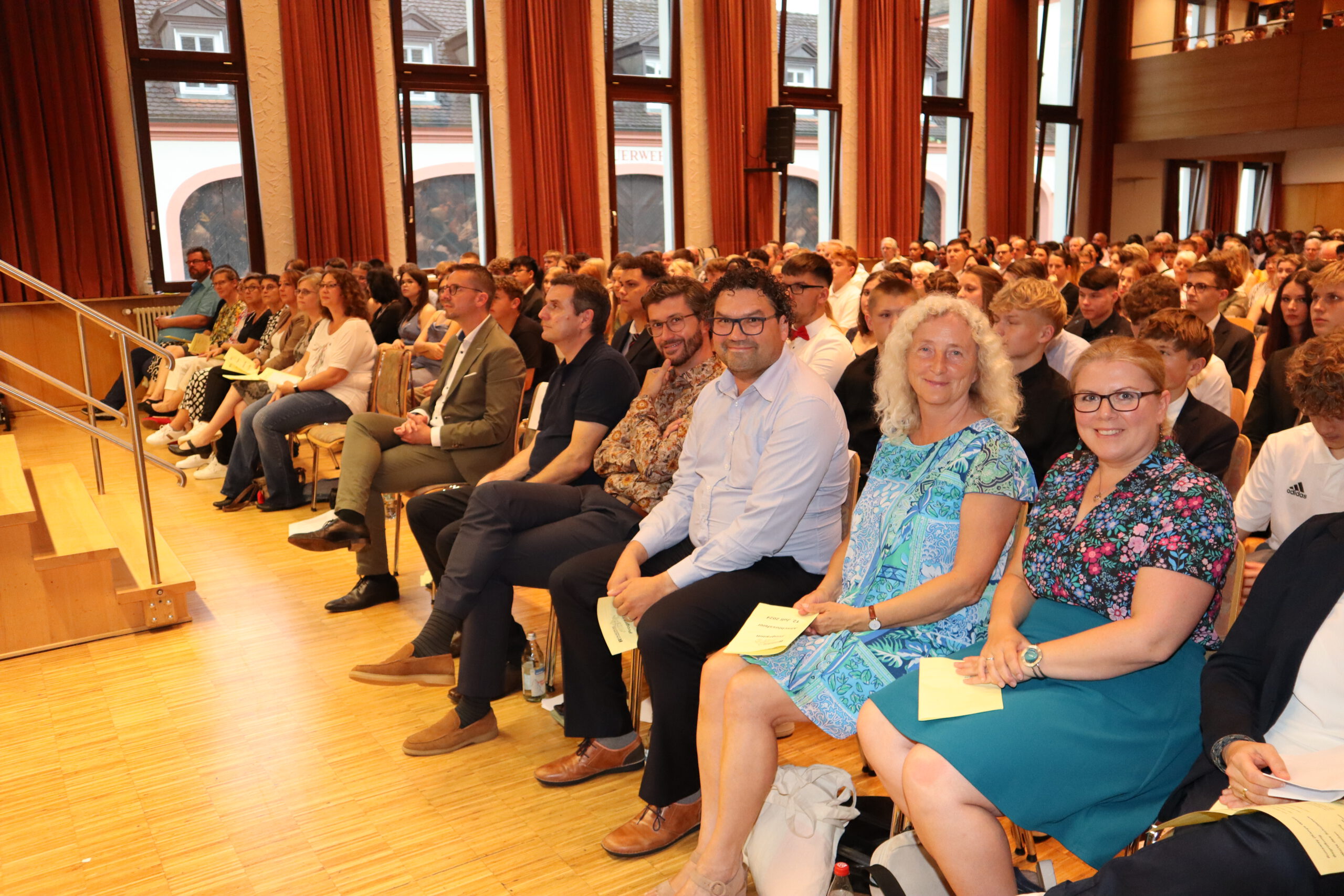 Musikalisch eröffnet wurde die Feier von Lars Hofmann aus der Klasse 10b mit dem Klavierstück „Runaway“.  Rektor Rolf Schemel wandte sich in seiner Rede an die 67 Mittleren-Reife-Geprüften und die 12 Hauptschul-Absolventen und gratulierte ihnen dazu, „das Finale erreicht und den Sieg davongetragen“ zu haben. Er blickte – ebenso wie die Klassenlehrer in ihren Ansprachen – zurück auf eine besondere Schulzeit, in der sicher die Corona-Pandemie prägend gewesen war, von der aber auch am anderen Ende des Spektrums Klassenfahrten, Schulveranstaltungen wie die traditionell von den Zehntklässlern organisierte Faschingsfeier , entstandene Freundschaften und gute Lehrer-Schüler-Beziehungen besonders positiv in Erinnerung bleiben werden. Den Eltern dankte Schemel für die stete „Unterstützung von der Seitenlinie aus“ und erntete zustimmendes Nicken, als er feststellte, dass es nach den letzten prüfungsreichen Wochen nun sicher für die gesamten Familien „Zeit für den Abpfiff“ geworden sei.