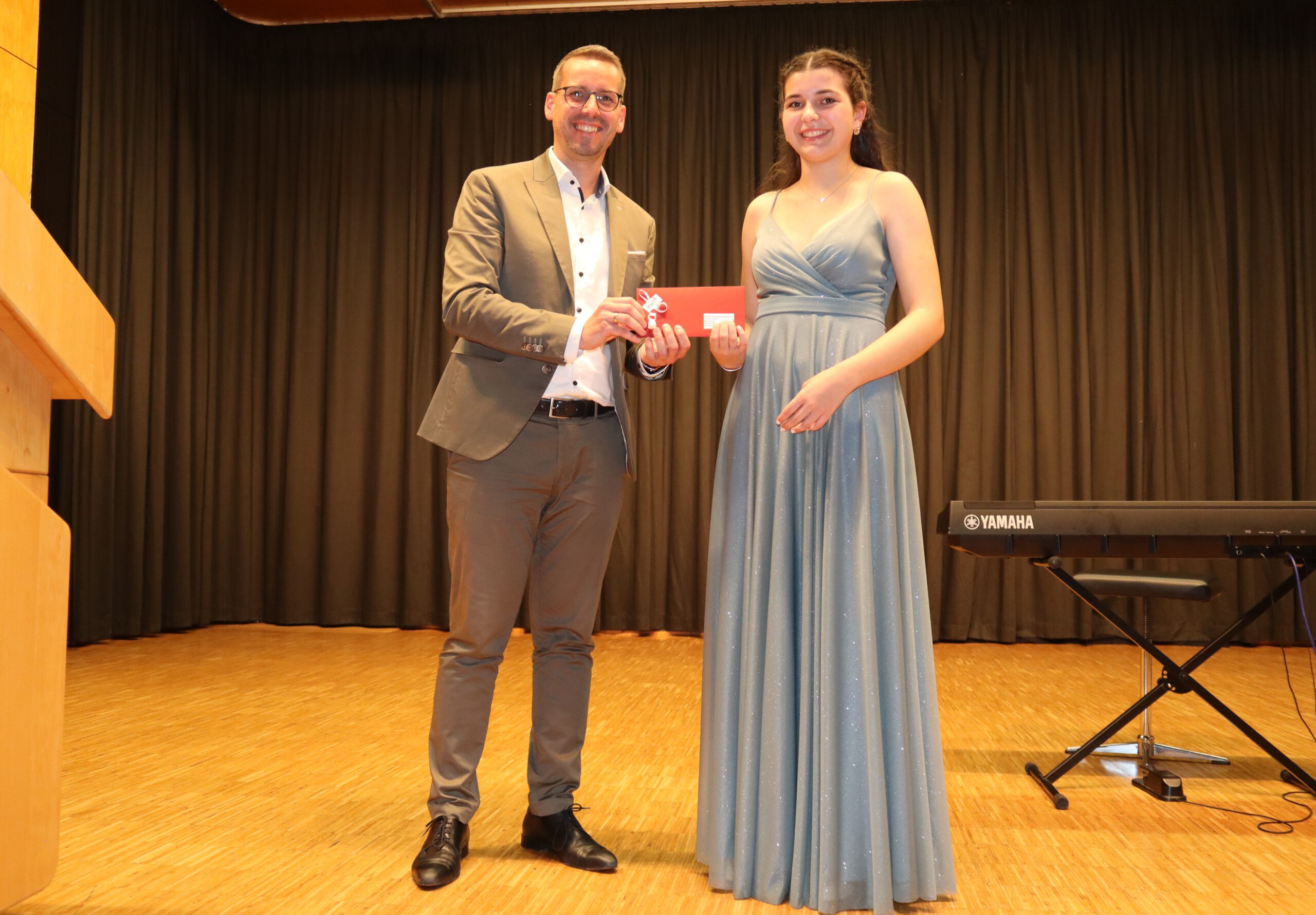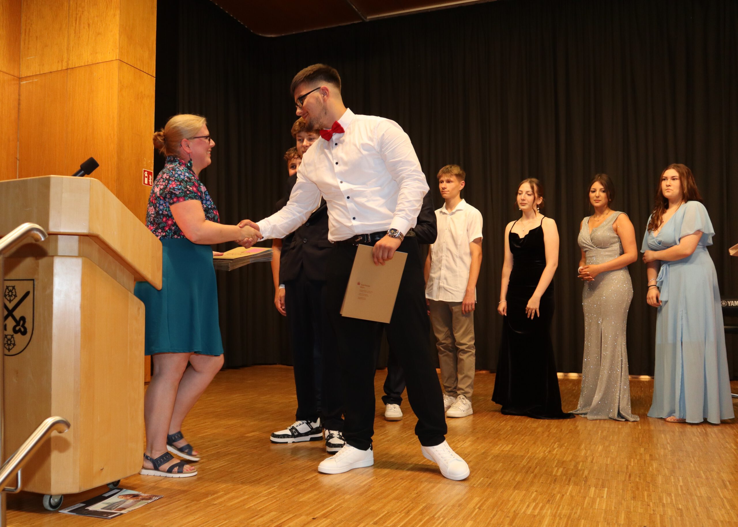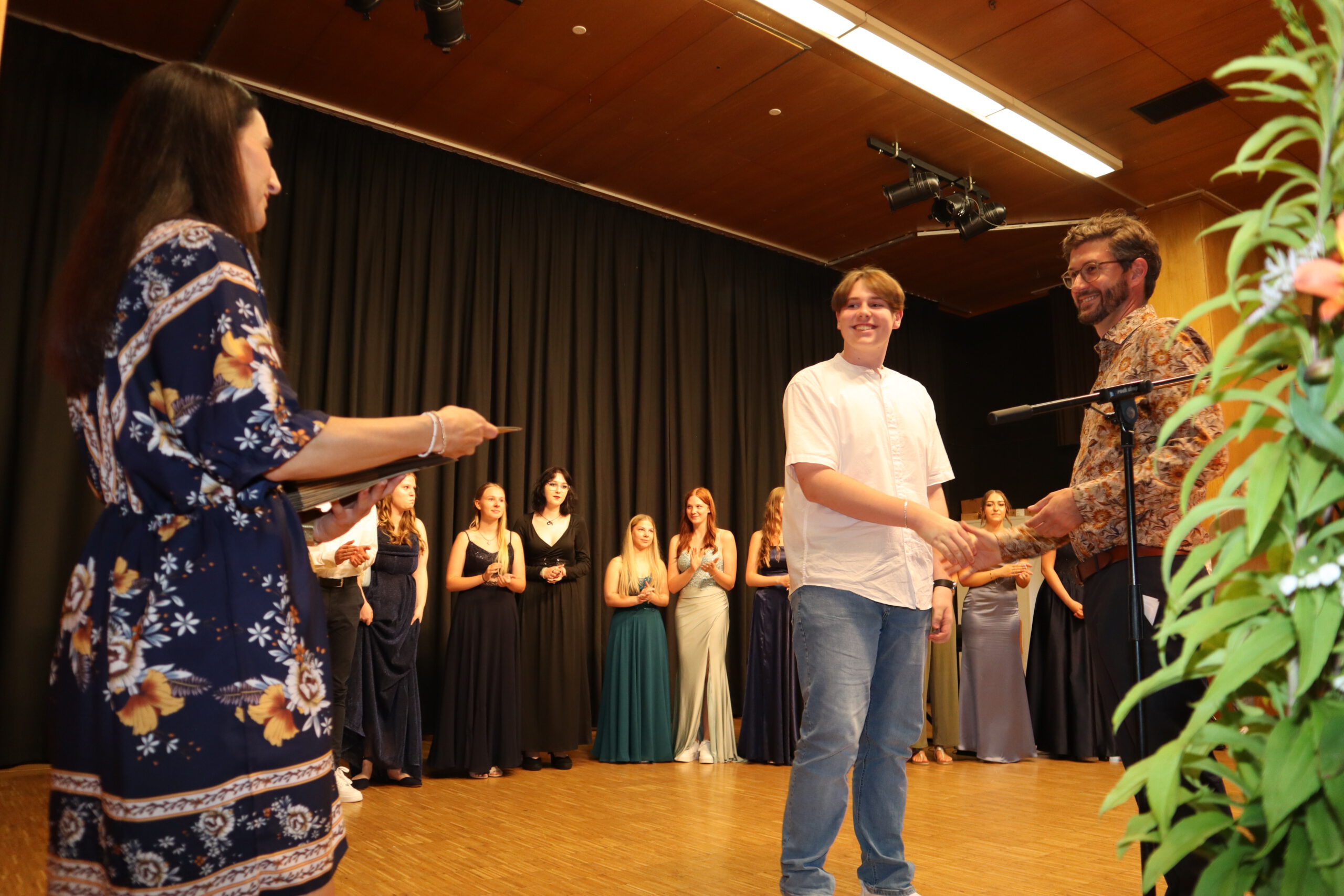 Bürgermeister Thomas Lachnicht war es vergönnt, der Schulbesten Tamara Graß (10c), die ihre Mittlere Reife mit dem Gesamtnotenschnitt von 1,2 bestanden hat, den Preis der Gemeinde Rheinmünster zu überreichen. Ausgezeichnet mit einem Preis wurden an diesem Abend außerdem weitere 16 Schüler für ihren Notenschnitt bis 1,9. Vierzehn Absolventen erhielten für Ihren Gesamtnotenschnitt bis 2,2 ein Lob.