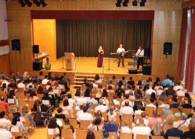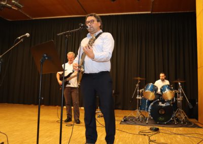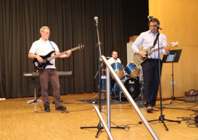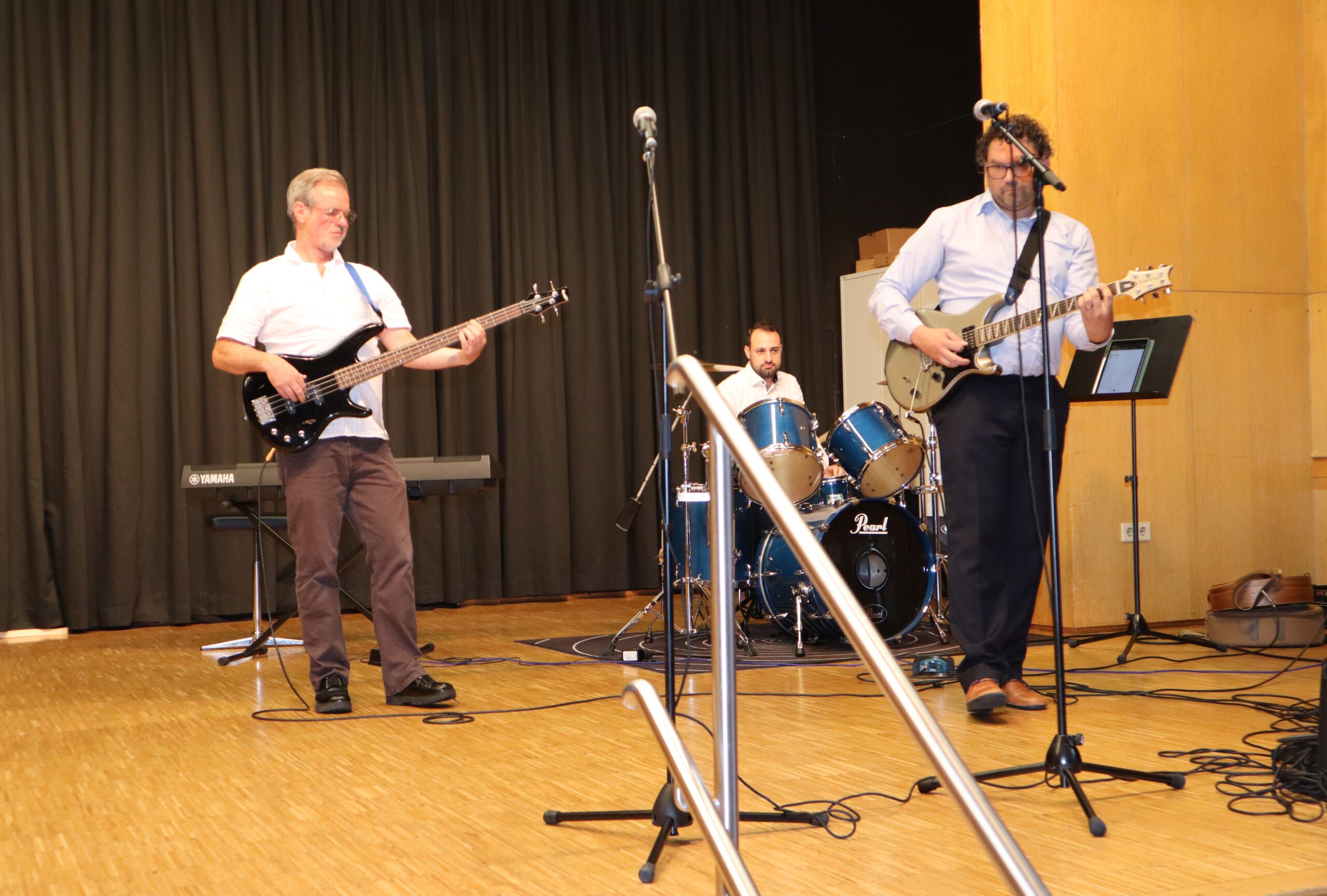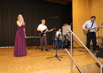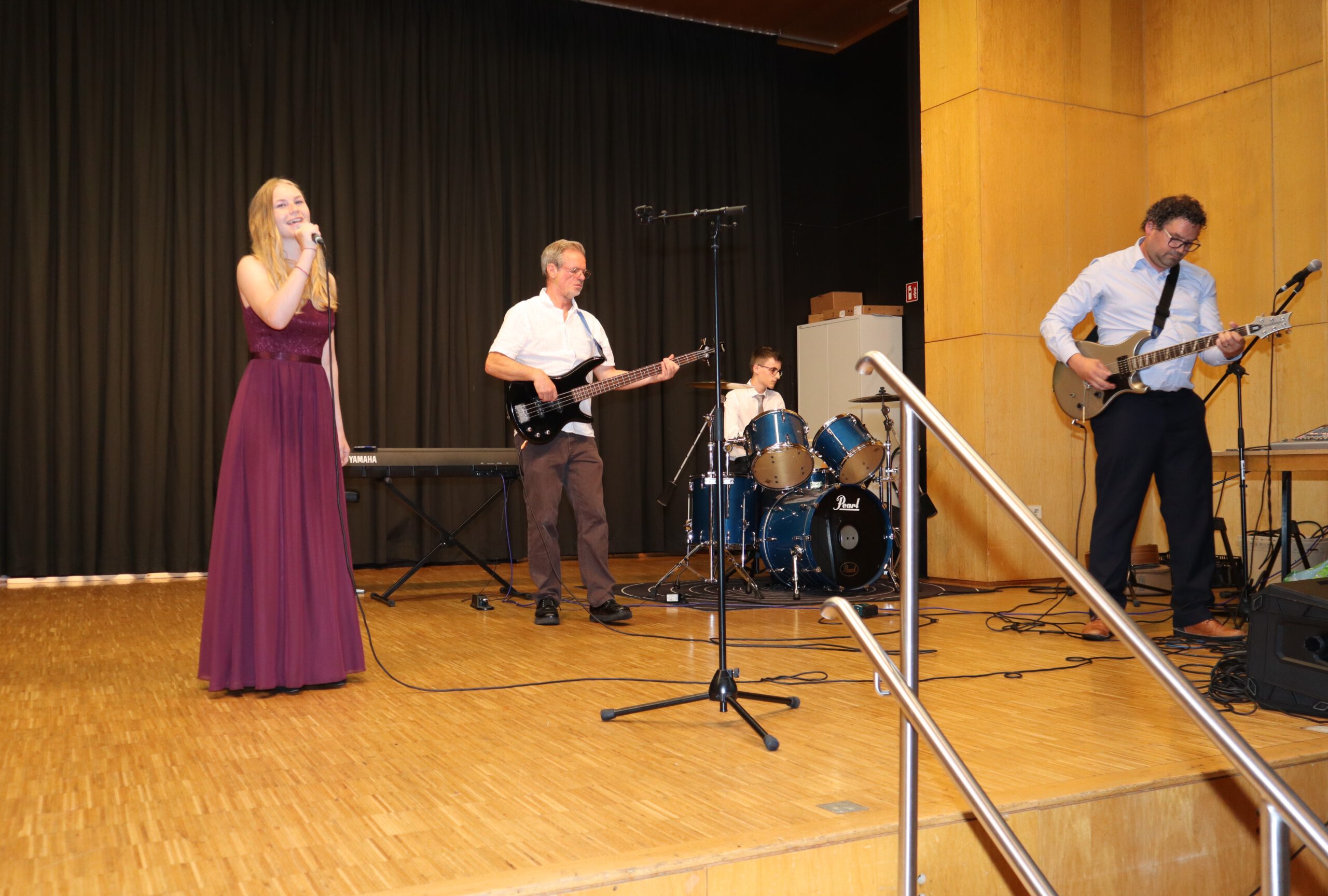 Nach einer rockigen musikalischen Einlage von Laura Bisch (10b, Gesang), Mirko Hübner (10b) am Schlagzeug und den Musiklehrern Andreas Nock und Thomas Wertal an den E-Gitarren folgte die Übergabe der ersehnten Abschlusszeugnisse an die drei zehnten Klassen sowie an die Absolventen der neunten Klasse, die den Hauptschulabschluss erworben haben.