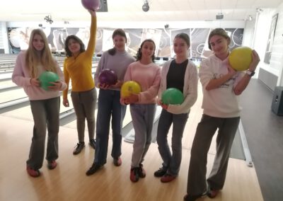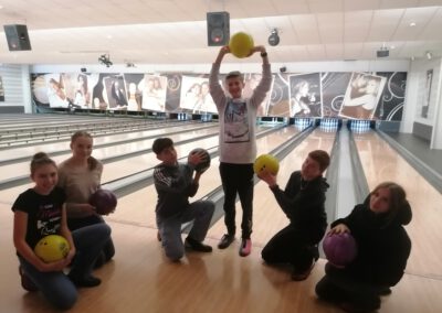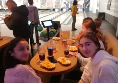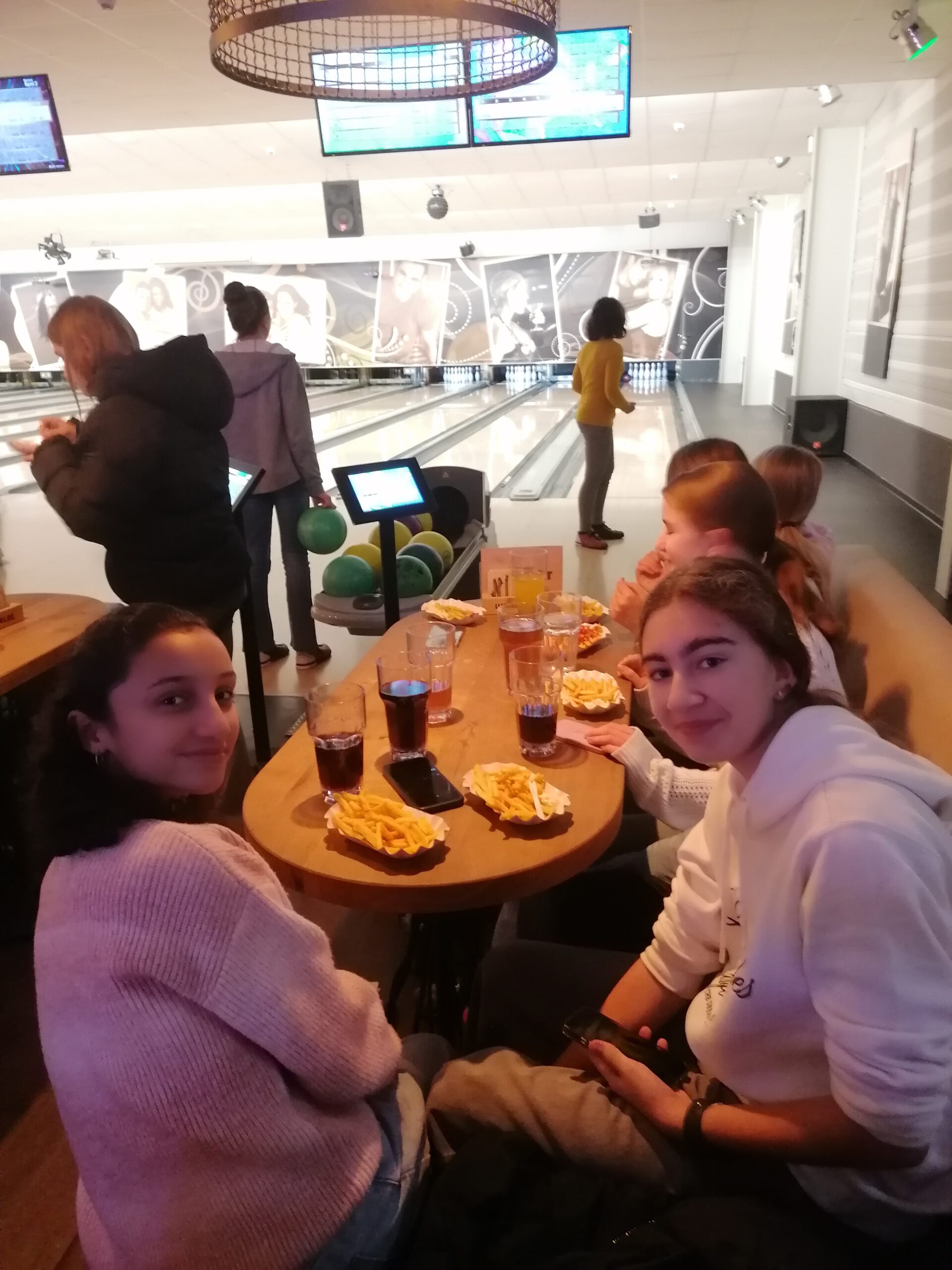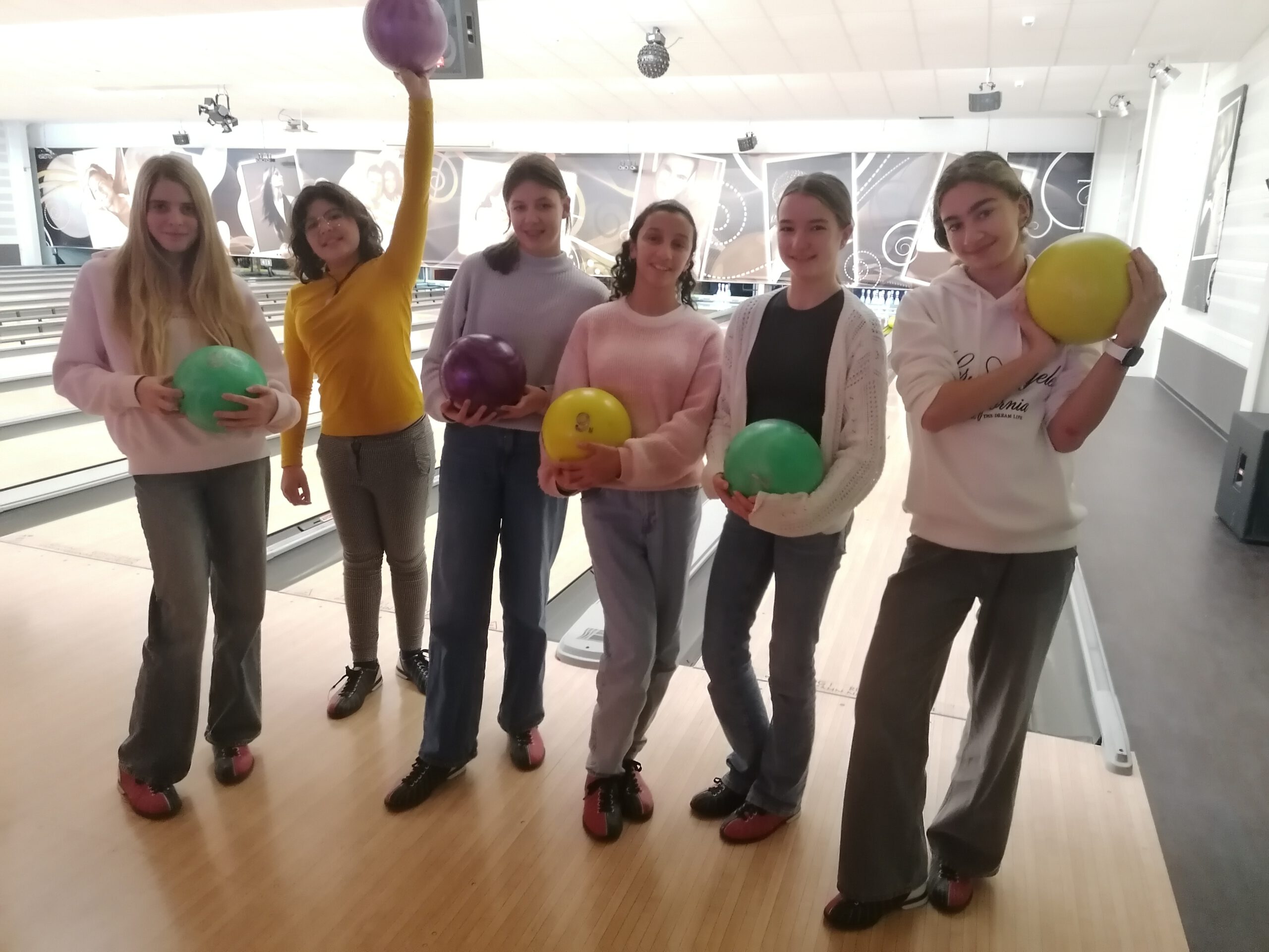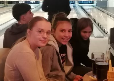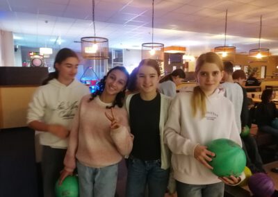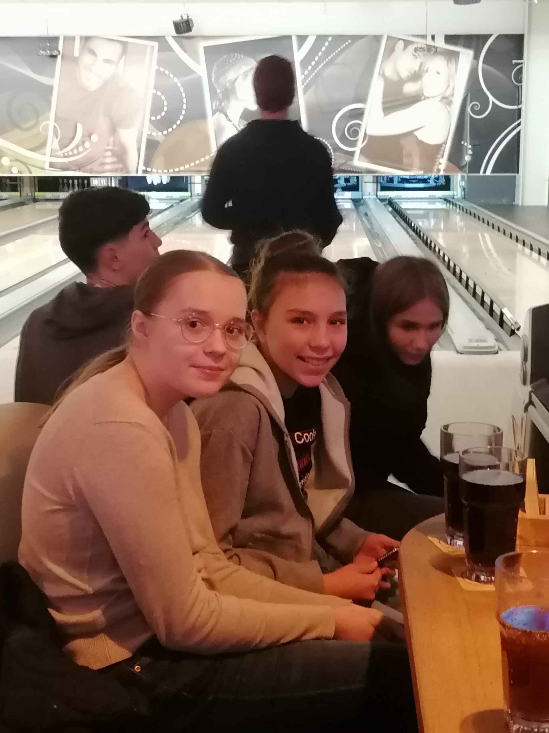 Doch den Höhepunkt mit allen Beteiligten stellte der Besuch der Bowlingbahn BadenBaden am letzten gemeinsamen Nachmittag dar. Mit Schwung und Ehrgeiz wurden zahlreiche Kugeln über die Bahnen gerollt, wobei die meisten Pins eindeutig auf französischer Seite fielen, sodass die Gäste auf dem Siegerpodest landeten. Eintritt und Pommes wurden dankenswerter Weise vom Förderverein der Schule teilfinanziert.