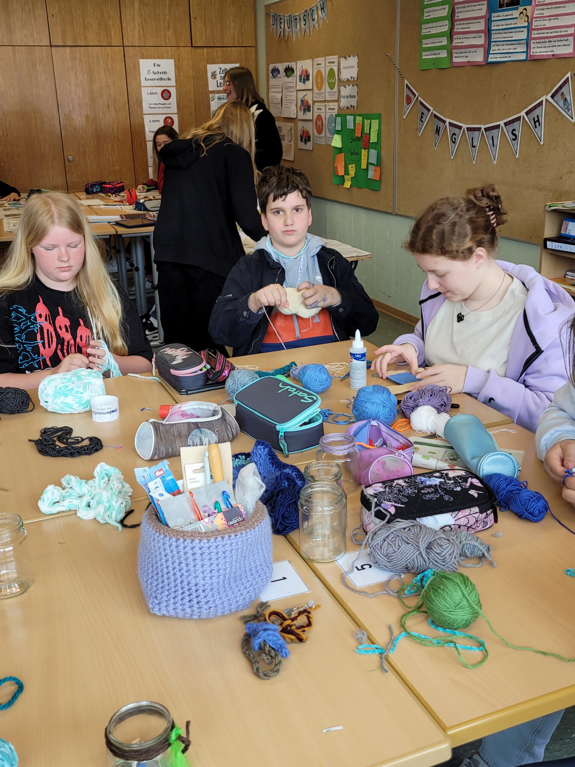 Dabei arbeiteten die Schüler je nach Interessenlage in ganz neuen, altersgemischten Gruppen zusammen. Jeder hatte im Vorfeld die Möglichkeit gehabt, aus insgesamt 17 angebotenen Projekten auszuwählen – und diese Entscheidung dürfte angesichts des breit gefächerten Angebots an kreativen, sportlichen, musikalischen oder auch kulinarischen Projekten nicht leicht gefallen sein. So wurde im einen Projekt fleißig mit einer Muttersprachlerin Spanisch parliert, während im anderen die Kulturtechnik des Webens vermittelt und Webrahmen aus Holz selbst hergestellt wurden. Projekte wie „Das Gold der Inka“ boten im Rahmen der drei Tage auch eine Exkursion etwa ins Schmuckmuseum Pforzheim an und beim Projekt „Rund um die Alpakas“ konnte man diese Tiere bei einer Alpaka-Wanderung in Berghaupten auch ganz hautnah kennen lernen. Lateinamerikanische Klänge drangen aus dem Musiksaal, wo fleißig für eine musikalische Aufführung spanischer Lieder am Peru-Tag geübt wurde und der Duft nach Keksen wehte aus der Schulküche, wo Lama und Kakteen-Kekse gebacken und bunt und kreativ verziert wurden. Produktiv ging es auch beim Makramee-Projekt zu, wo angesagte Boho- und Vintage-Kunstwerke wie Schlüsselanhänger oder Regenbögen in Knoten-Technik hergestellt wurden, die ebenso wie selbst genähte Leseknochen und Stiftemäppchen aus dem Projekt „Nähen für den guten Zweck“ am Sonntag beim Peru-Tag zum Verkauf angeboten werden. „Es ist schön zu sehen, wie in den Projekttagen Schüler verschiedener Altersgruppen ein gemeinsames Vorhaben in die Tat umsetzen und sich auf dem Weg dahin gegenseitig unterstützen.