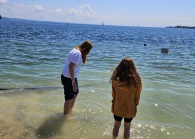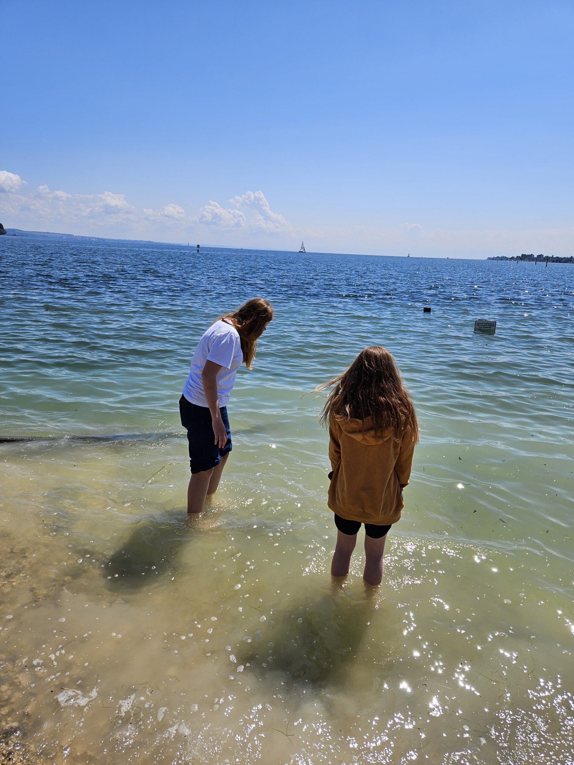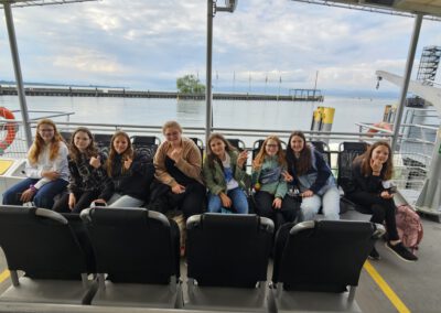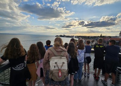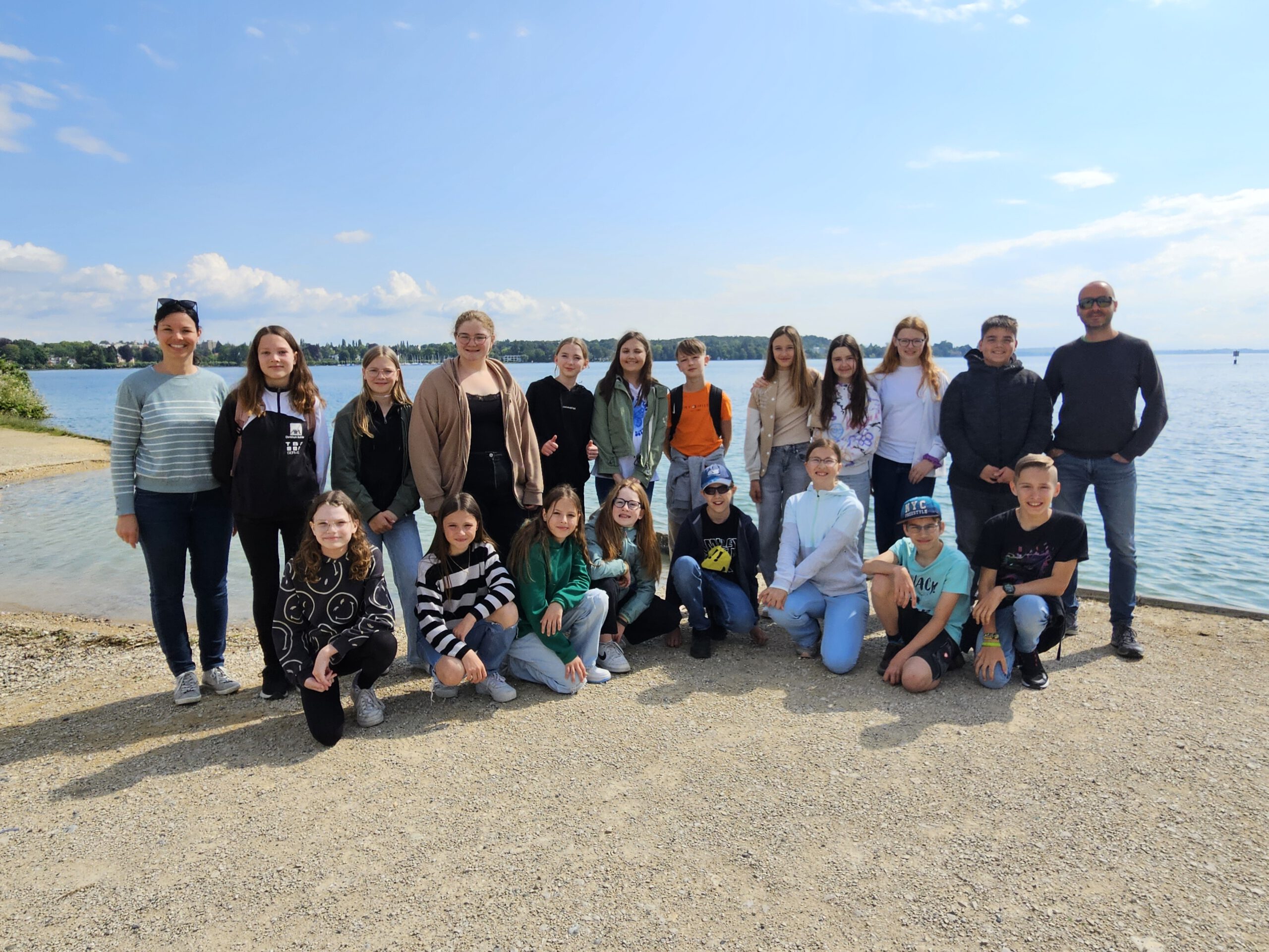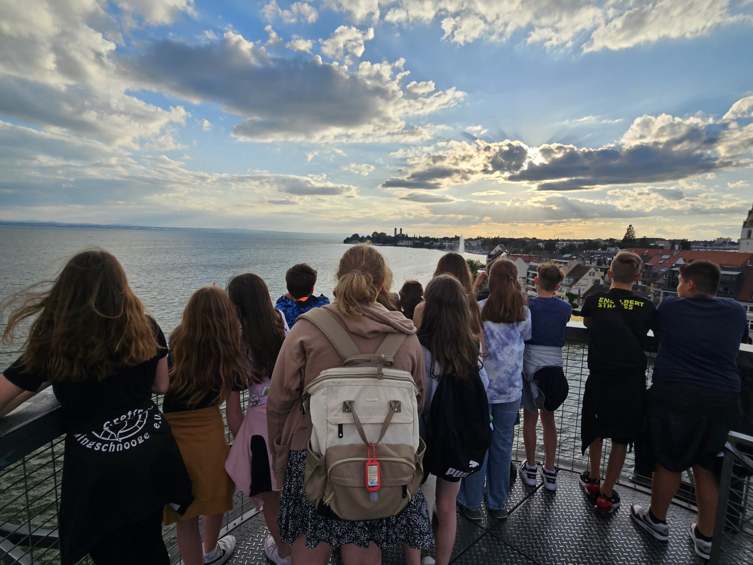 Endlich war es soweit. Am Montag, den 10.06.2024 fuhren wir, die Klasse 6b, mit Bus und Bahn ins Schullandheim nach Friedrichshafen. Das war schon ganz schön aufregend, da wir zwei Züge verpasst hatten. Die Anreise war eine gefühlte Ewigkeit. Als alle ihre Zimmer bezogen und sich eingerichtet hatten, gingen wir nach dem Abendessen noch zum wunderschönen Bodensee.
