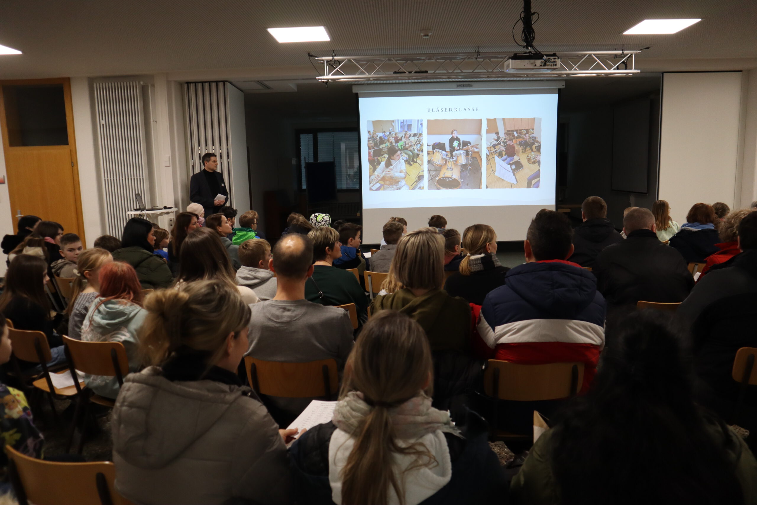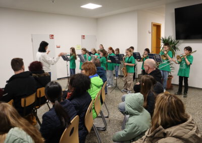 Die Veranstaltung begann mit einer ersten Darbietung der Bläserklasse 5b vor Publikum, die mit ihrem Können nach nur fünf Monaten Instrumentalunterricht alle Anwesenden überraschte.