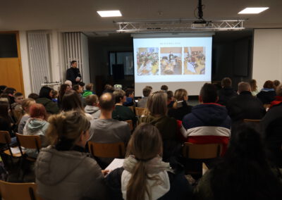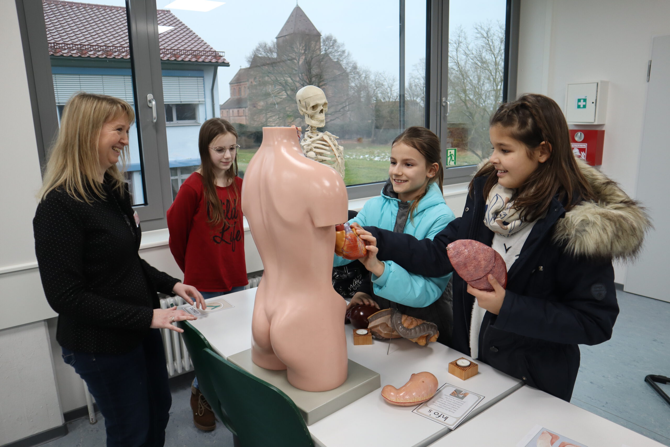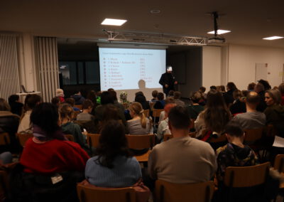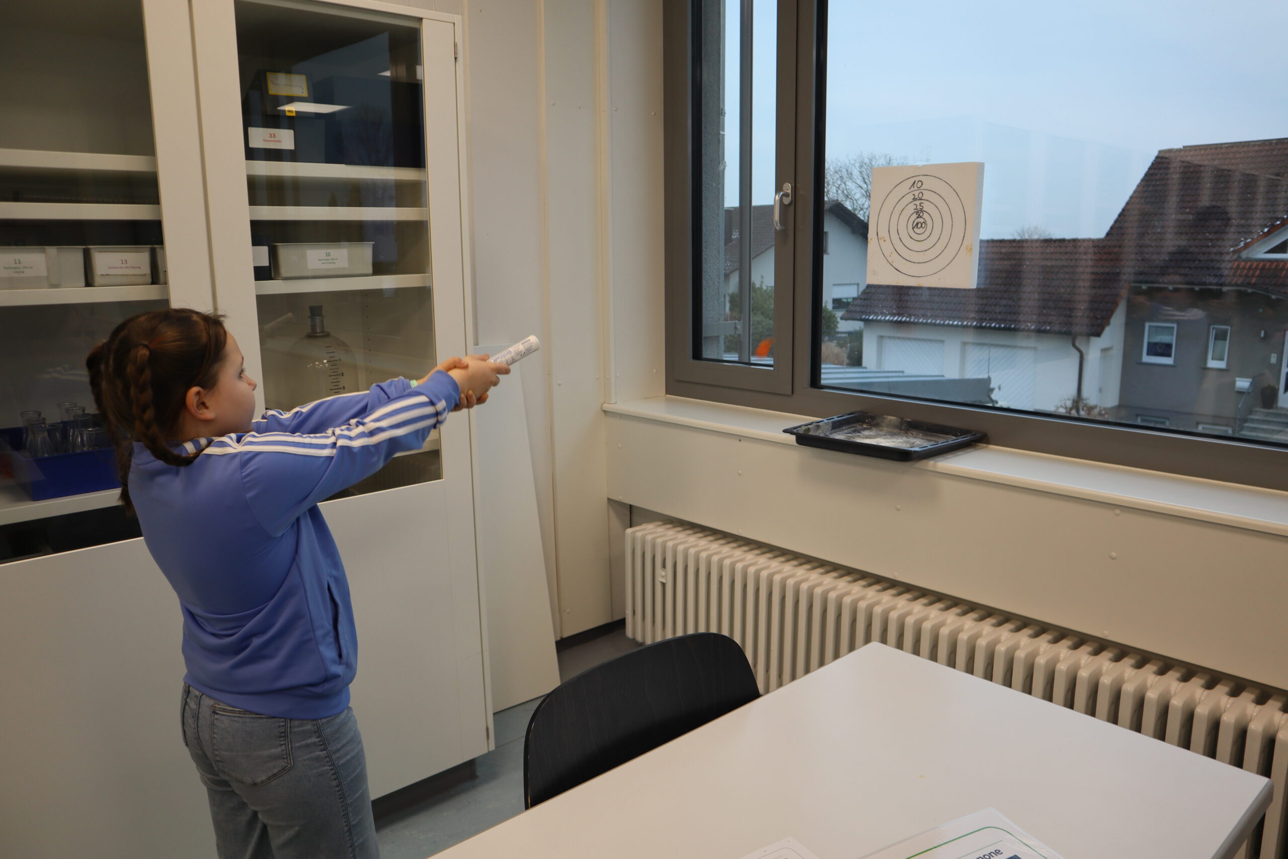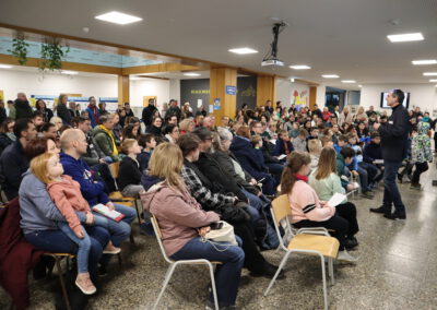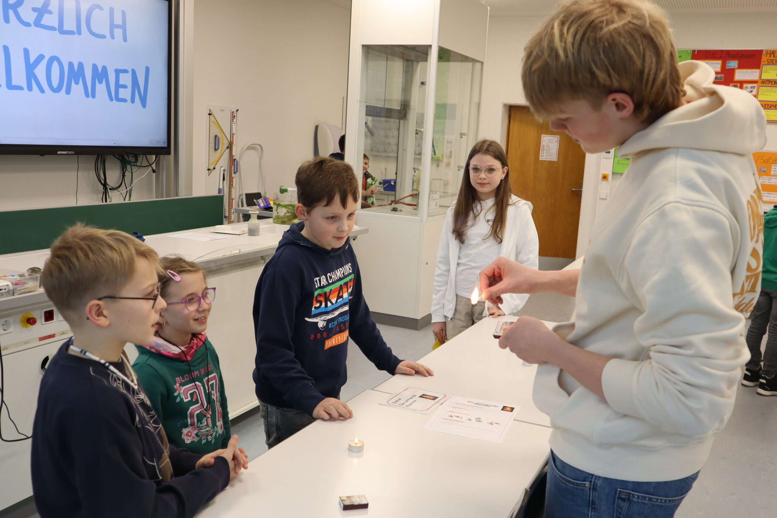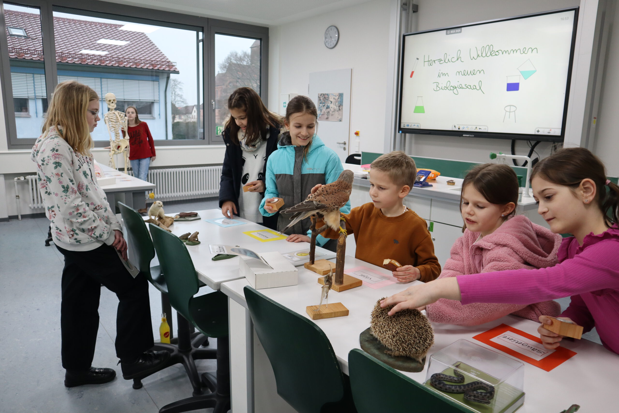 Im Biologie-Saal hatten die Kinder unter anderem die Möglichkeit, ausgestopfte Wildtiere zu streicheln und diese den verschiedenen Wirbeltierklassen zuzuordnen. Im Chemiesaal führten Schüler höherer Klassen faszinierende Experimente durch, darunter das spektakuläre Experiment „Die springende Flamme“. Zudem konnten die jungen Besucher mit einer „Vitaminkanone“ auf eine Zielscheibe schießen, was für viel Freude und Begeisterung sorgte.