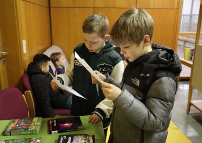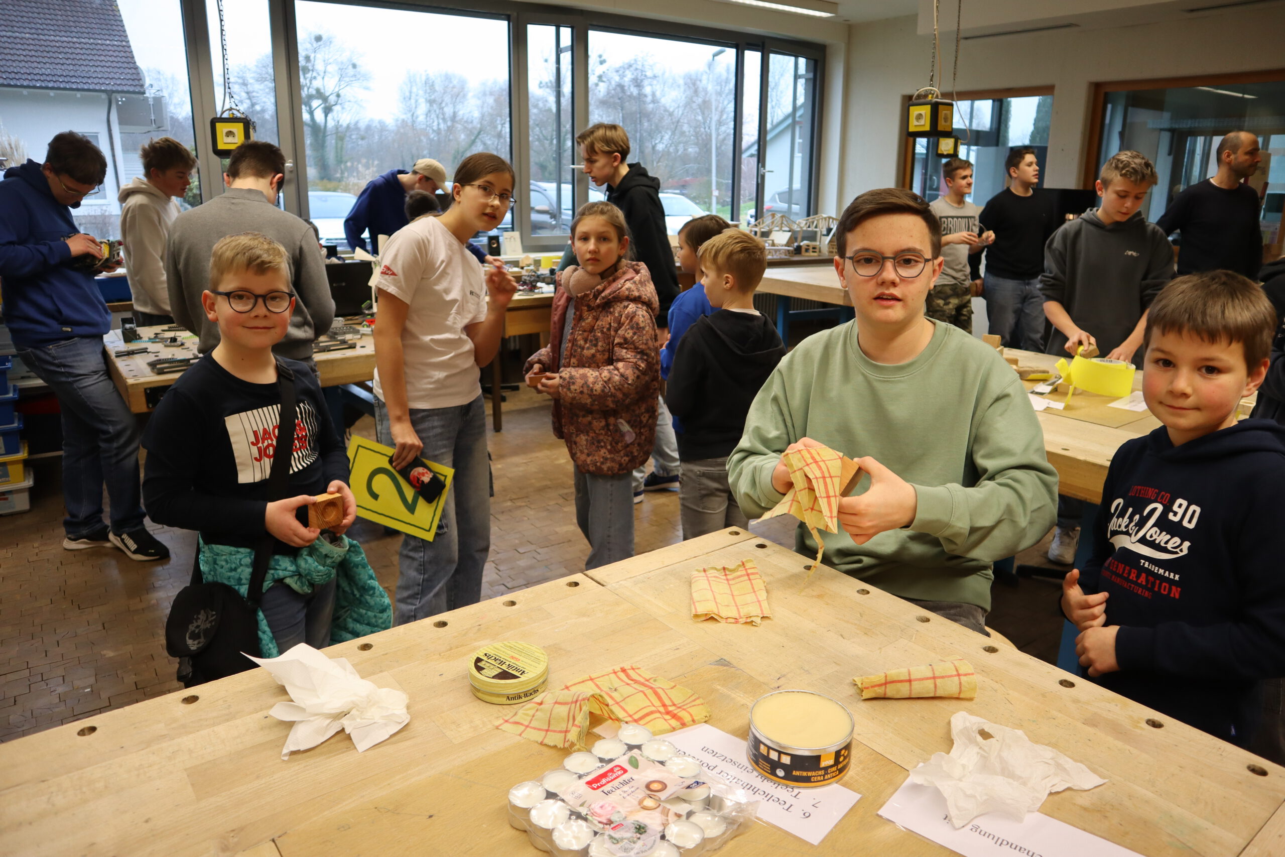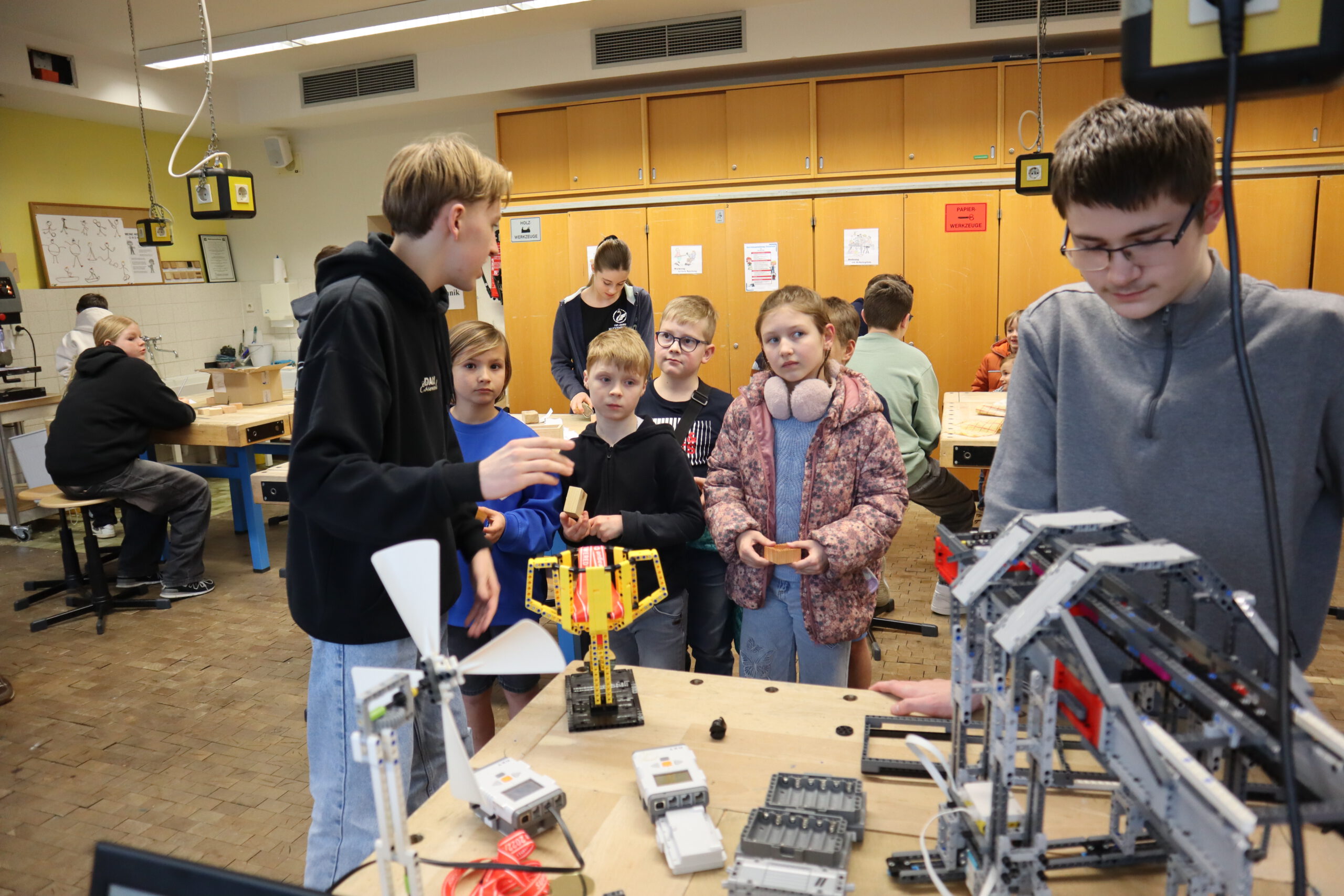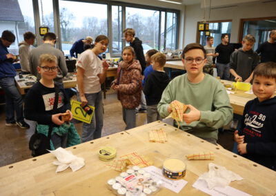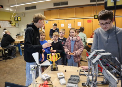 Die Schülerbibliothek bot ein spannendes Quiz und in der Sporthalle konnten die jungen Gäste ihrem Bewegungsdrang freien Lauf lassen und verschiedene Stationen durchturnen. Im Technik-Bereich hatten die Viertklässler die Gelegenheit, unter fachmännischer Anleitung von älteren Schülern Kerzenhalter aus Holz zu fertigen – ein tolles Andenken an den Abend. Für staunende Blicke sorgten die Vorführungen der Roboter-AG, ebenfalls im Technikraum.