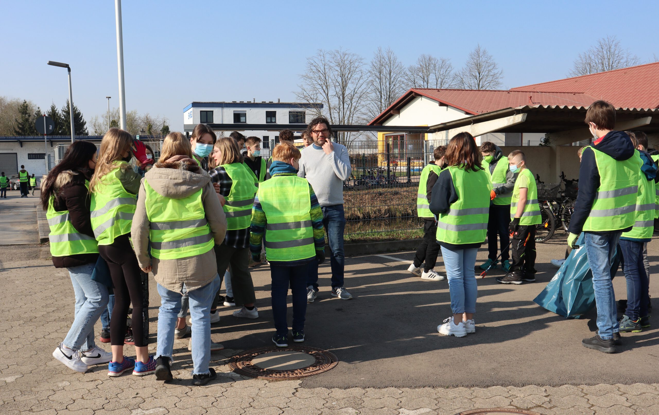 Am Freitag um 9 Uhr versammelten sich alle Schüler der sechsten und siebten Klassen der Schwarzacher Realschule im Schulhof, um für die nächsten beiden Schulstunden an der Müllsammelaktion der Gemeinde teilzunehmen. Nach einer kurzen Einweisung durch die begleitenden Lehrkräfte machten sich die motivierten Schüler alsbald an die Arbeit: Ausgestattet mit Handschuhen, Müllgreifern, leuchtend gelben Warnwesten und großen Müllsäcken durchkämmten sie den Klostergarten sowie das Gelände rund um die Sportanlage Pitz und entlang der Straße nach Hildmannsfeld.